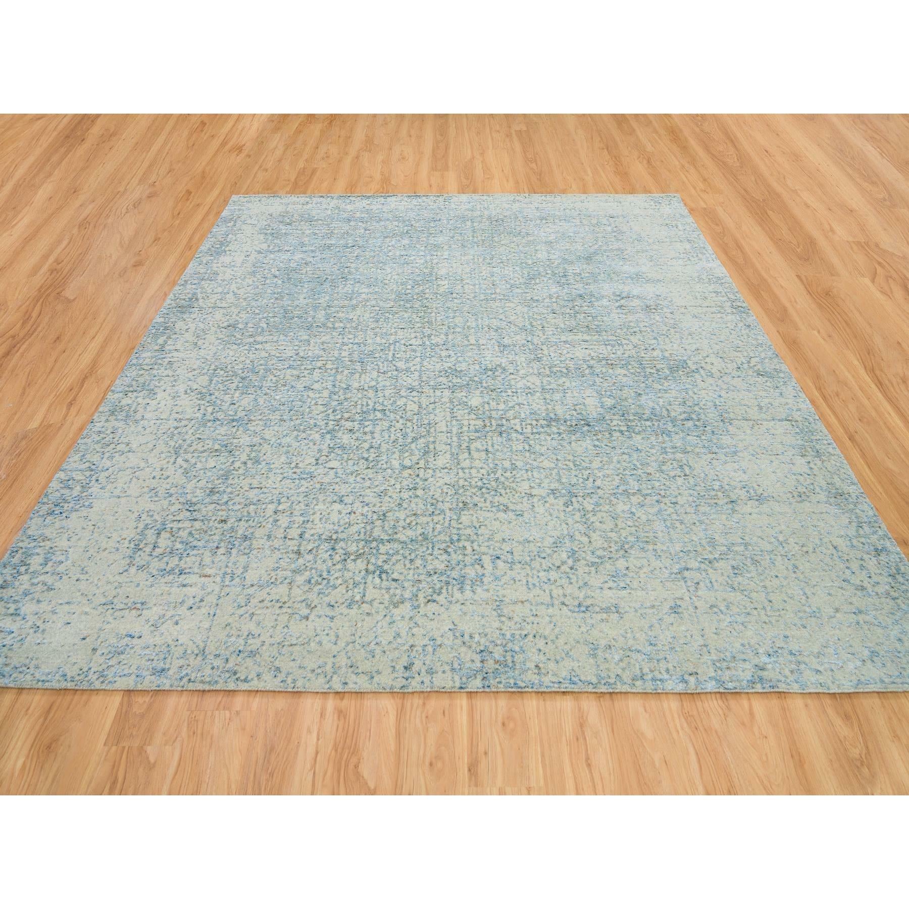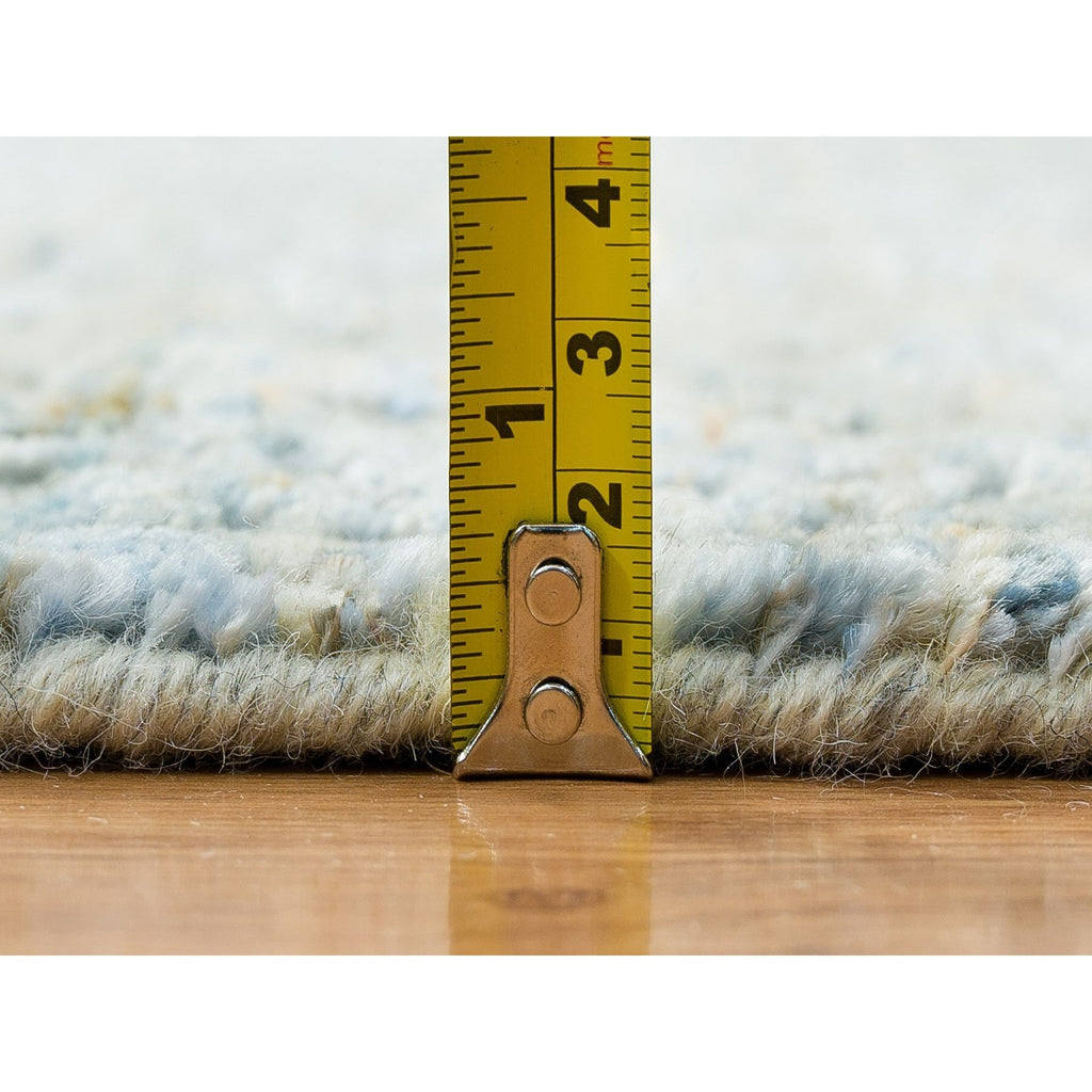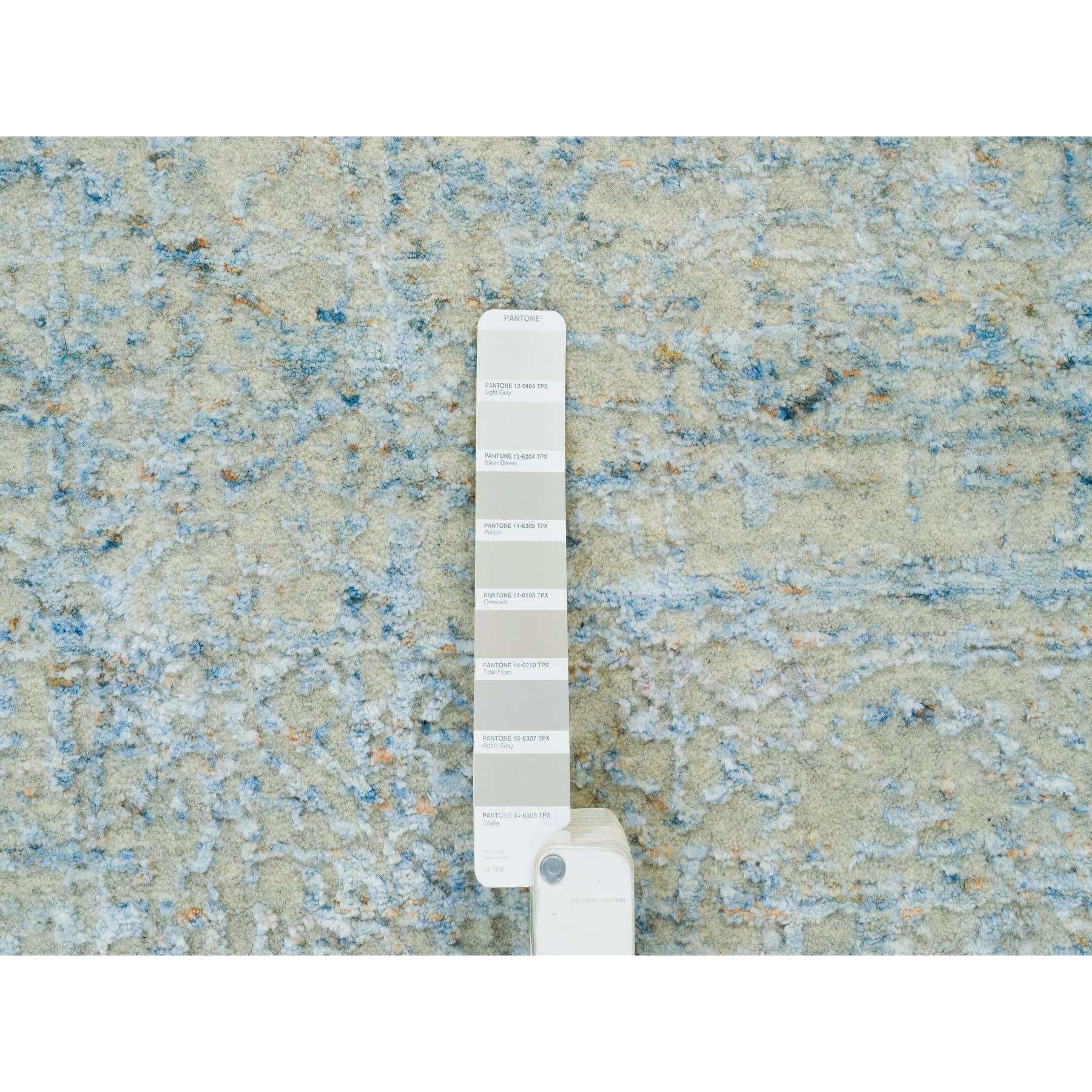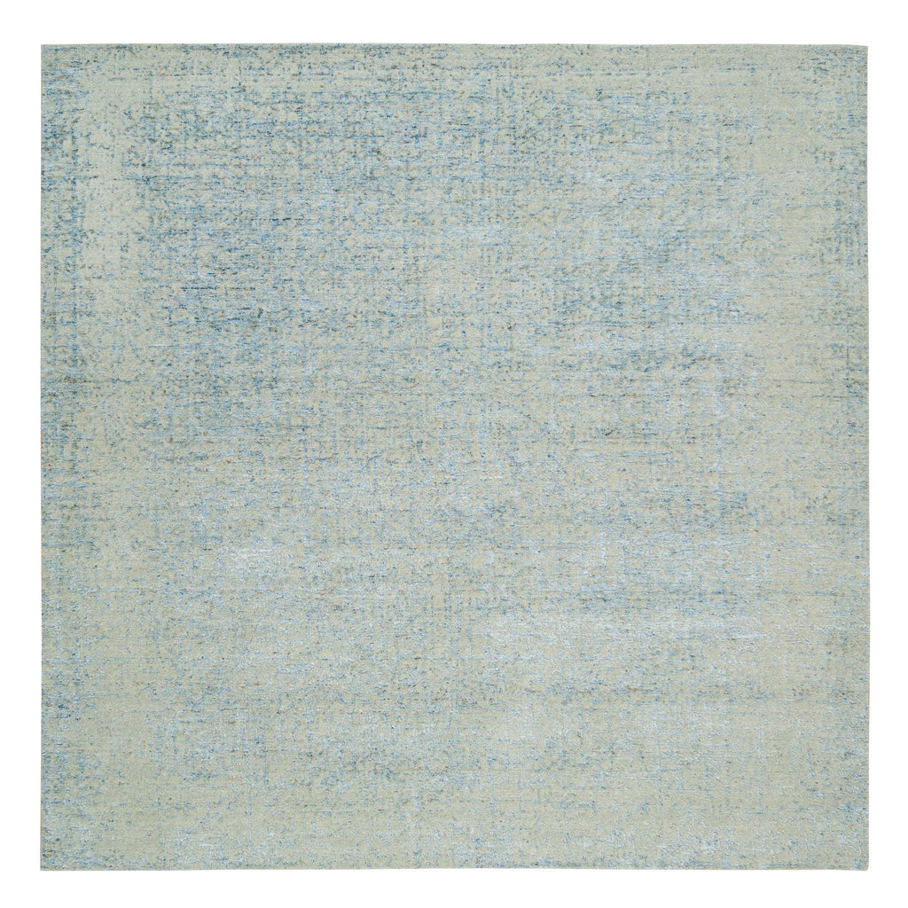 10'x10' Gray With Touches Of Blue, Modern Jacquard Hand Loomed, Soft To The Touch Wool And Plant Based Silk, Square Oriental Rug FWR391278