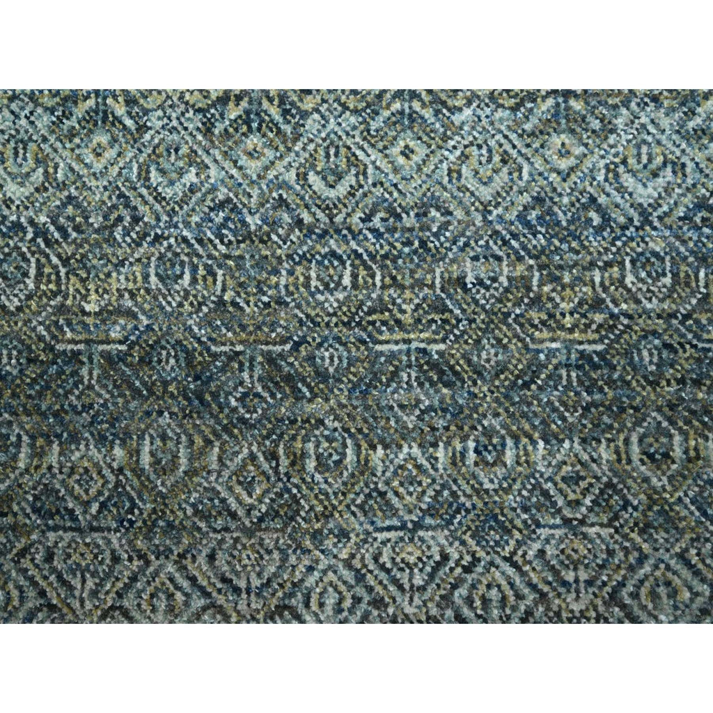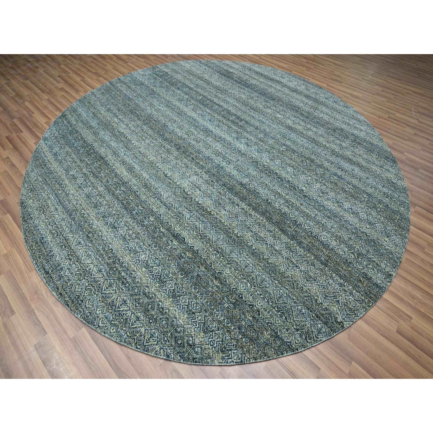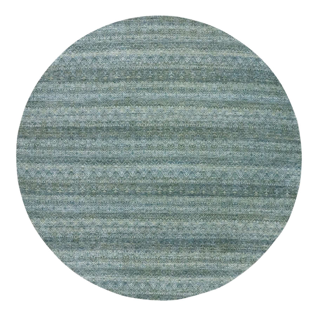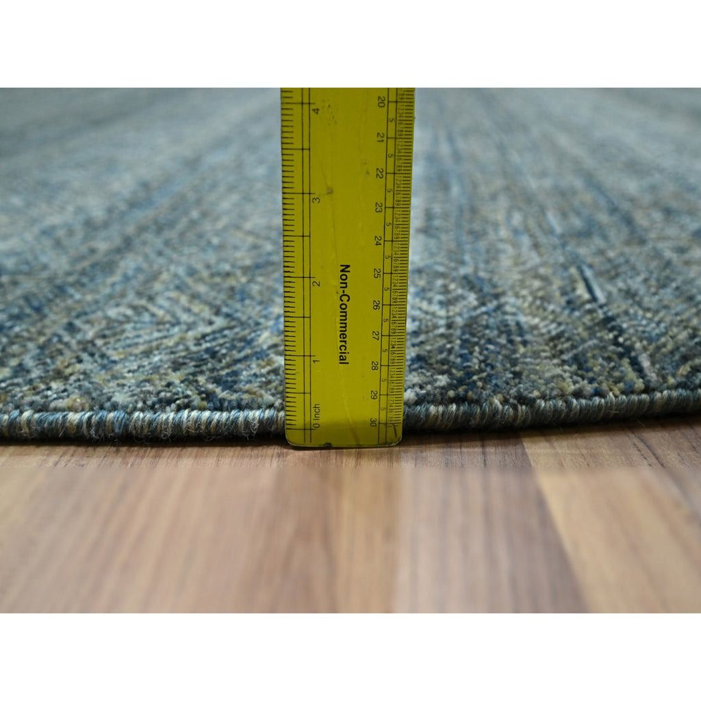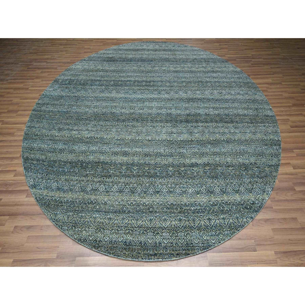 10'x10' Imperial Blue, Hand Knotted, Kohinoor Herat Pattern, Small Geometric Repetitive Diamond Design, Soft Wool, Tone On Tone, Round, Oriental Rug FWR460734