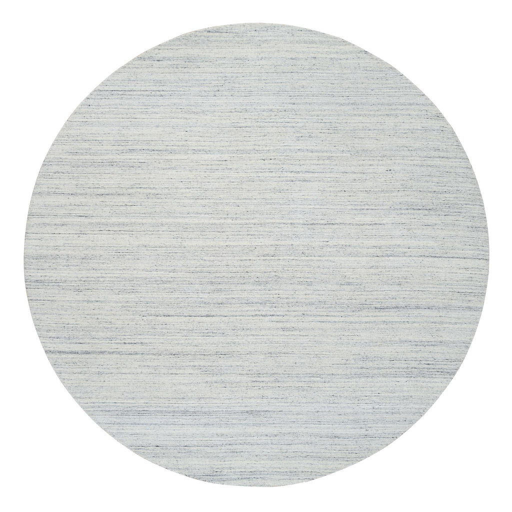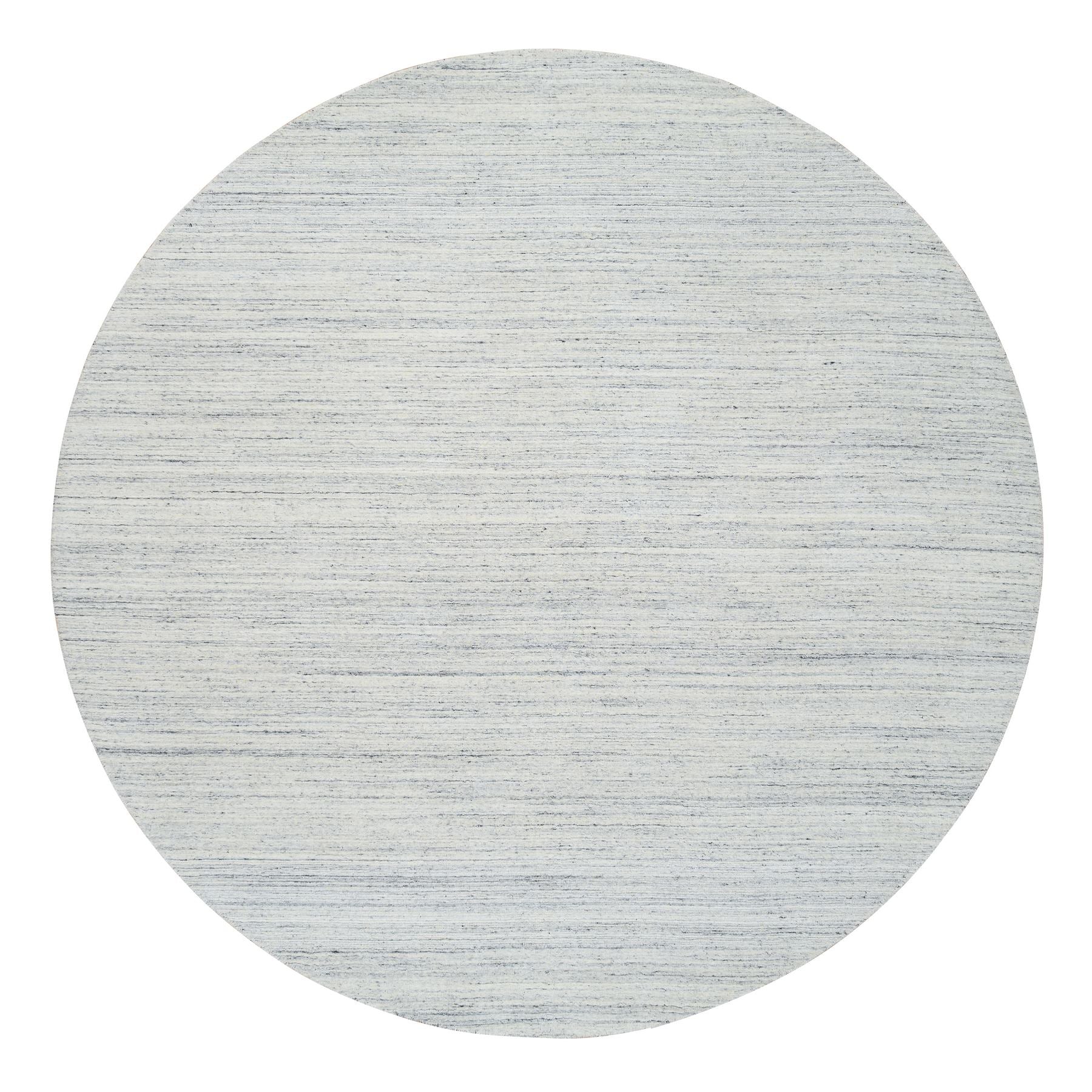 10'x10' Ivory, Hand Loomed Plain Modern Striae Design, Soft Pile Organic Wool, Round Oriental Rug FWR388770