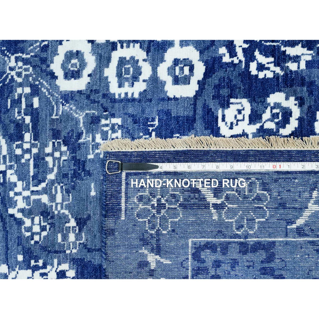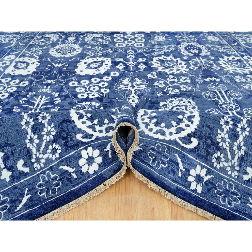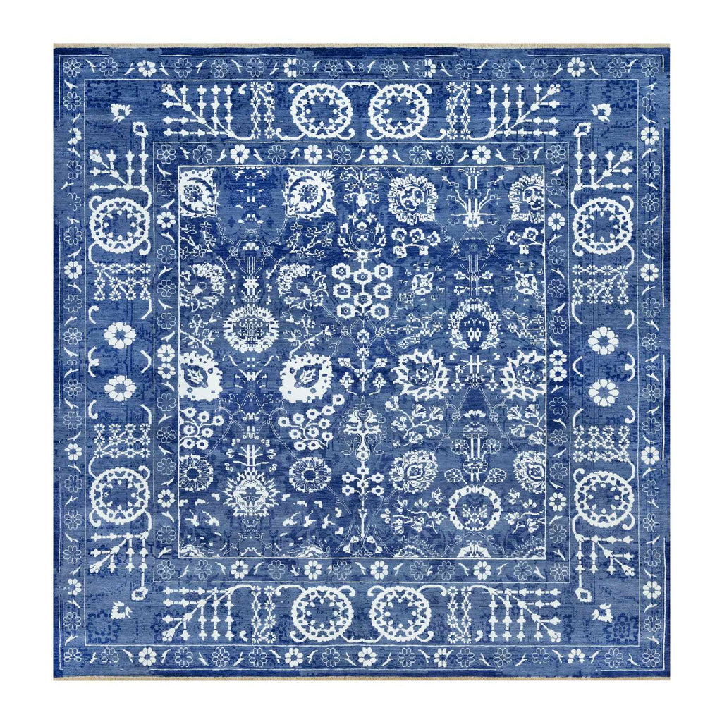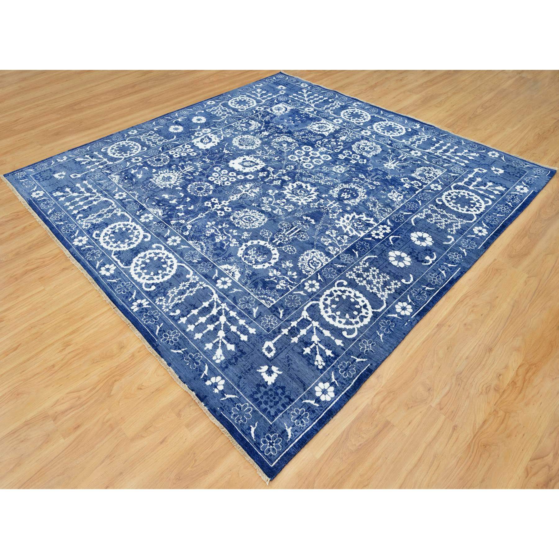 10'x10' Kensington Blue, Hand Knotted, Tone On Tone, Tabriz With All Over Leaf Motifs, Wool And Silk, Oriental, Square Rug FWR544014
