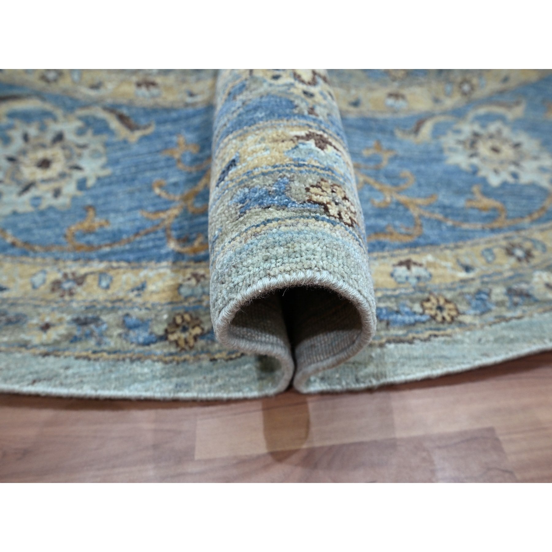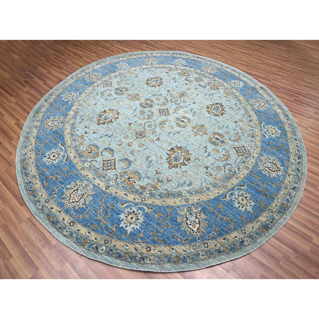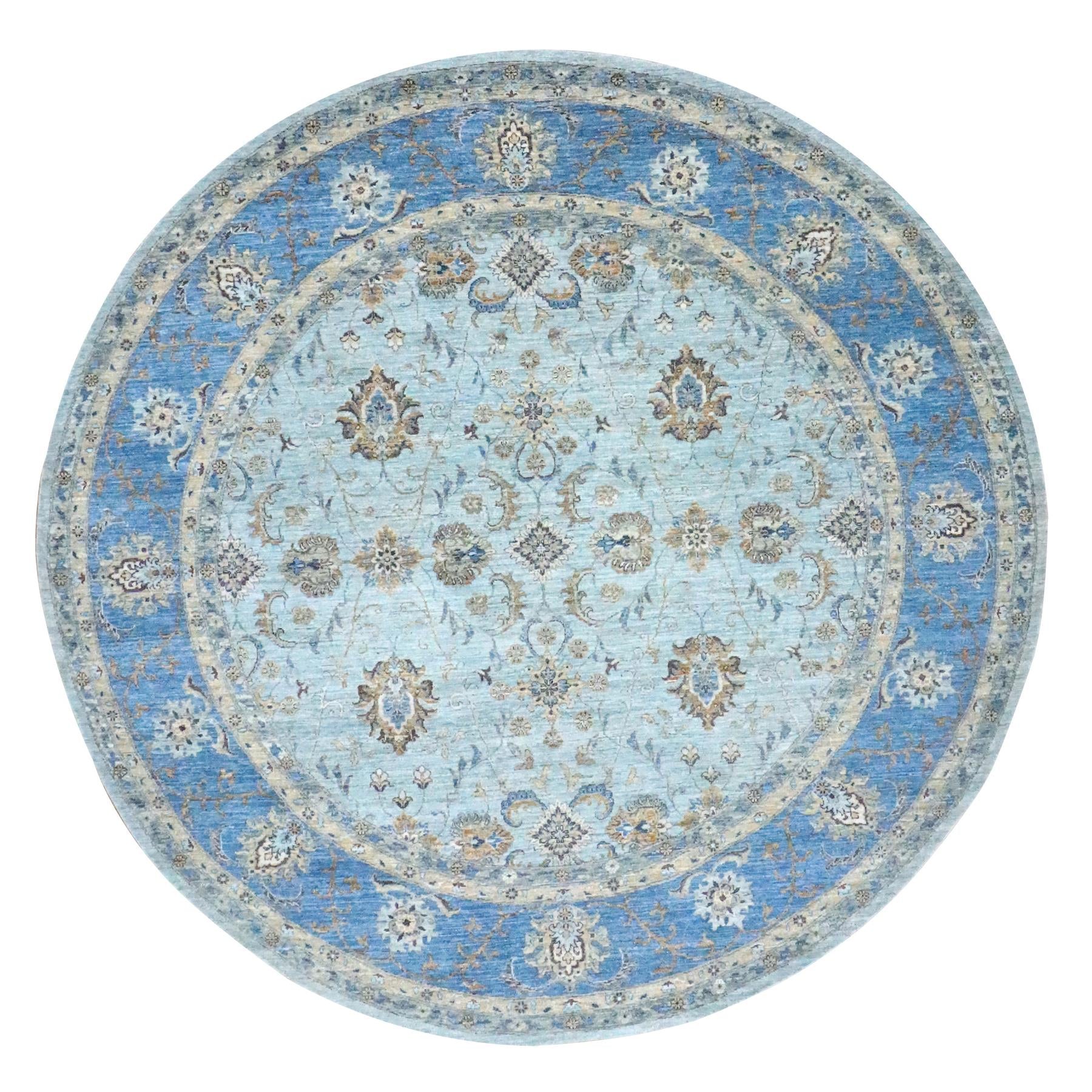 10'x10' Light Cyan Blue, Agra, All Over Shah Abbas Flower Design, Veggie Dyes, Densely Woven, Natural Wool, Hand Knotted, Round, Oriental Rug FWR456738