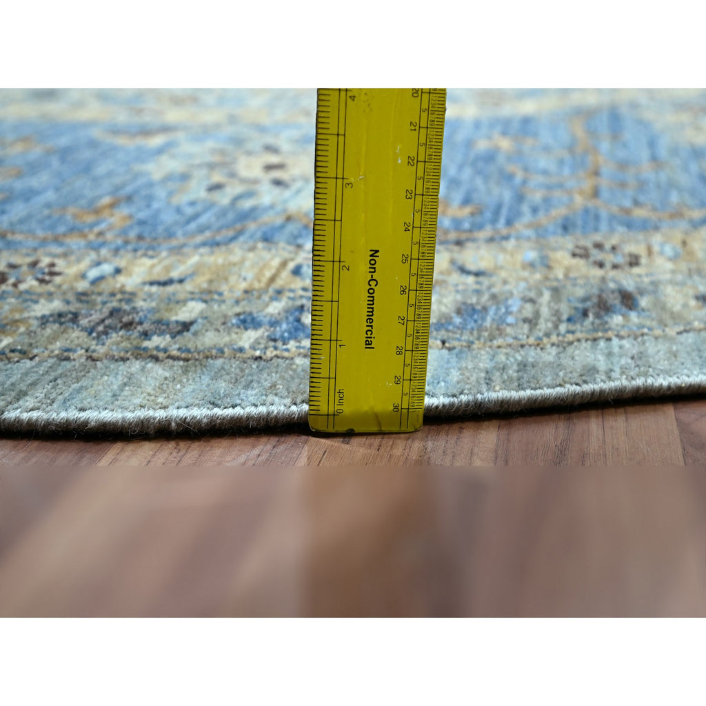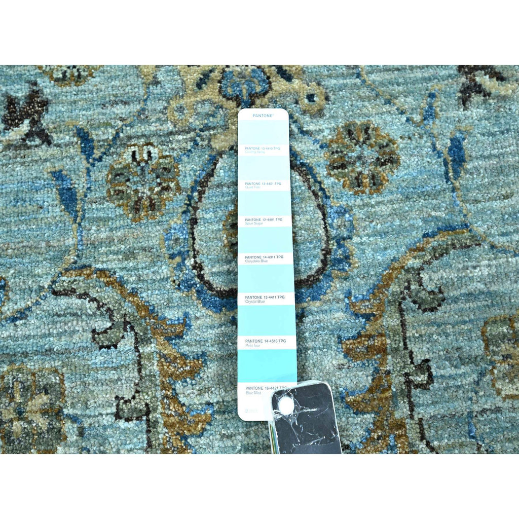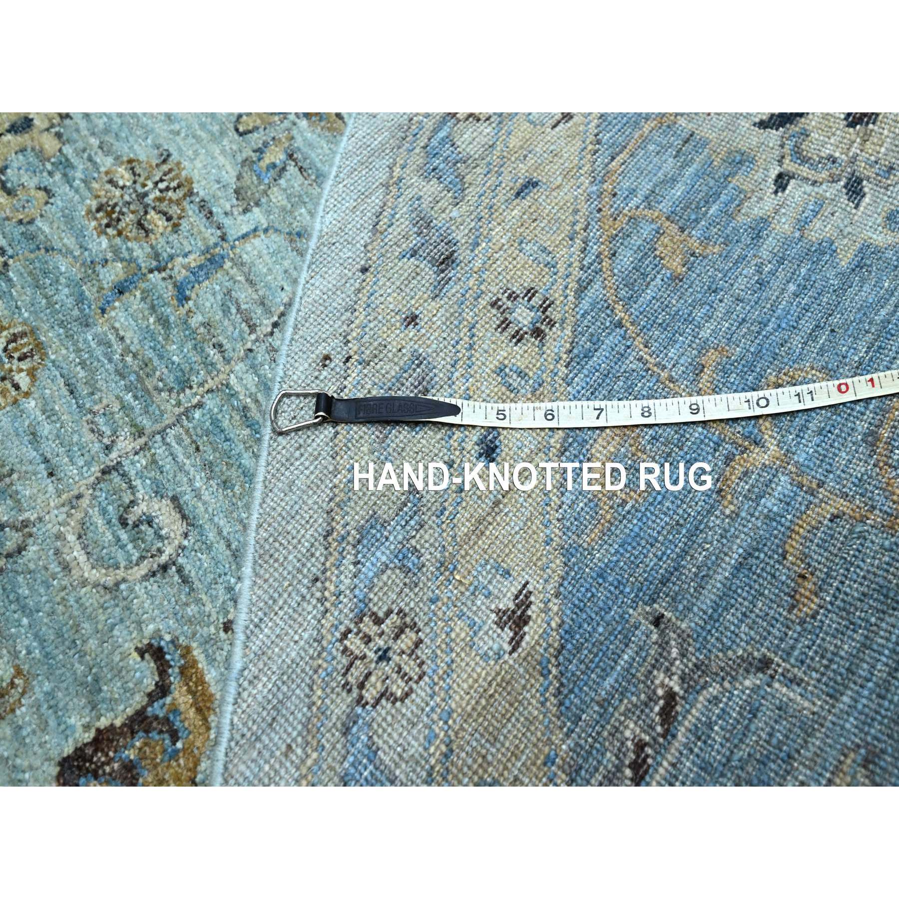 10'x10' Light Cyan Blue, Agra, All Over Shah Abbas Flower Design, Veggie Dyes, Densely Woven, Natural Wool, Hand Knotted, Round, Oriental Rug FWR456738