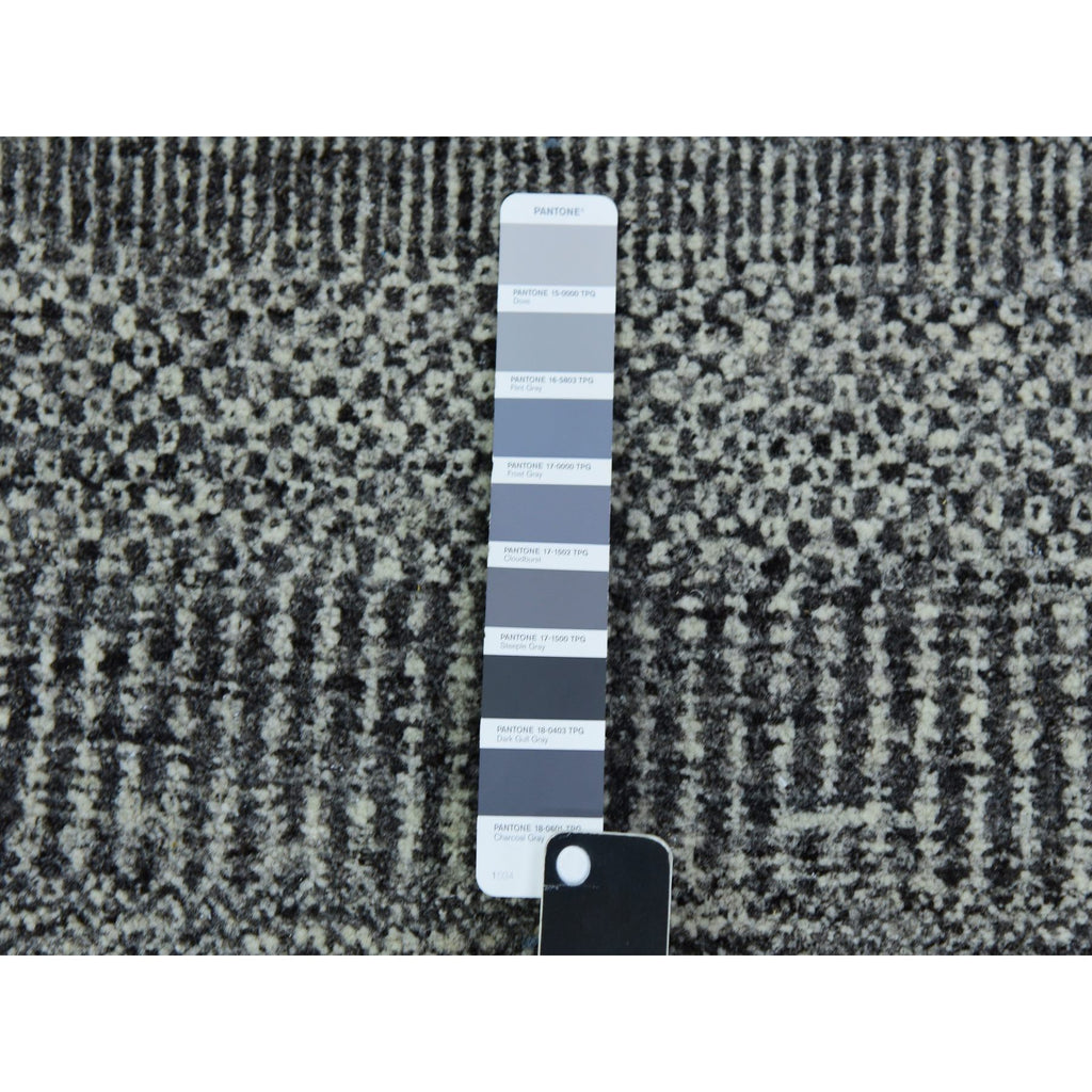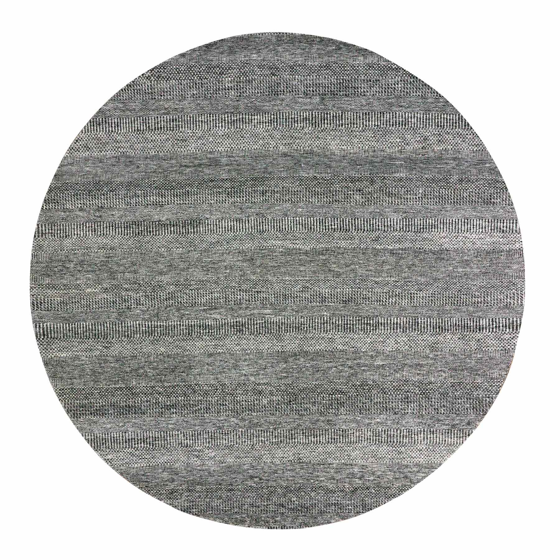 10'x10' Neutral And Anchor Gray, Tone On Tone, Undyed 100% Wool, Hand Knotted Modern Grass Design, Round Oriental Rug FWR478368