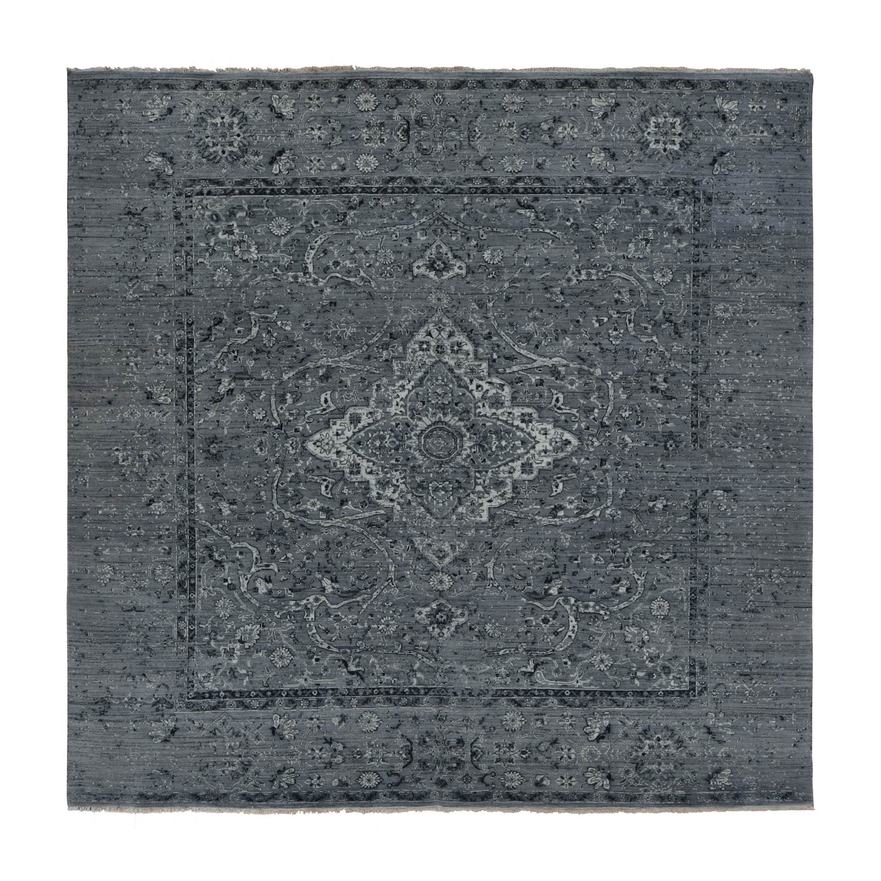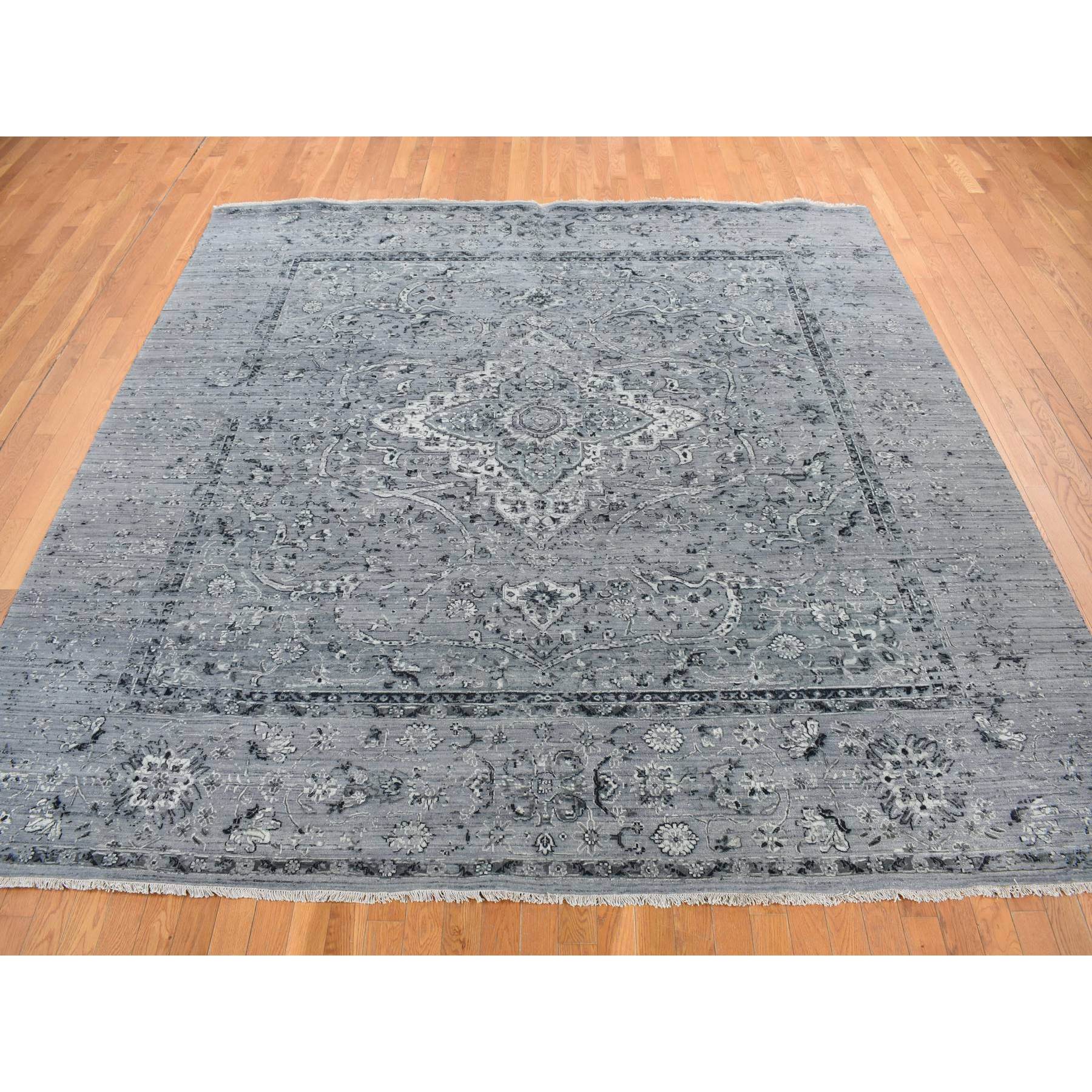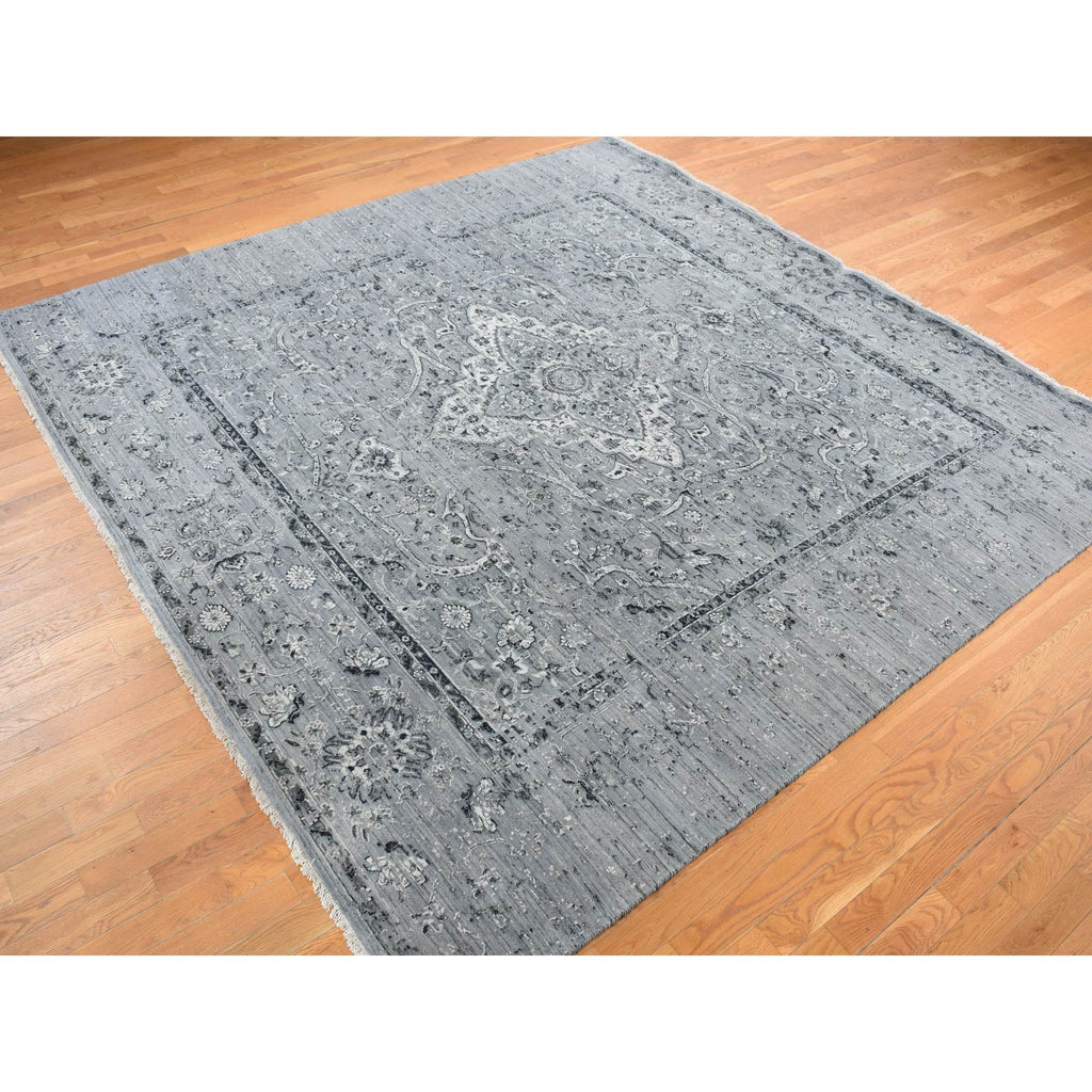 10'x10' Nickel Gray, Broken And Erased Persian Design, Pure Silk With Textured Wool, Hand Knotted, Square, Oriental Rug FWR468090