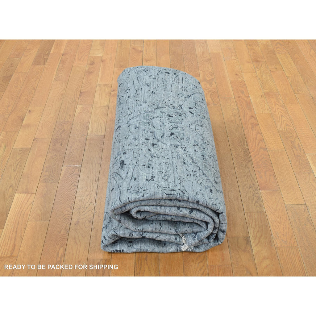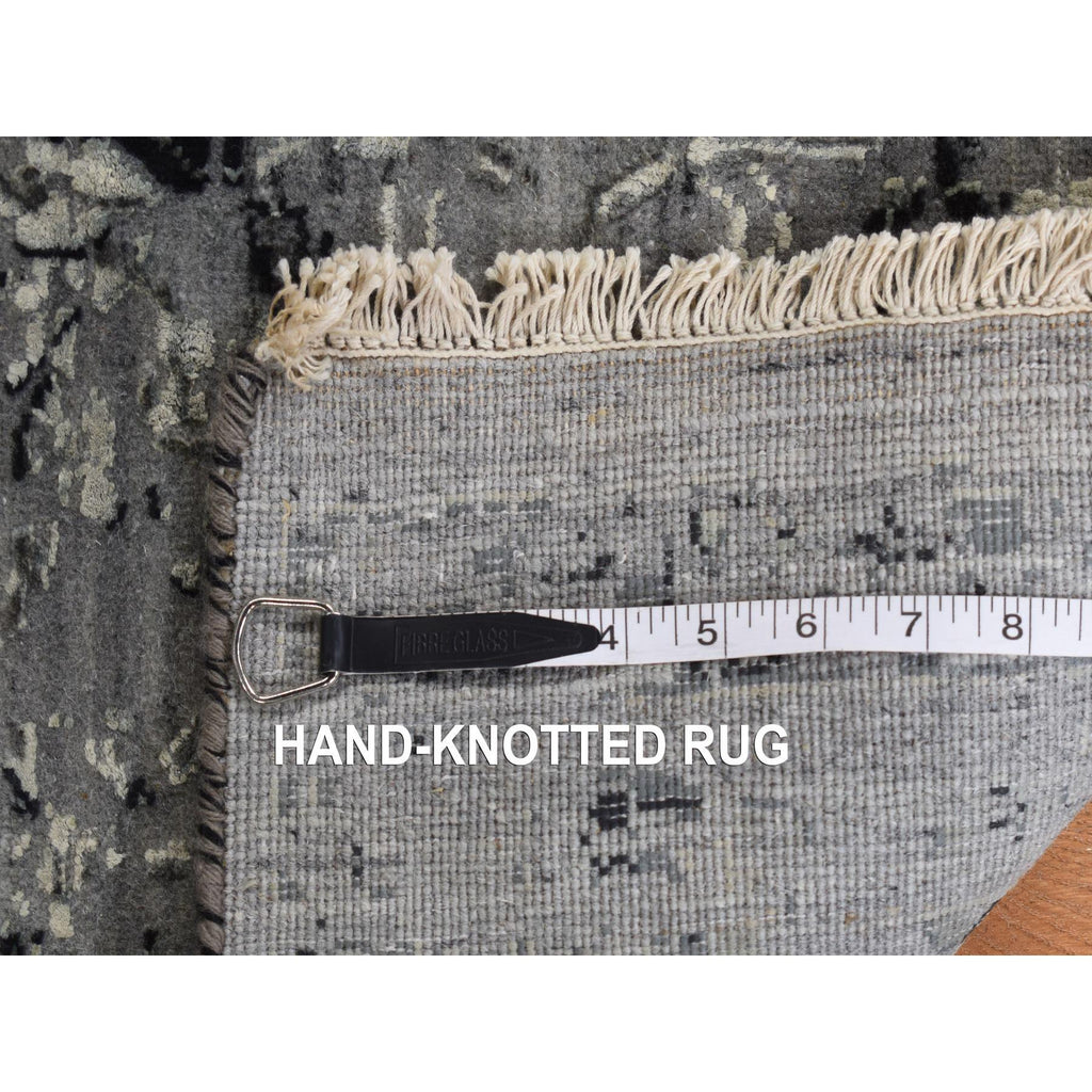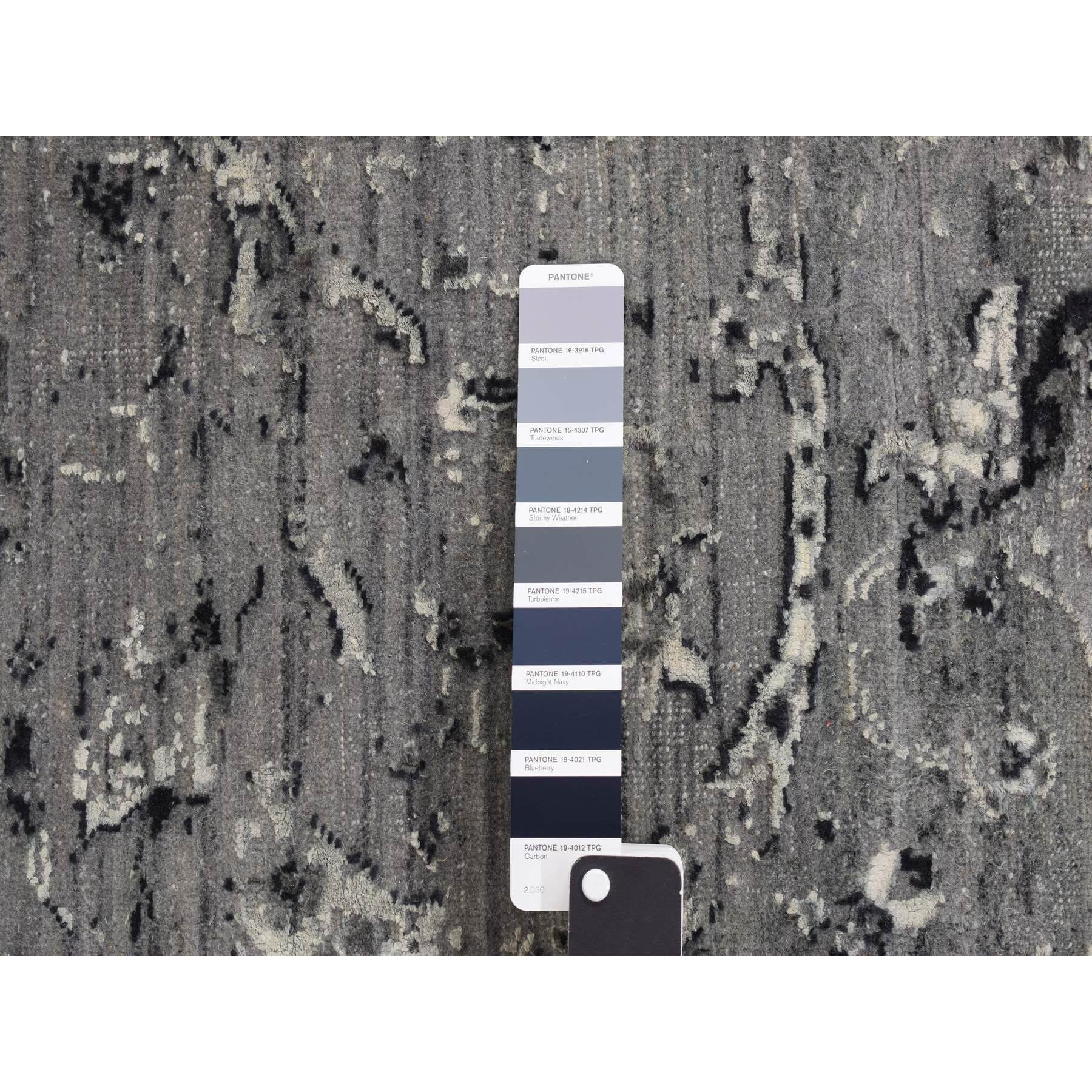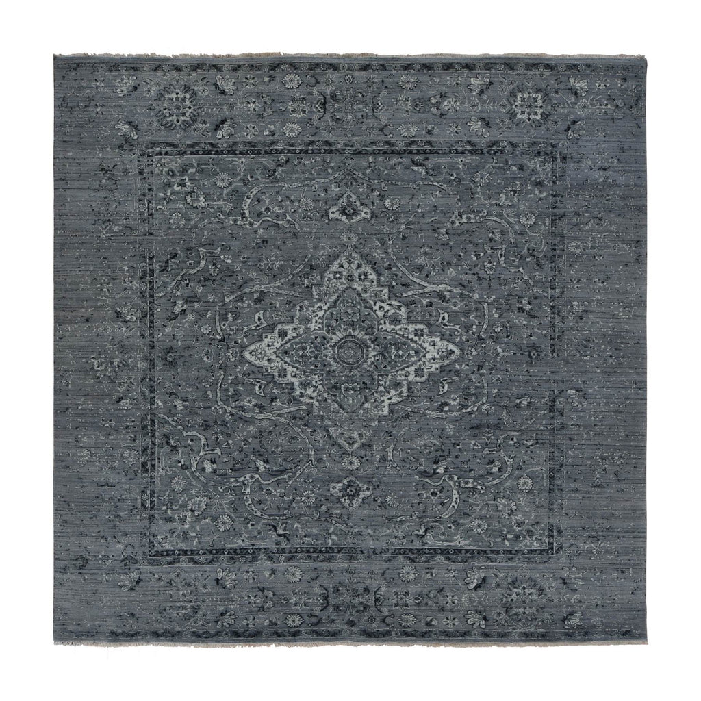 10'x10' Nickel Gray, Broken And Erased Persian Design, Pure Silk With Textured Wool, Hand Knotted, Square, Oriental Rug FWR468090