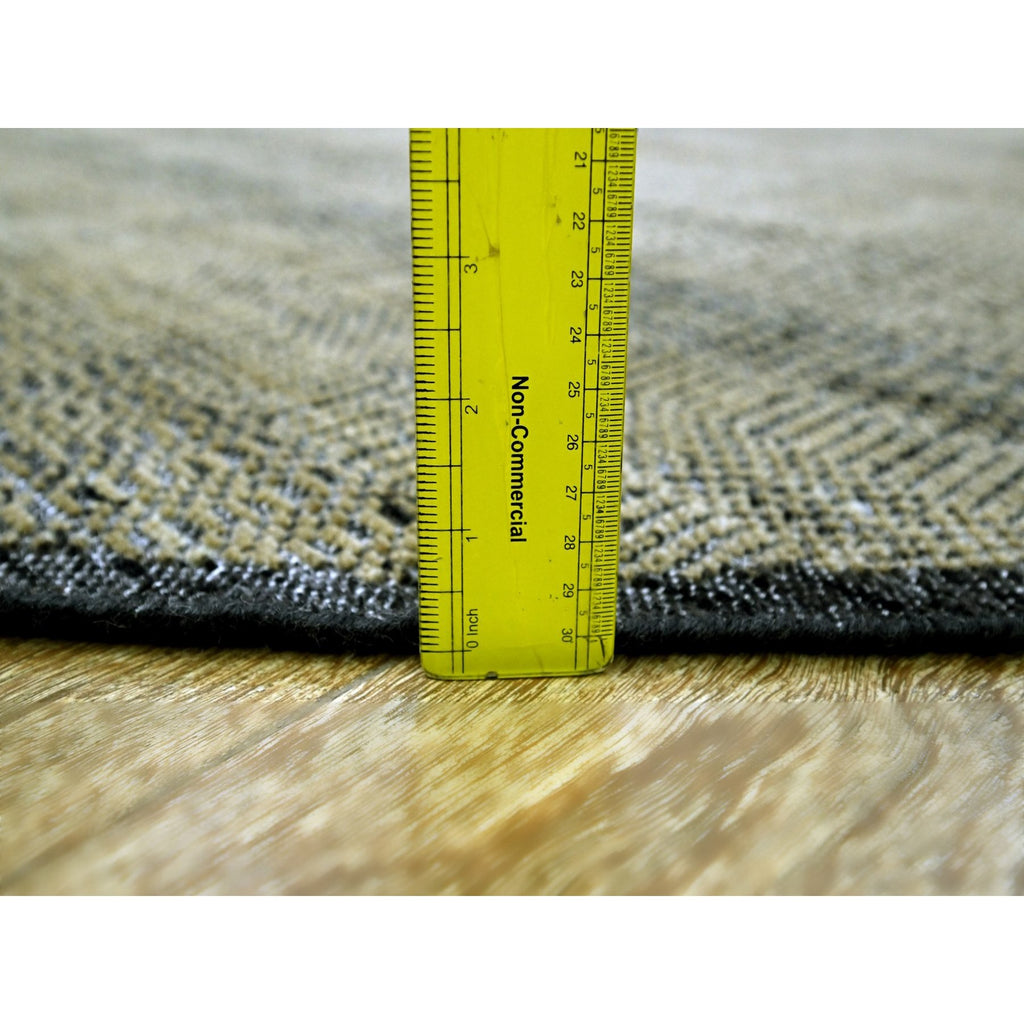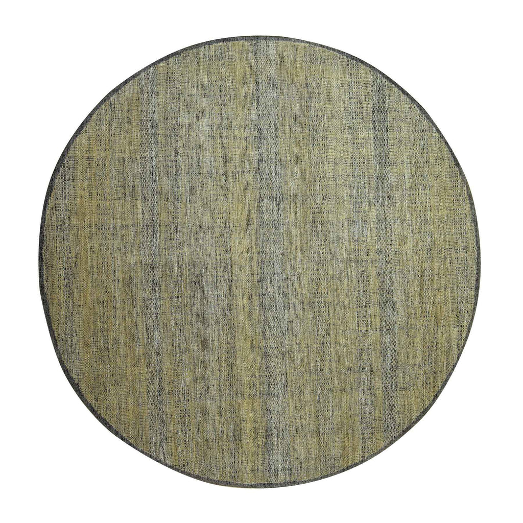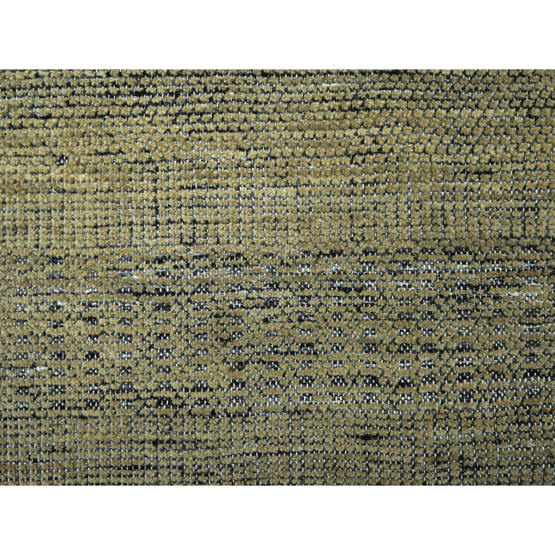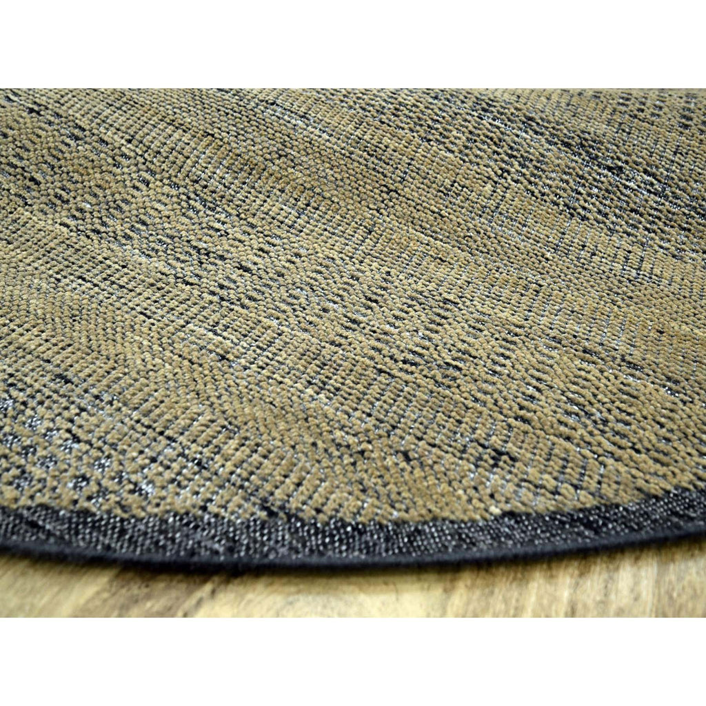 10'x10' Peanut Brown With Black, Pure Wool, Hand Knotted, Oxidized And Distressed Grass Design, Round, Oriental Rug FWR460350
