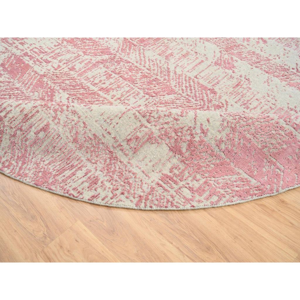 10'x10' Rose Pink, Wool And Art Silk Jacquard Hand Loomed, All Over Design, Round Oriental Rug FWR389052