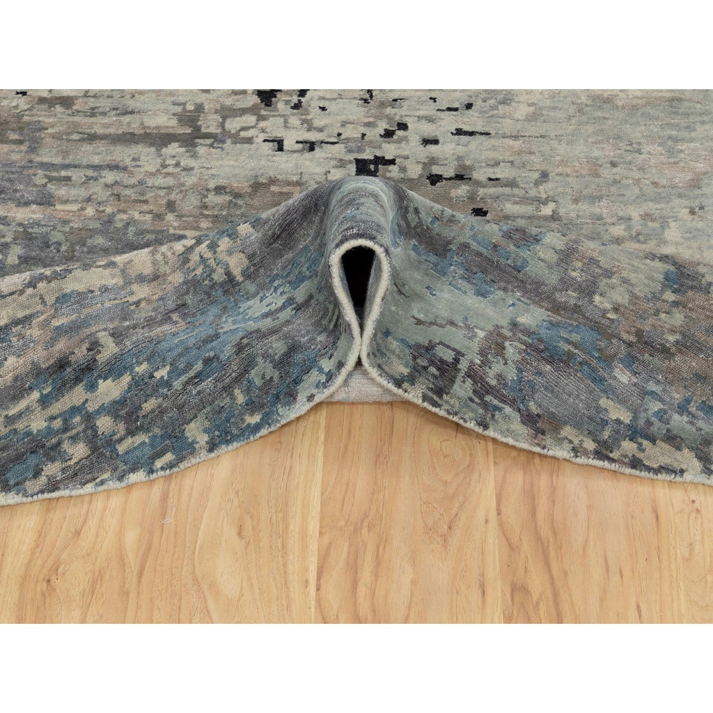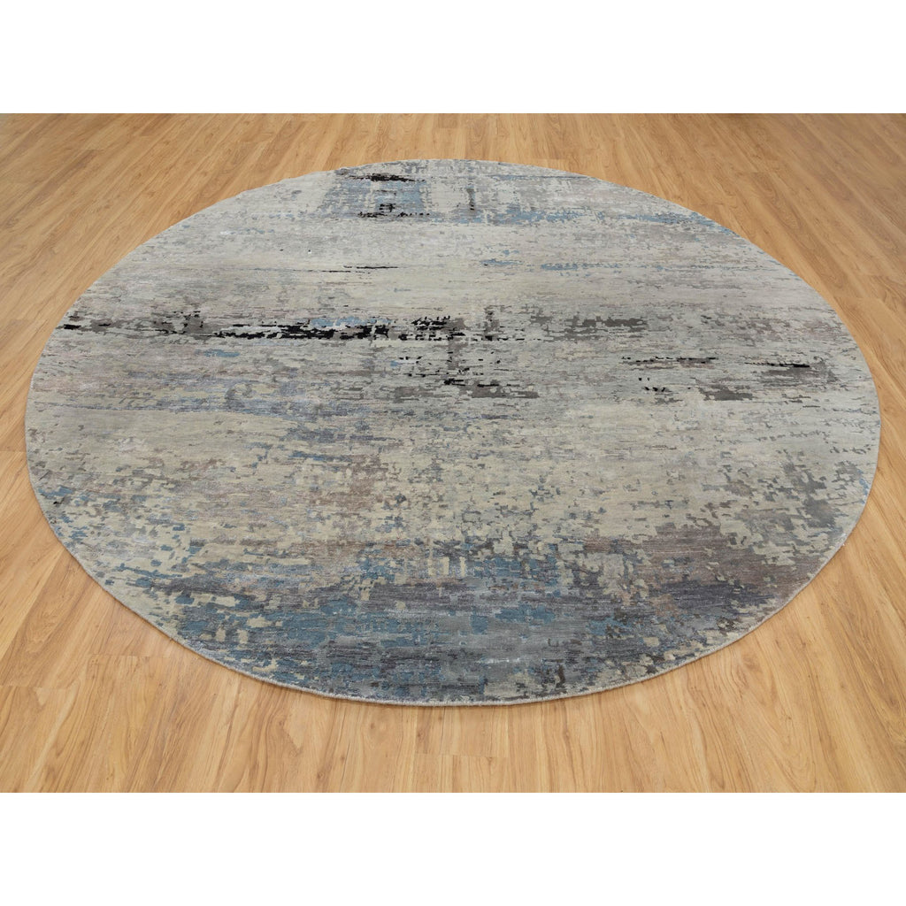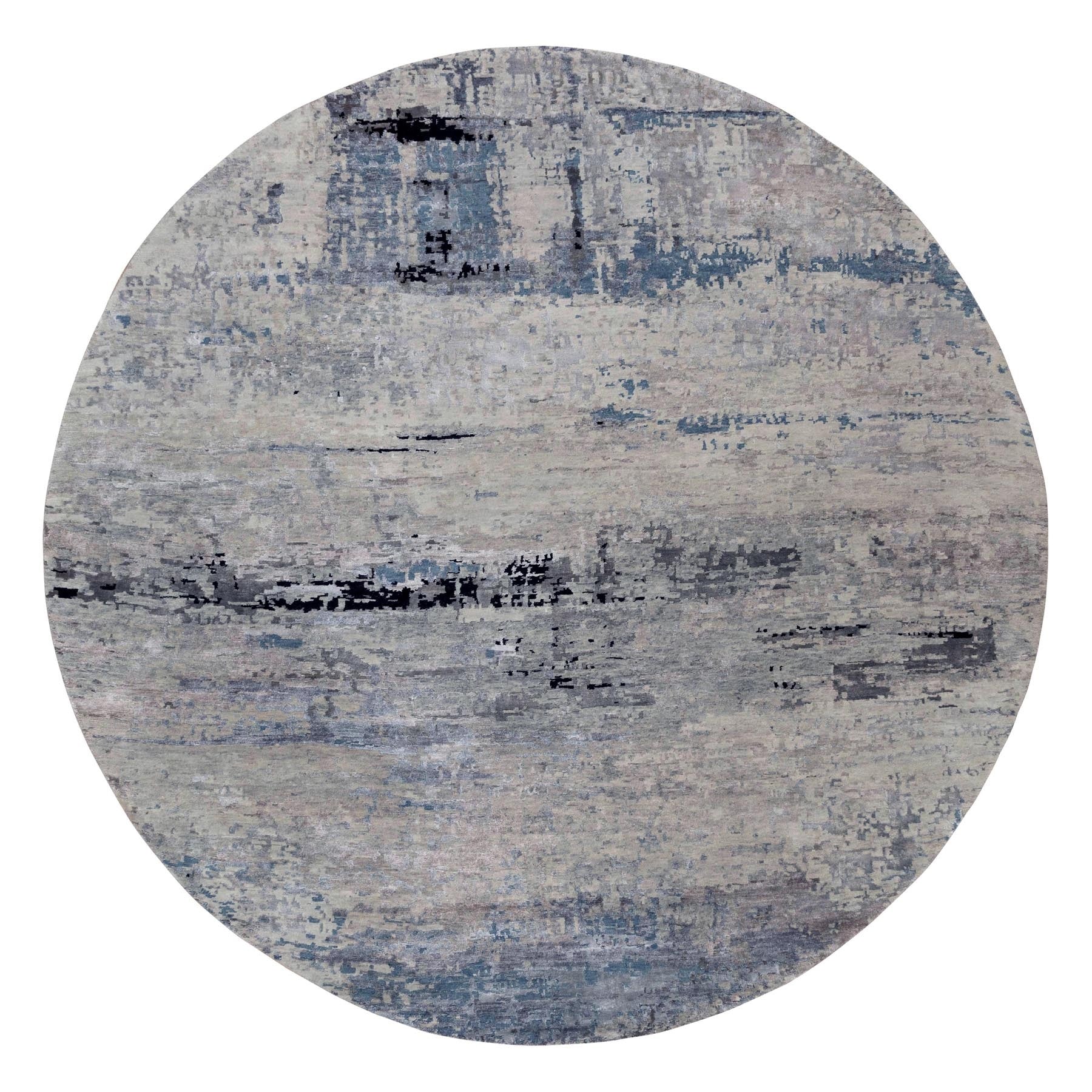 10'x10' Round Silver, Blue Wool & Silk Abstract Design Hand Knotted Oriental Modern Rug FWR350880