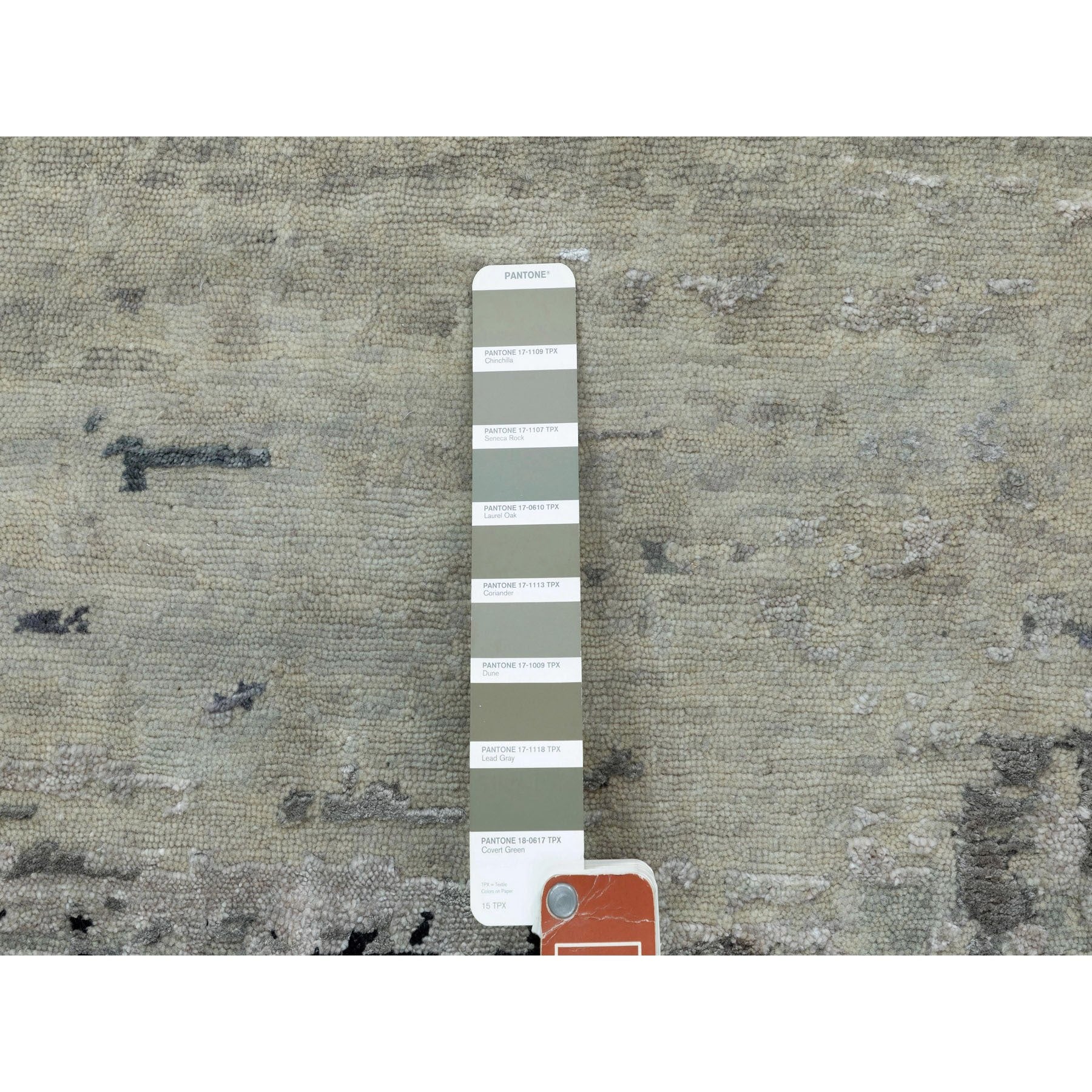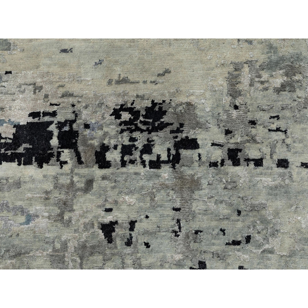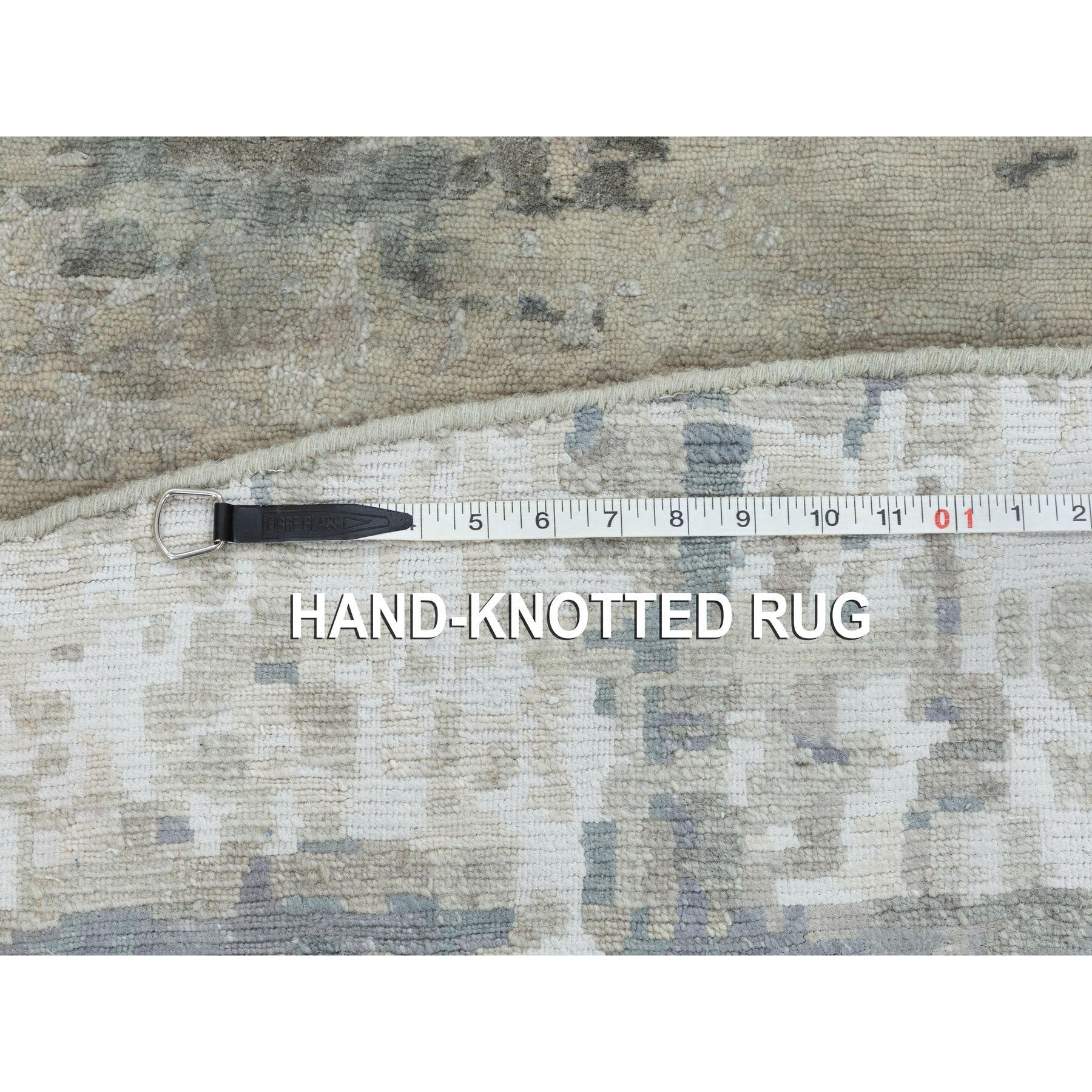 10'x10' Round Silver, Blue Wool & Silk Abstract Design Hand Knotted Oriental Modern Rug FWR350880