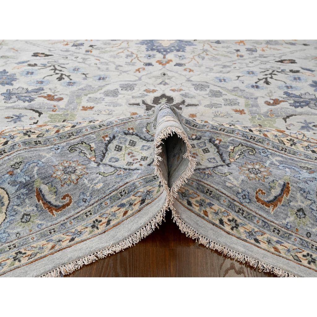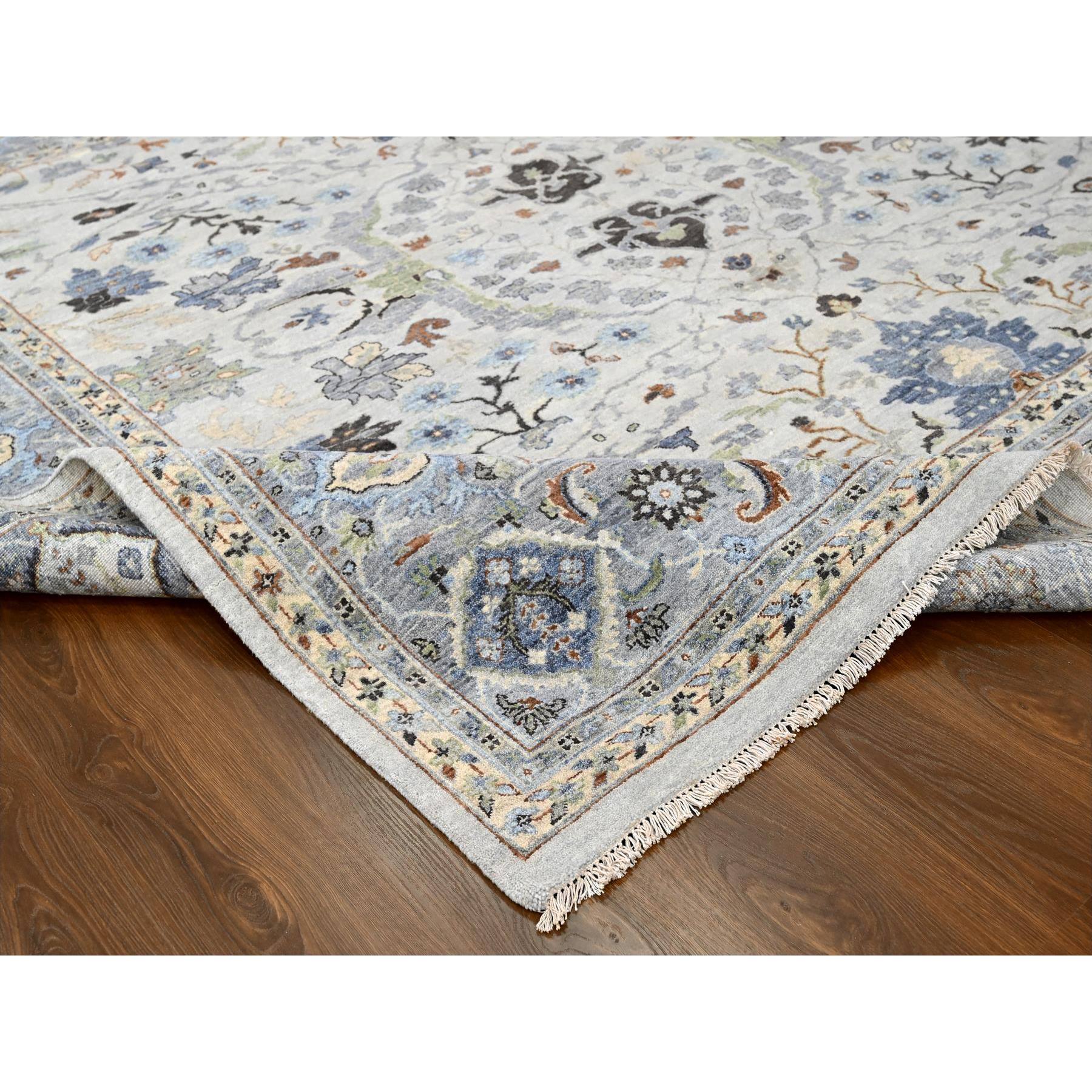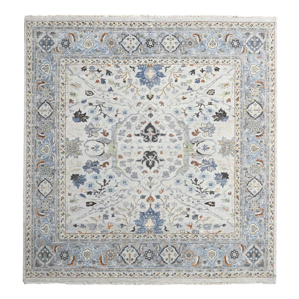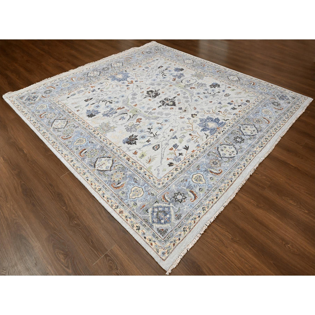 10'x10' Summer And Sharkfin Gray, Denser Weave Oushak All Over Floral Design, Natural Dyes, Shiny Wool, Hand Knotted Square Oriental Rug FWR509154