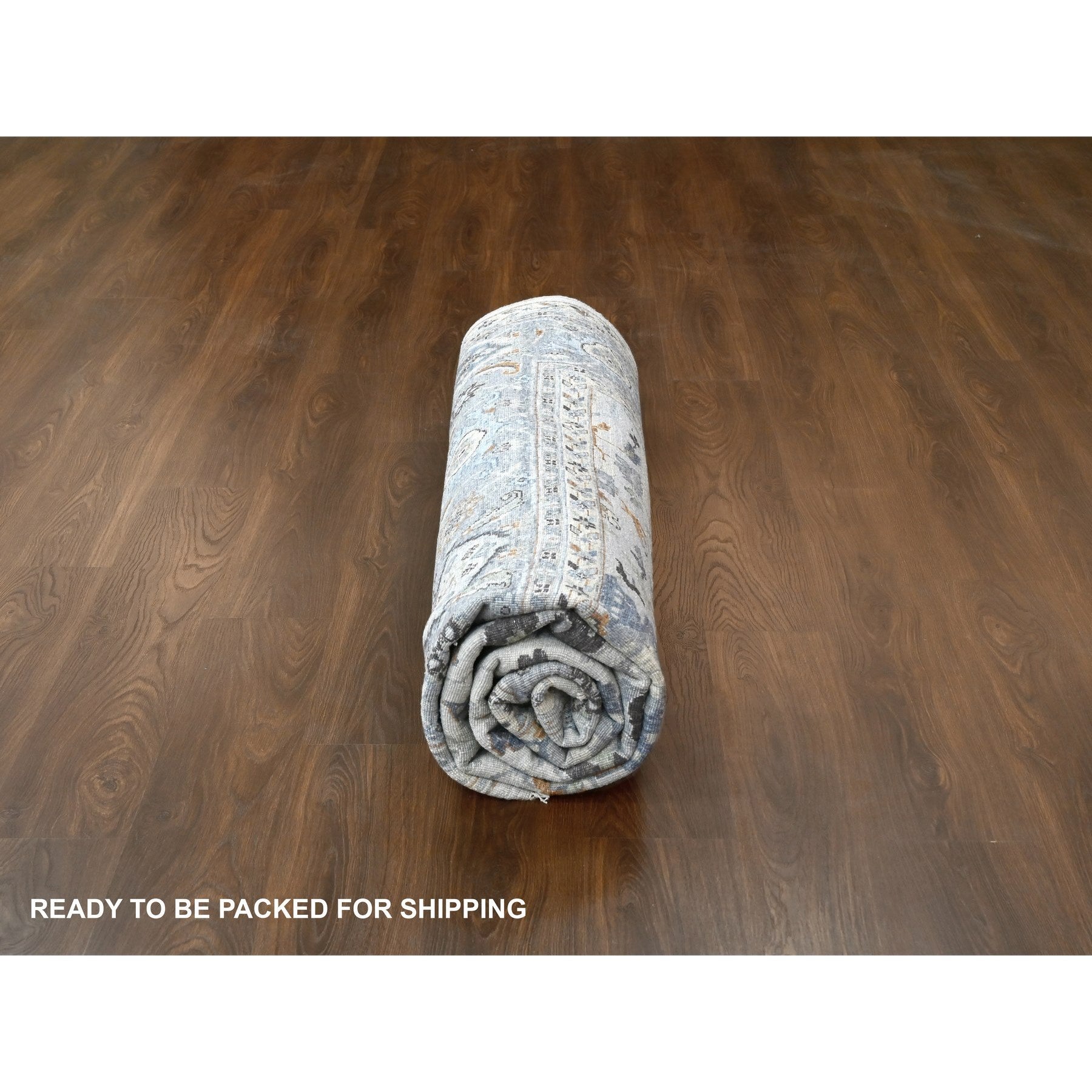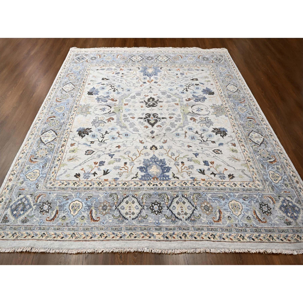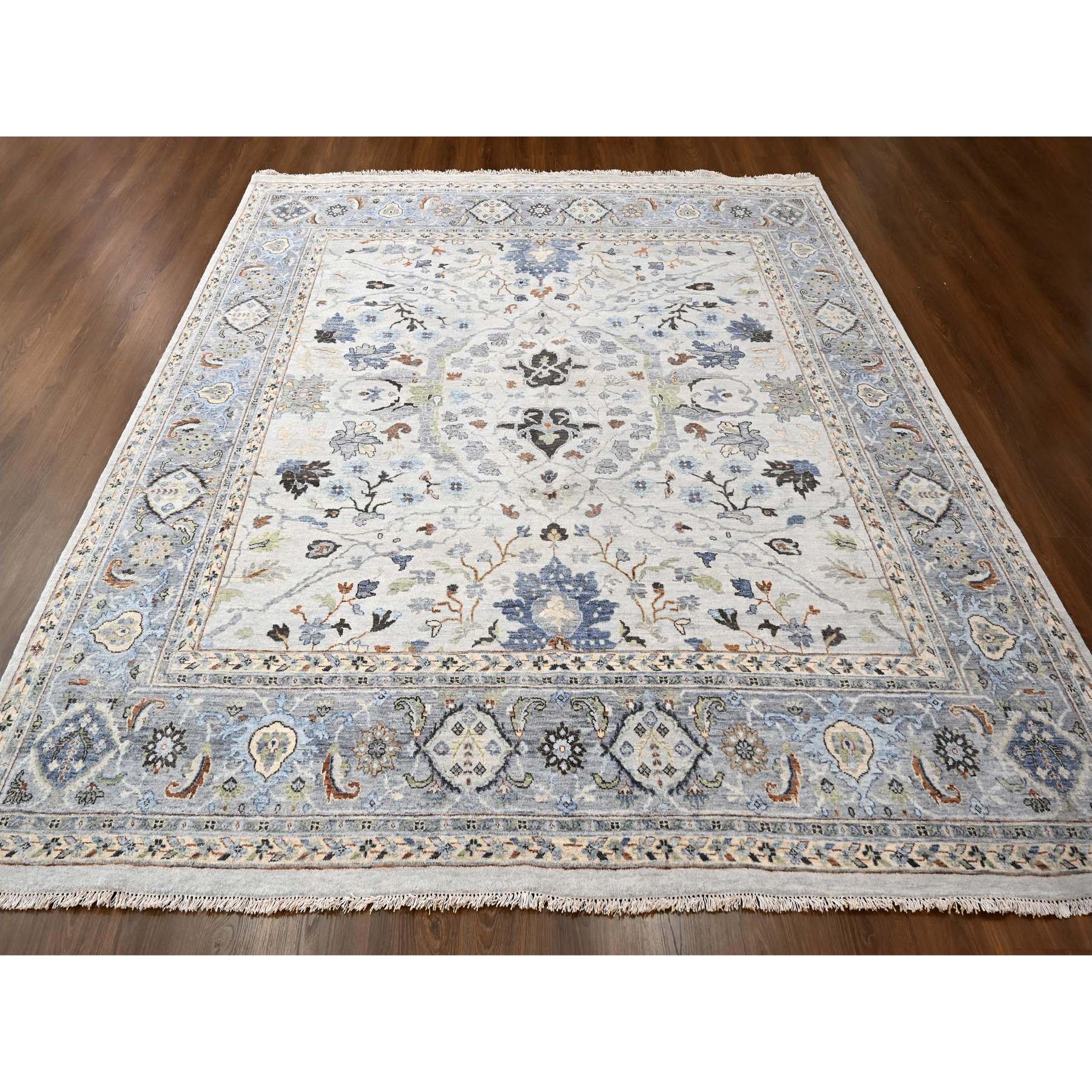 10'x10' Summer And Sharkfin Gray, Denser Weave Oushak All Over Floral Design, Natural Dyes, Shiny Wool, Hand Knotted Square Oriental Rug FWR509154