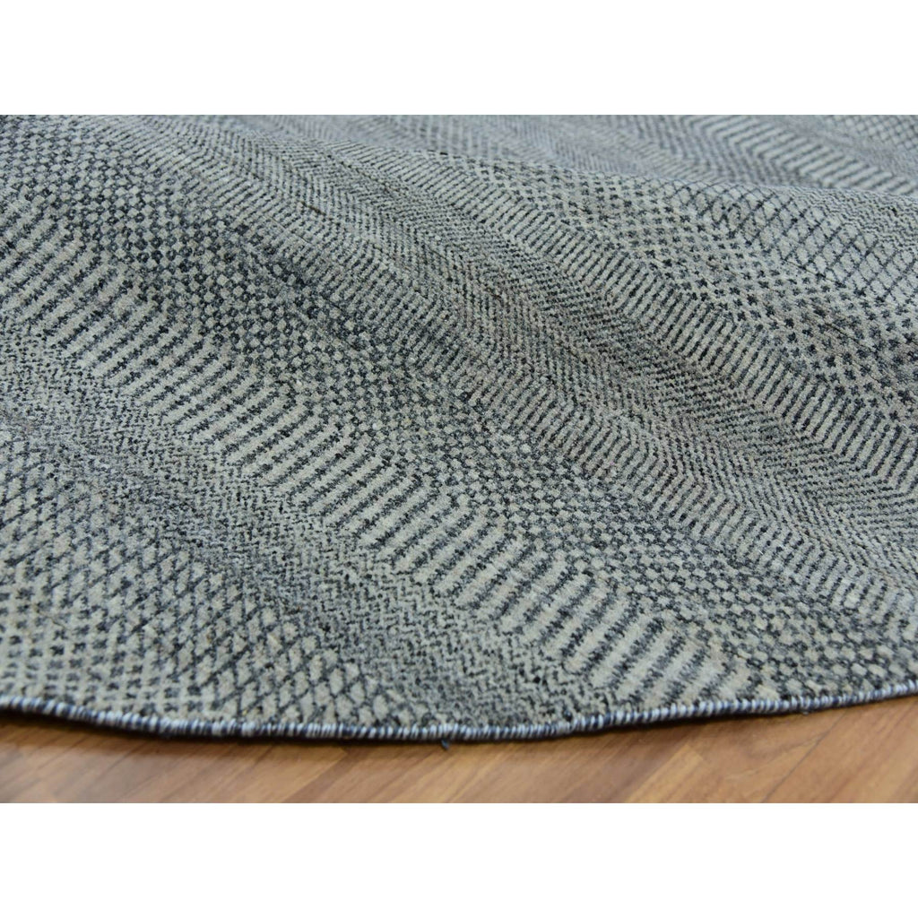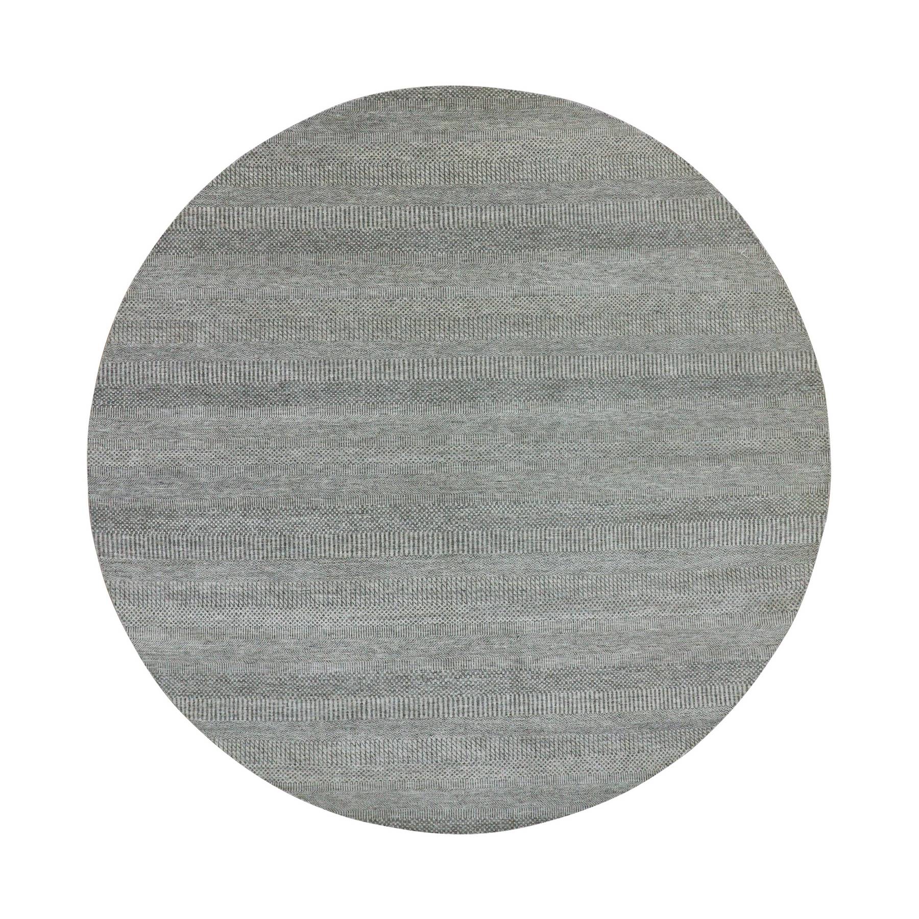 10'x10' Trout Gray, Hand Knotted, Modern Tone On Tone Grass Design, 100% Undyed Natural Wool, Oriental Round Rug FWR479250