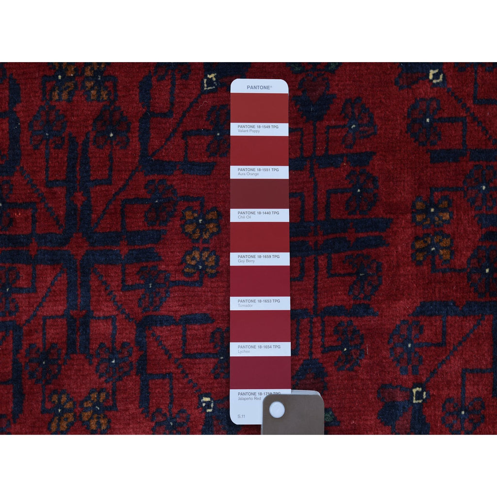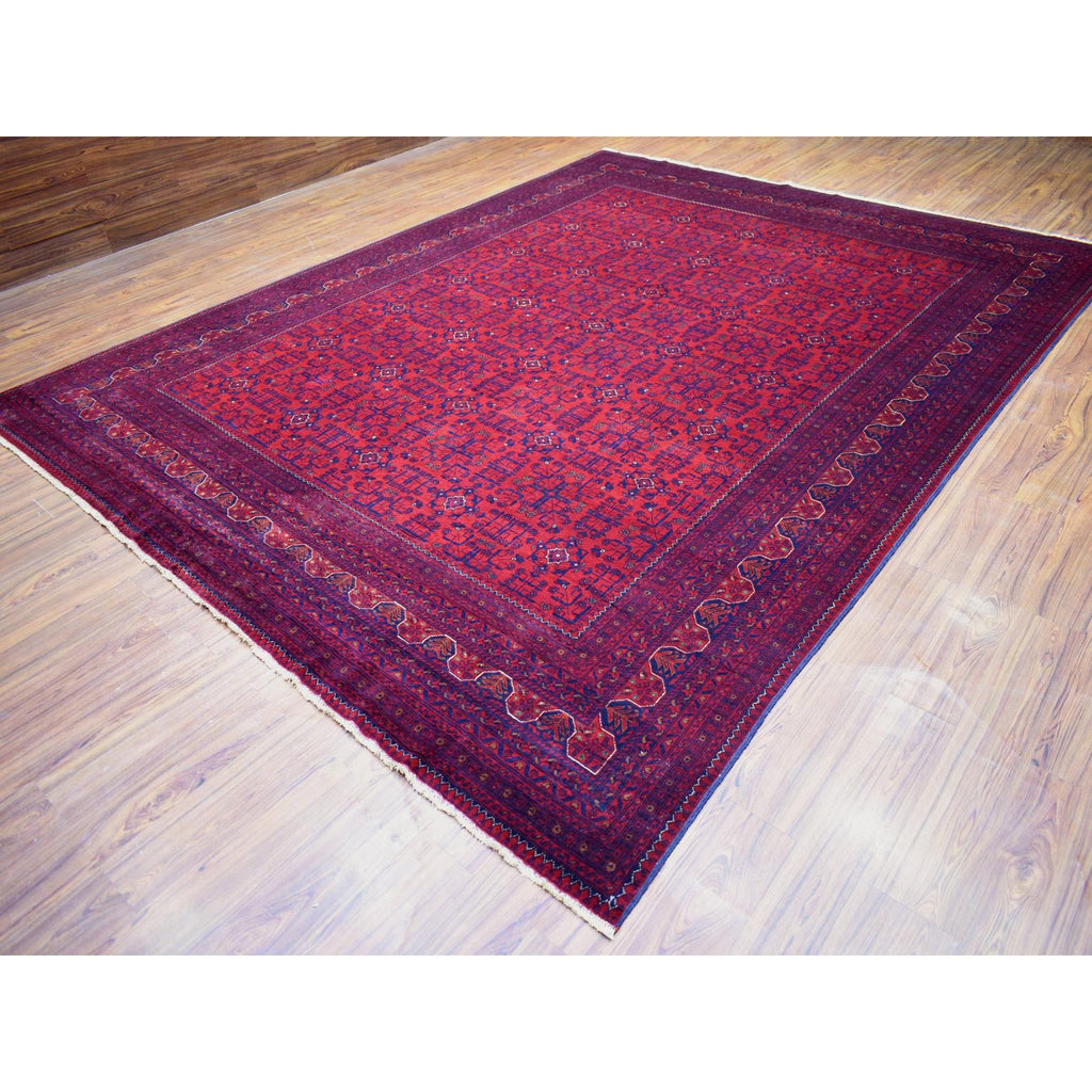 10'x12'10" Deep And Saturated Red Hand Knotted, Pure Wool Afghan Khamyab, Geometric Medallions Design Oriental Rug FWR431490