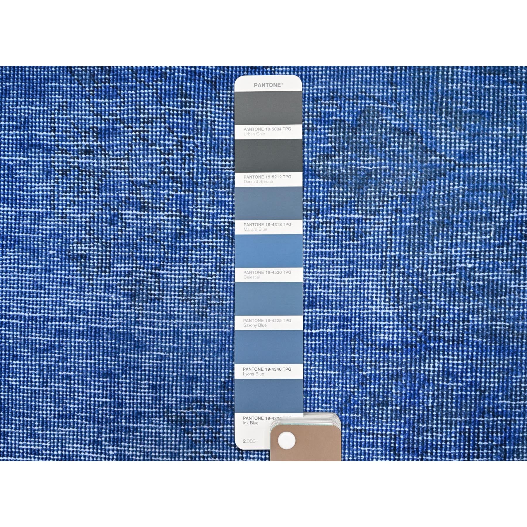 10'x12'7" Lyons Blue, Hand Knotted Vintage Persian Tabriz, Cleaned, Sides And Ends Professionally Secured, Overdyed Distressed, Sheared Low, Evenly Worn Natural Wool Oriental Rug FWR521598