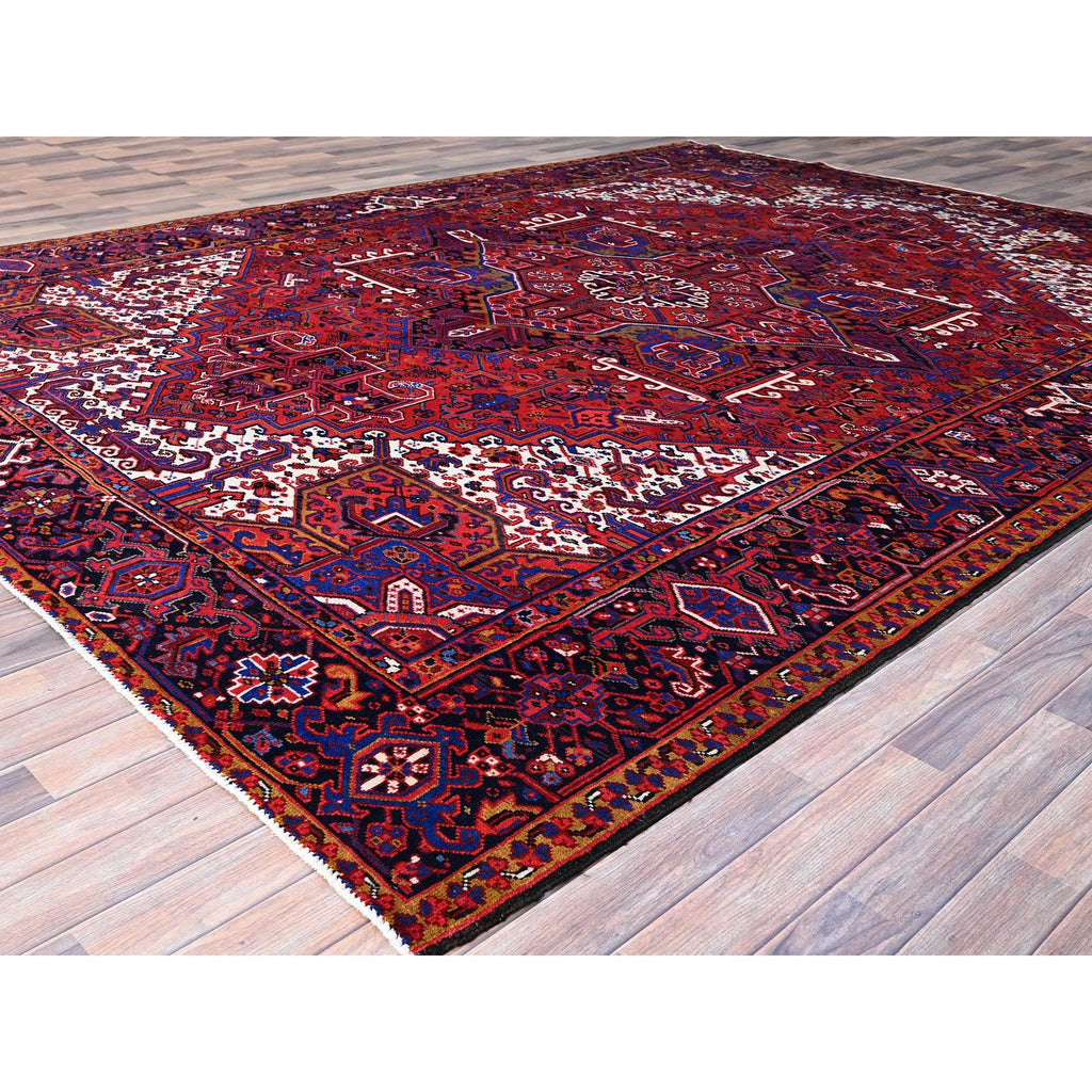 10'x12'9" Goji Berry Red With Large Centre Medallion, 100% Wool, Hand Knotted, Tribal Weaving, Clean, Ends And Sides Secured, Good Condition, Persian Heriz Vintage Oriental Rug FWR660