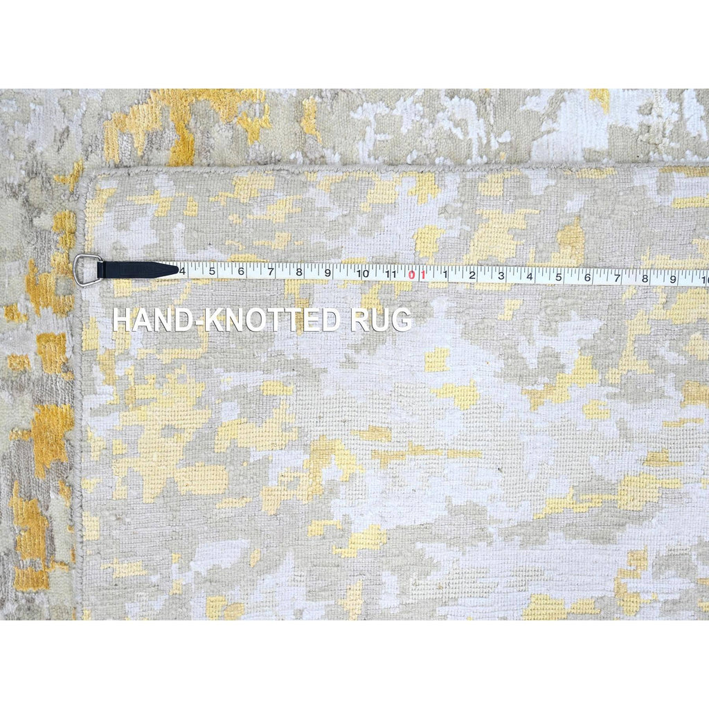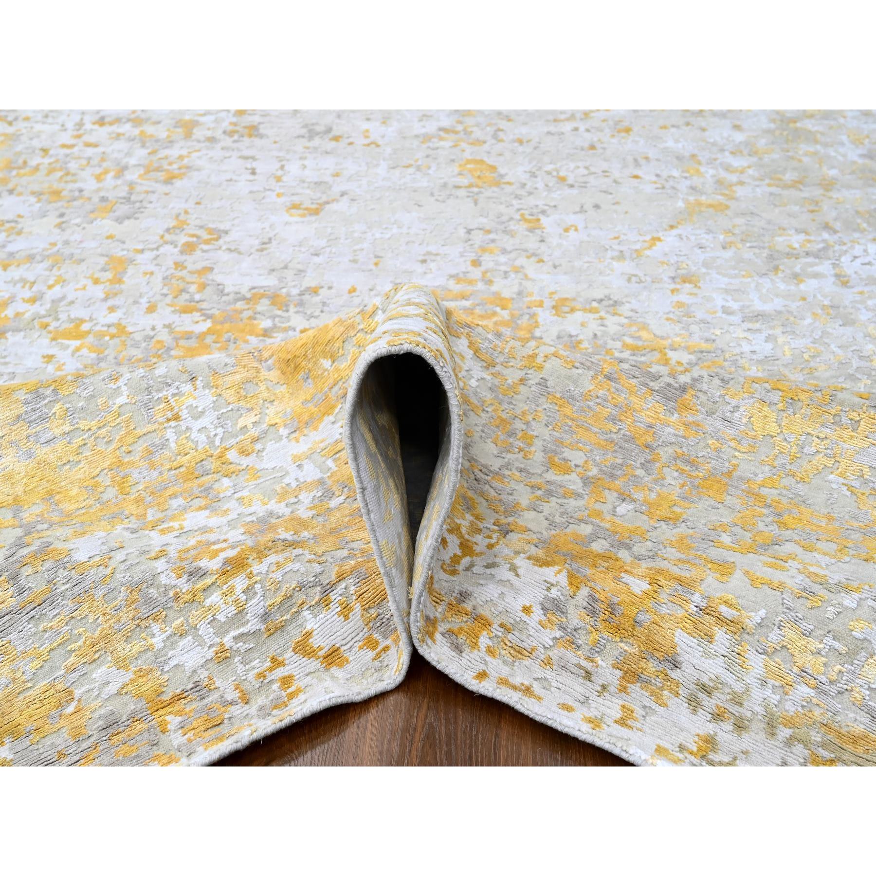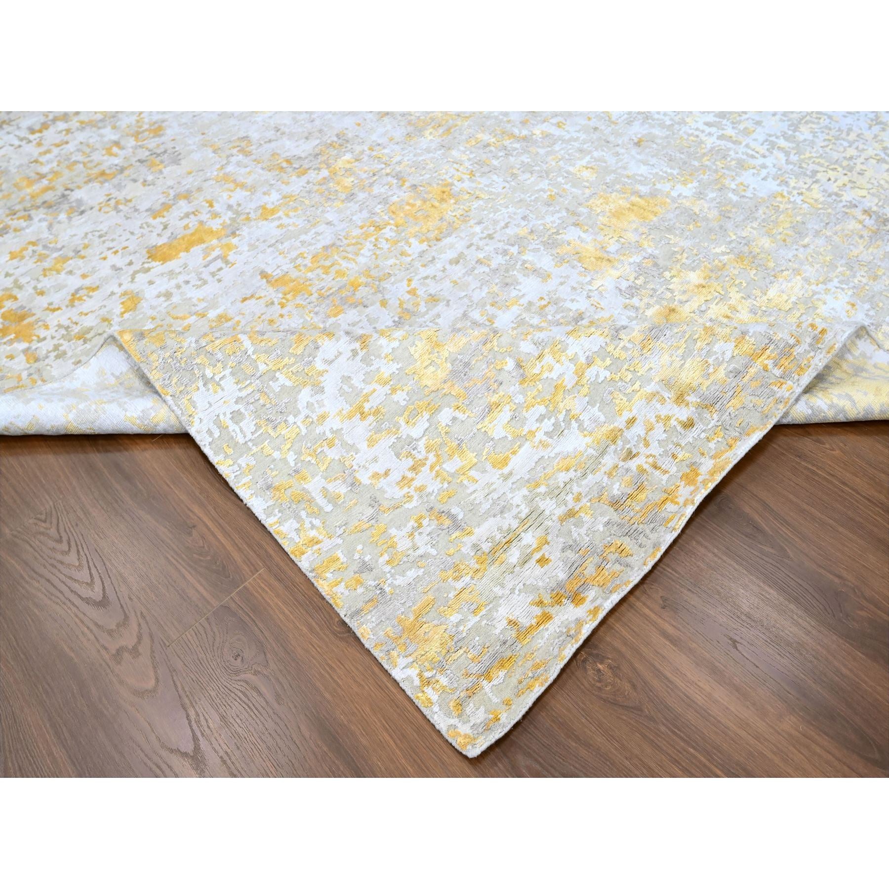 10'x13'10" Beige With Gold, Abstract Design, Wool And Silk, Densely Woven, Hi-low Pile, Hand Knotted, Oriental Rug FWR61188