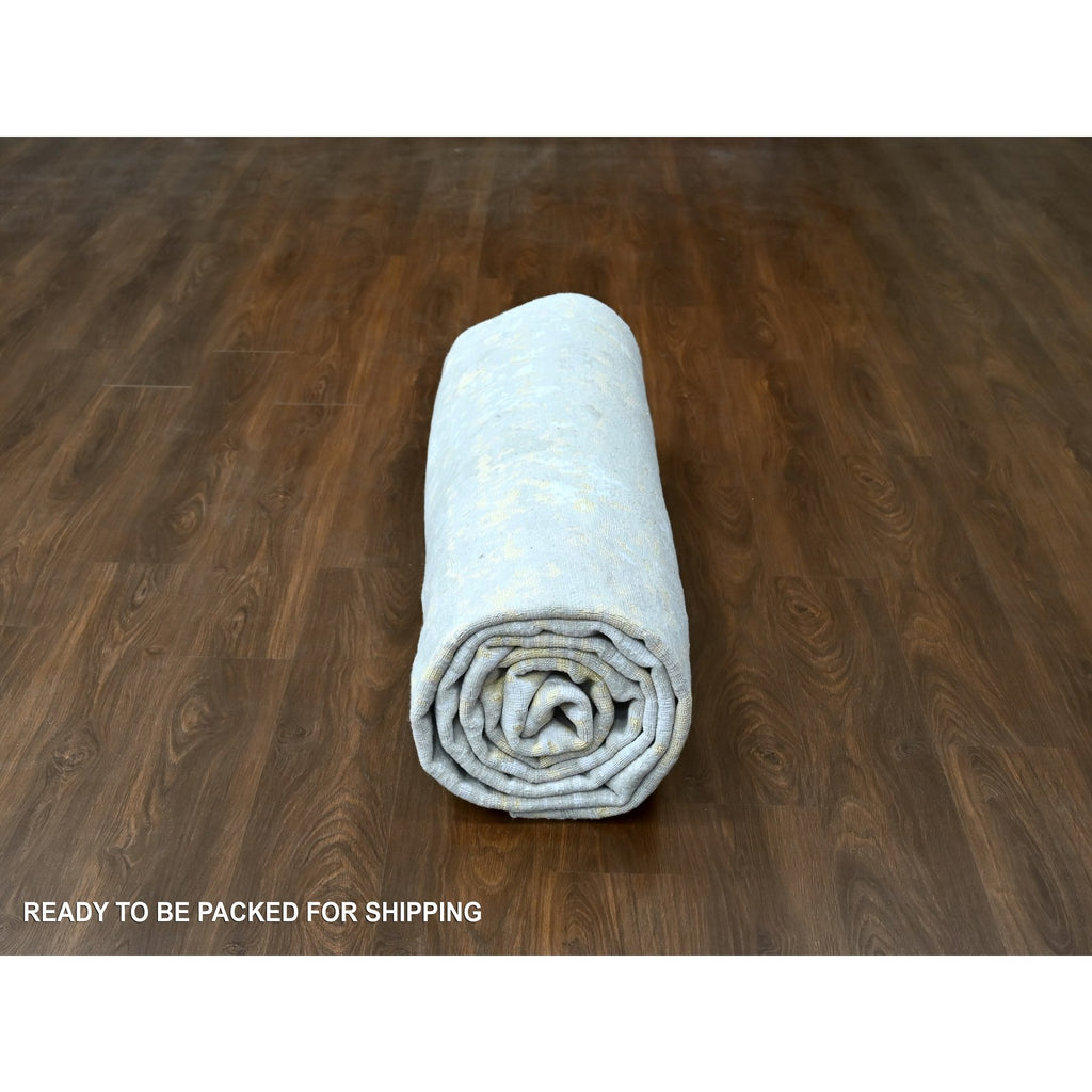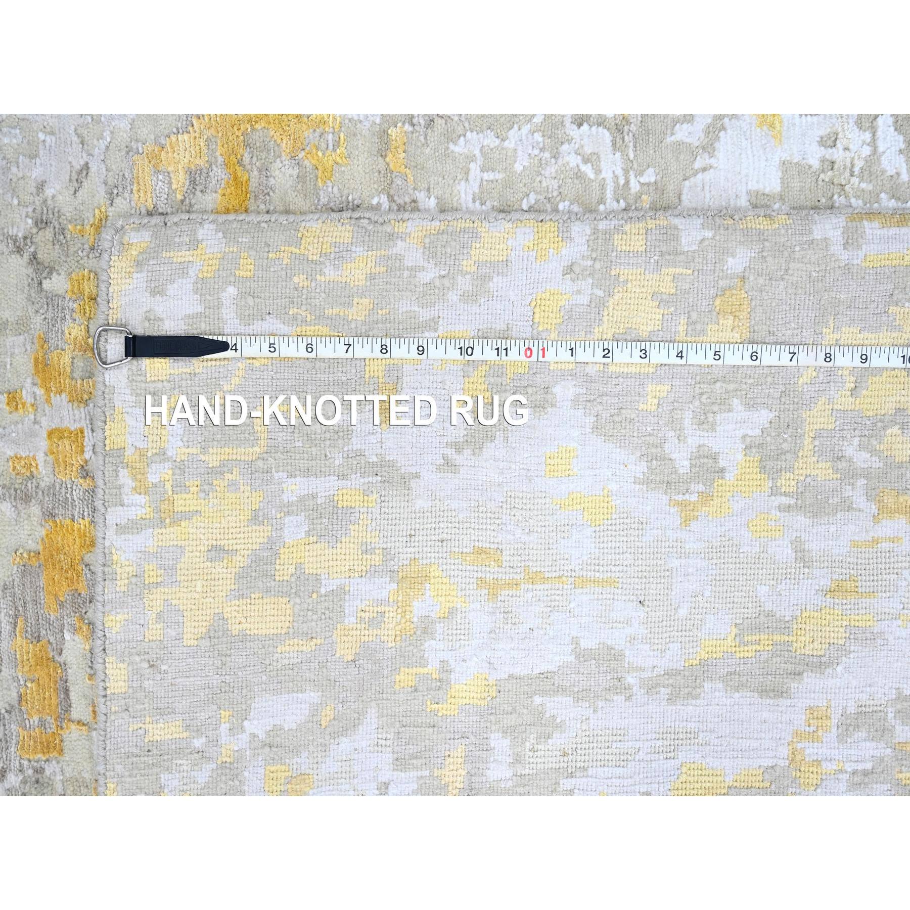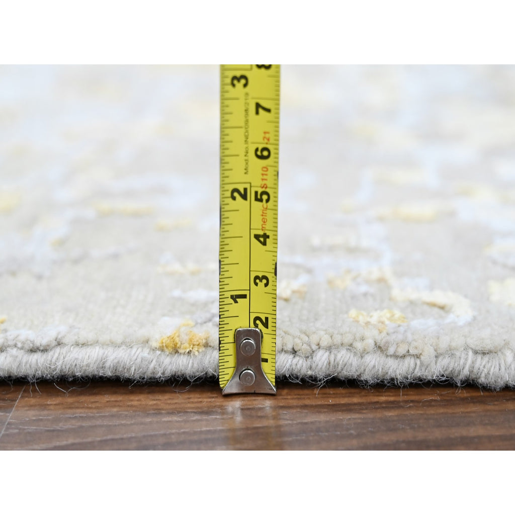10'x13'10" Beige With Gold, Abstract Design, Wool And Silk, Densely Woven, Hi-low Pile, Hand Knotted, Oriental Rug FWR61188
