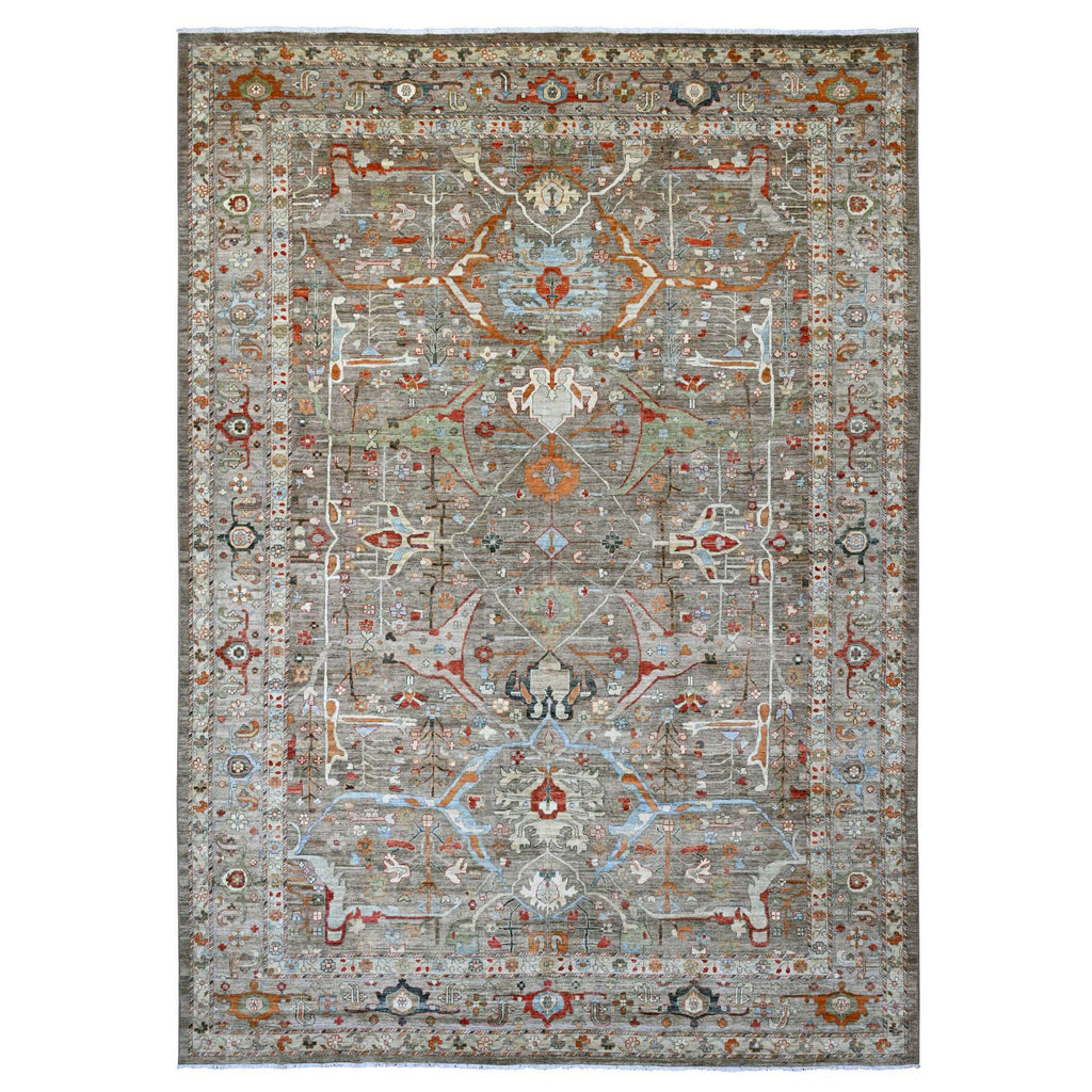 10'x13'10" Cedar Brown, Peshawar Aryana With Bijar Garus Design, Colorful Pattern, Hand Knotted, Vegetable Dyes, Densely Woven, 100% Wool, Oriental Rug FWR120504