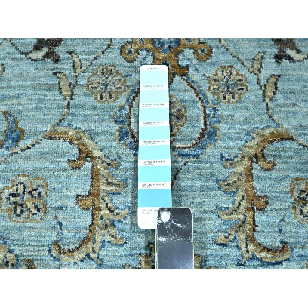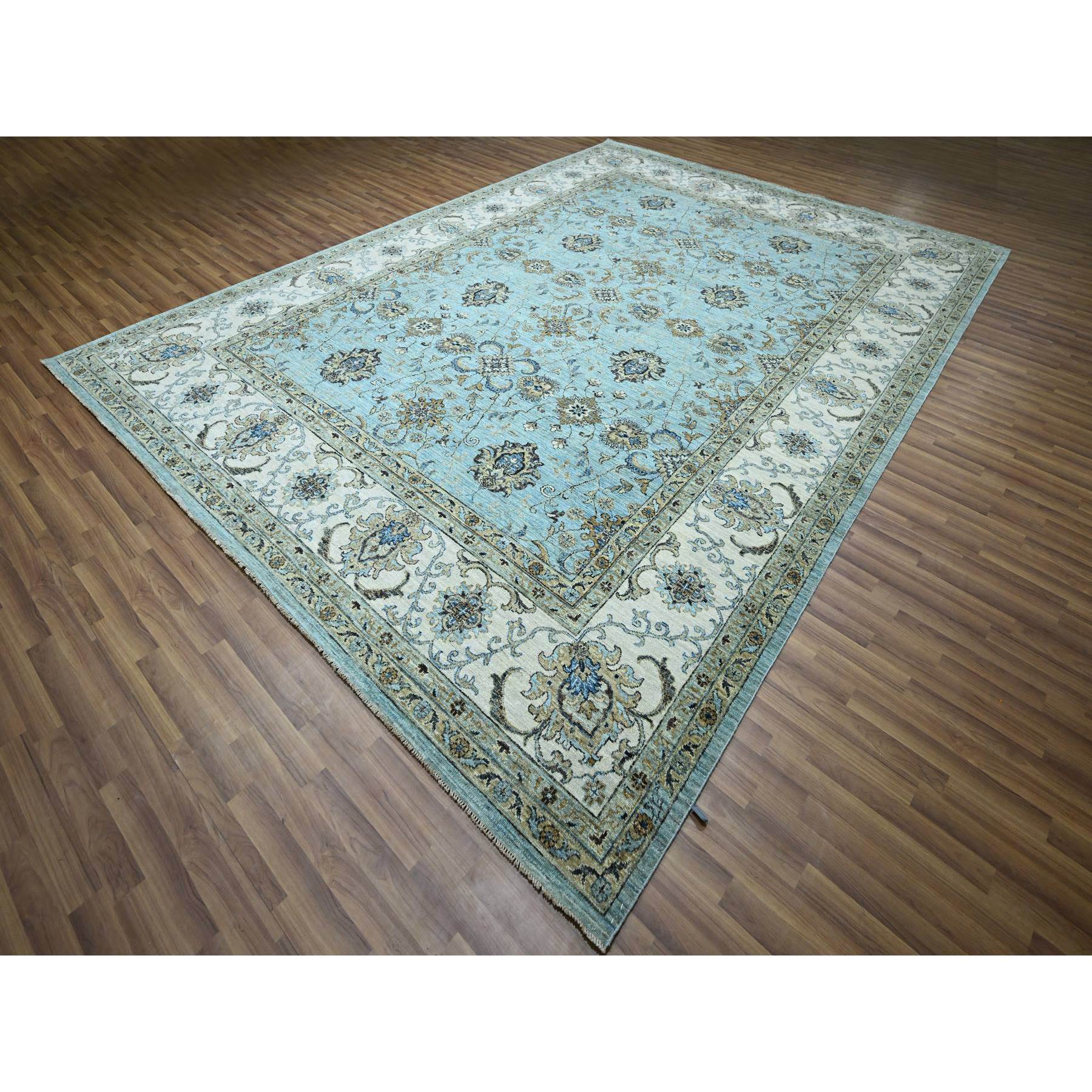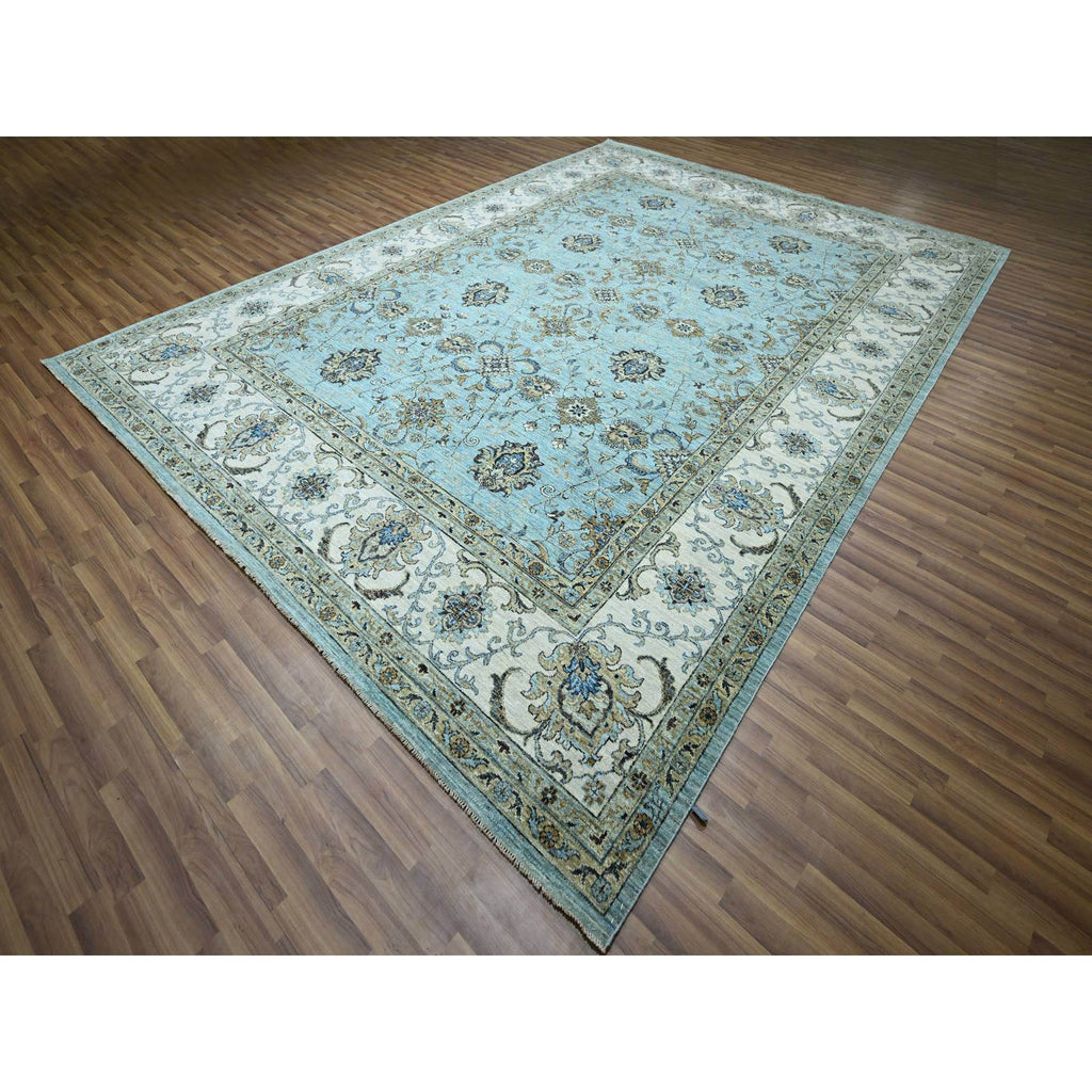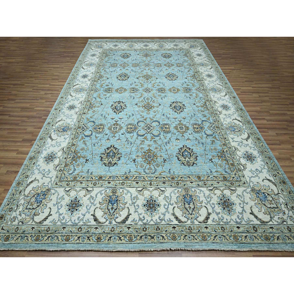 10'x13'10" Cerulean Blue, Hand Knotted, Agra, Shah Abbas Flower Vines Design, Natural Wool, Veggie Dyes, Denser Weave, Oriental Rug FWR456648