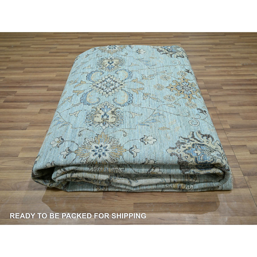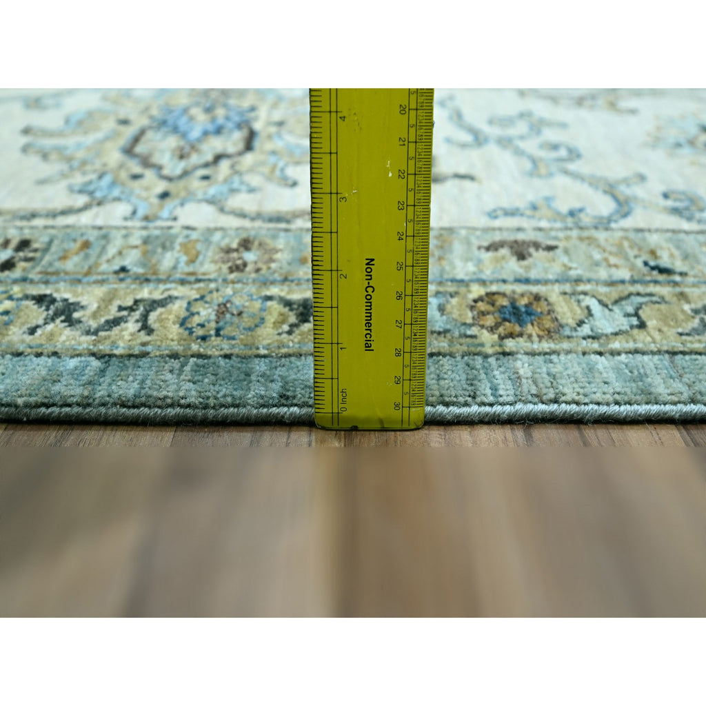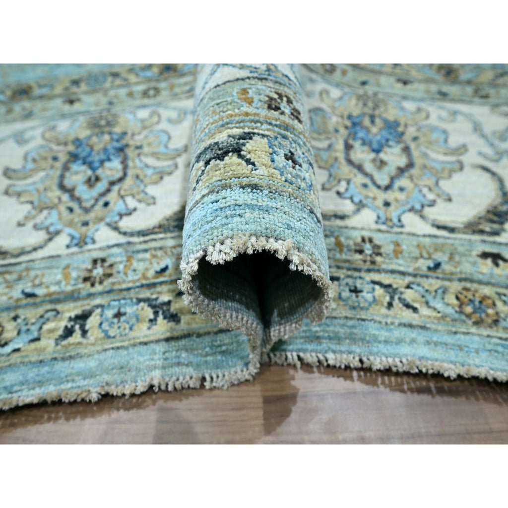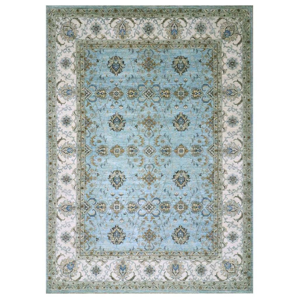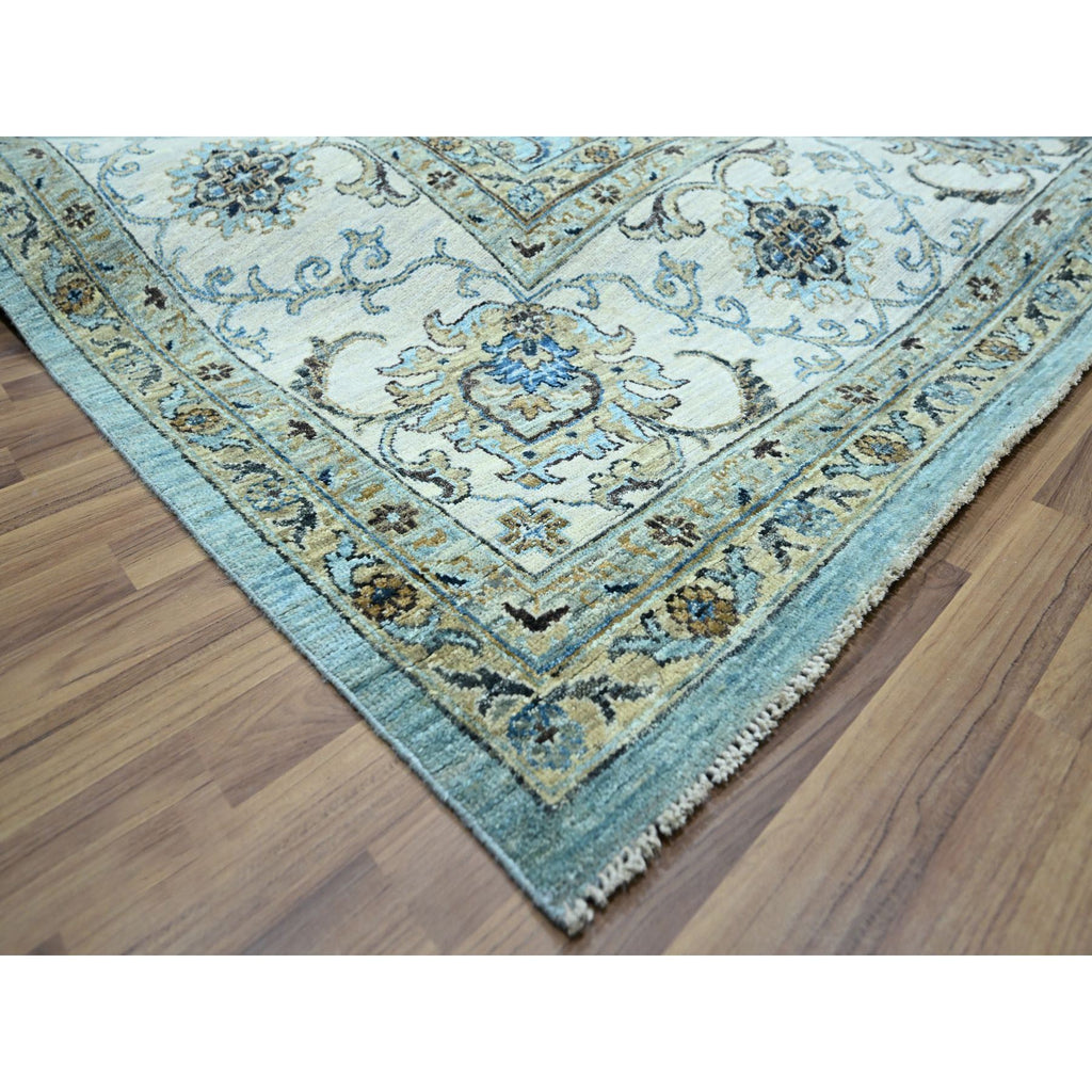 10'x13'10" Cerulean Blue, Hand Knotted, Agra, Shah Abbas Flower Vines Design, Natural Wool, Veggie Dyes, Denser Weave, Oriental Rug FWR456648