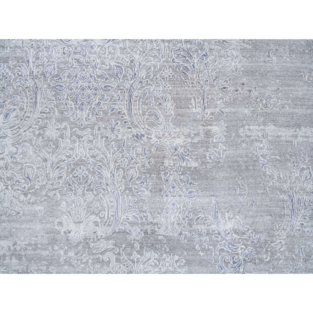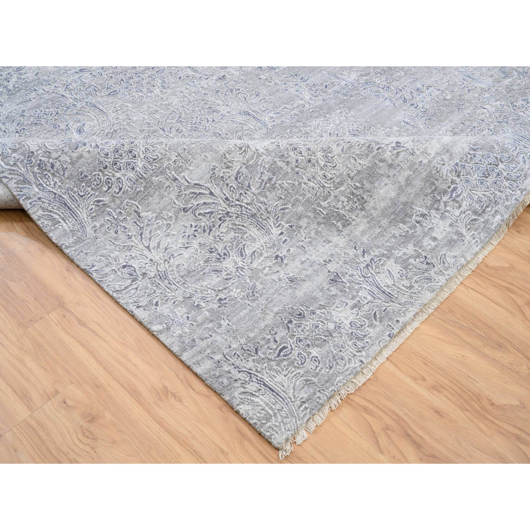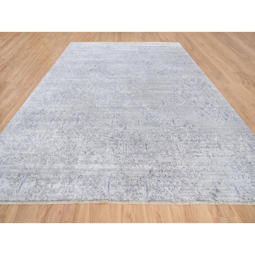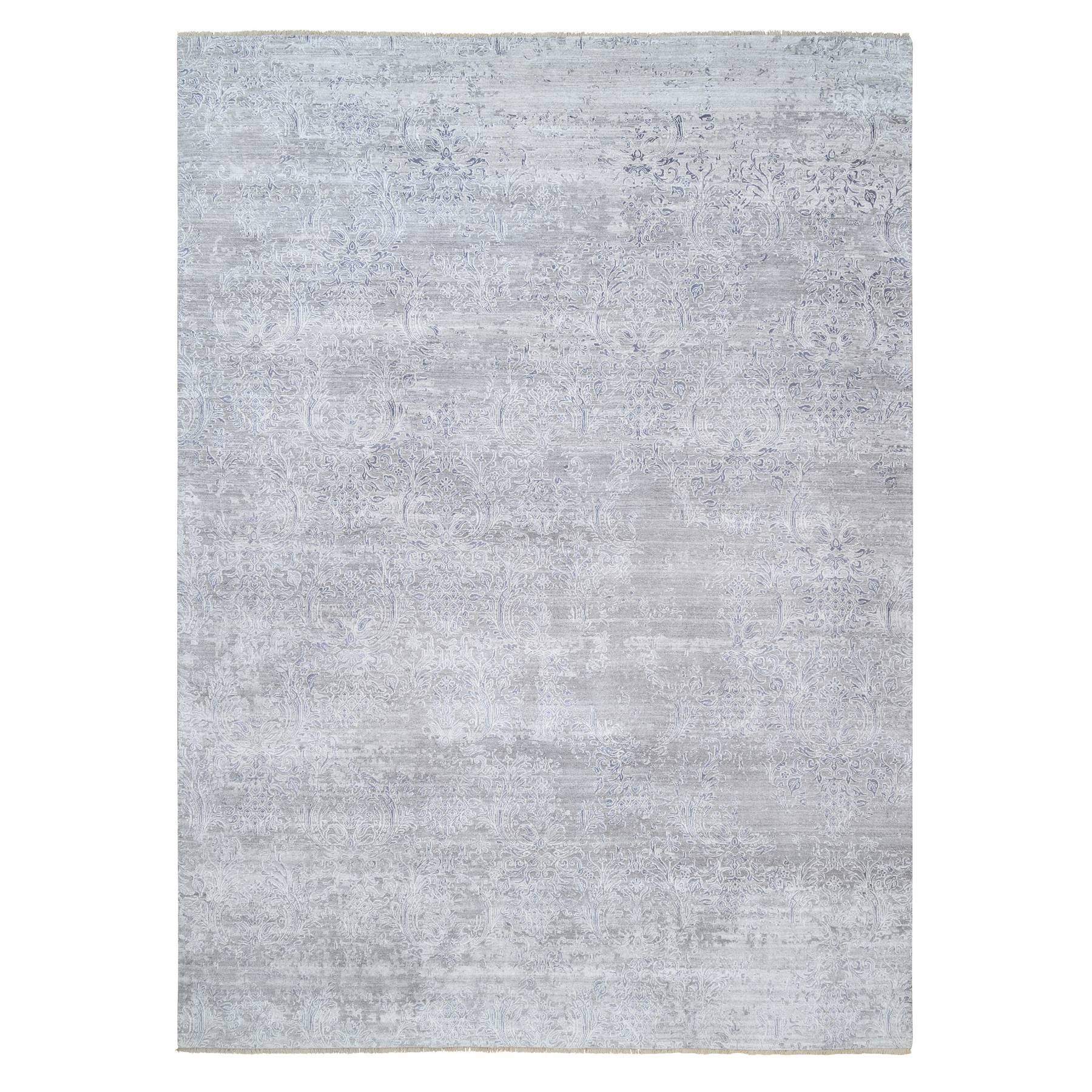 10'x13'10" Ivory, Hand Knotted Damask Design, Tone On Tone Wool And Plant Based Silk, Oriental Rug FWR384510