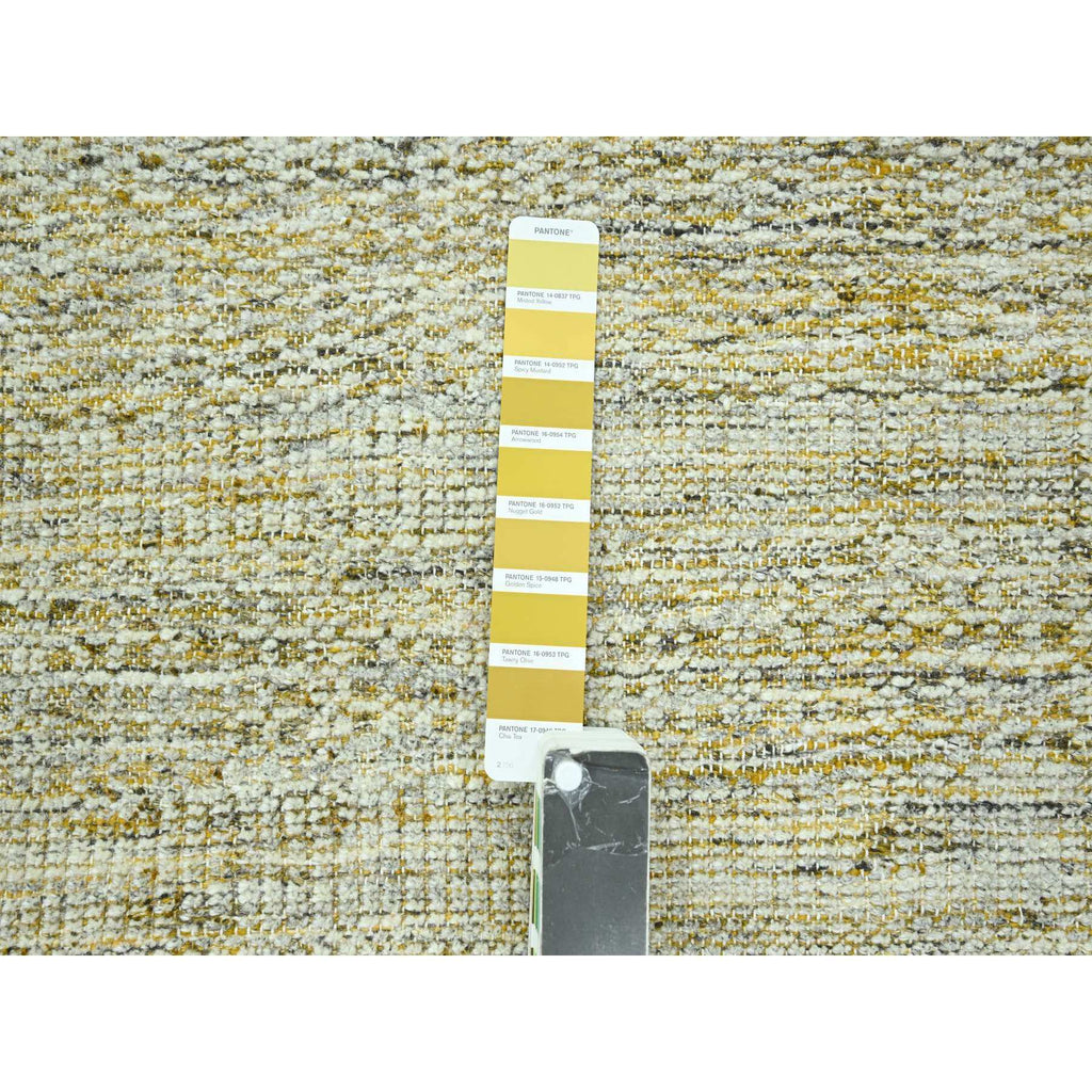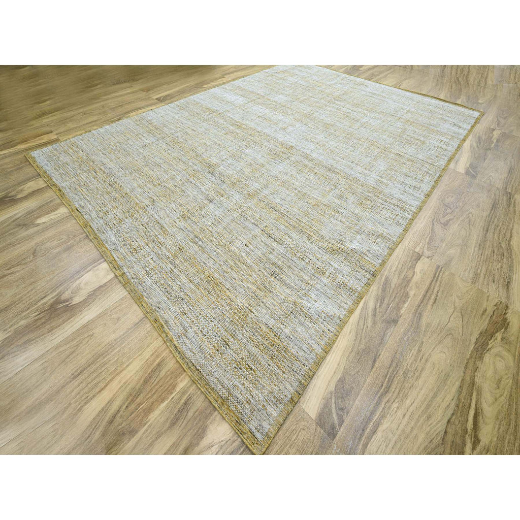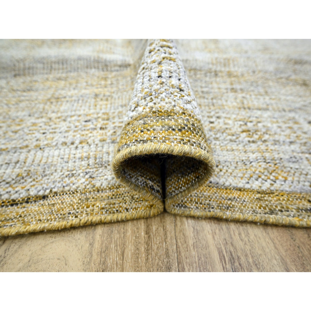 10'x13'10" Mustard Yellow, Oxidized And Distressed Grass Design With Exposed Warps, Hand Knotted, Pure Wool, Oriental Rug FWR457740