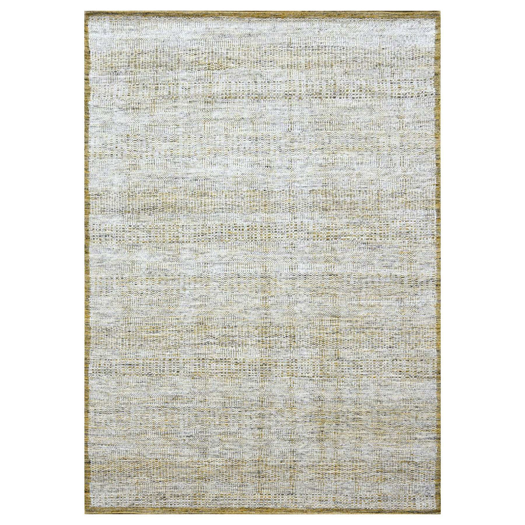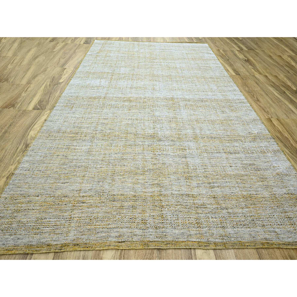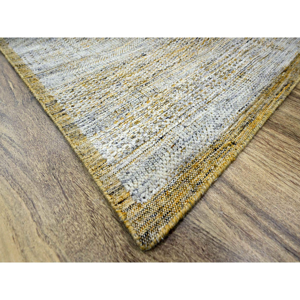10'x13'10" Mustard Yellow, Oxidized And Distressed Grass Design With Exposed Warps, Hand Knotted, Pure Wool, Oriental Rug FWR457740