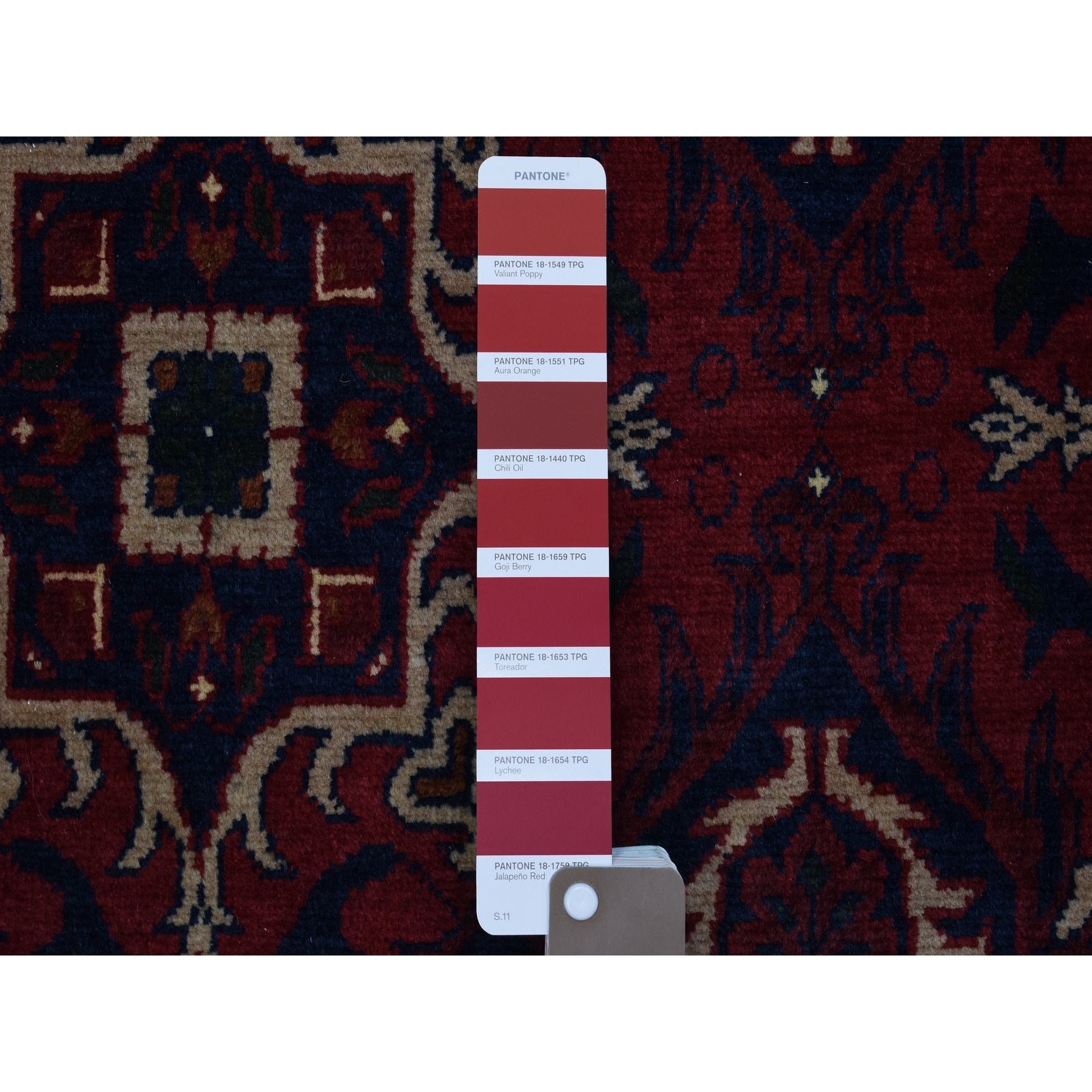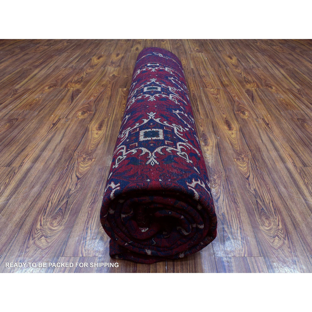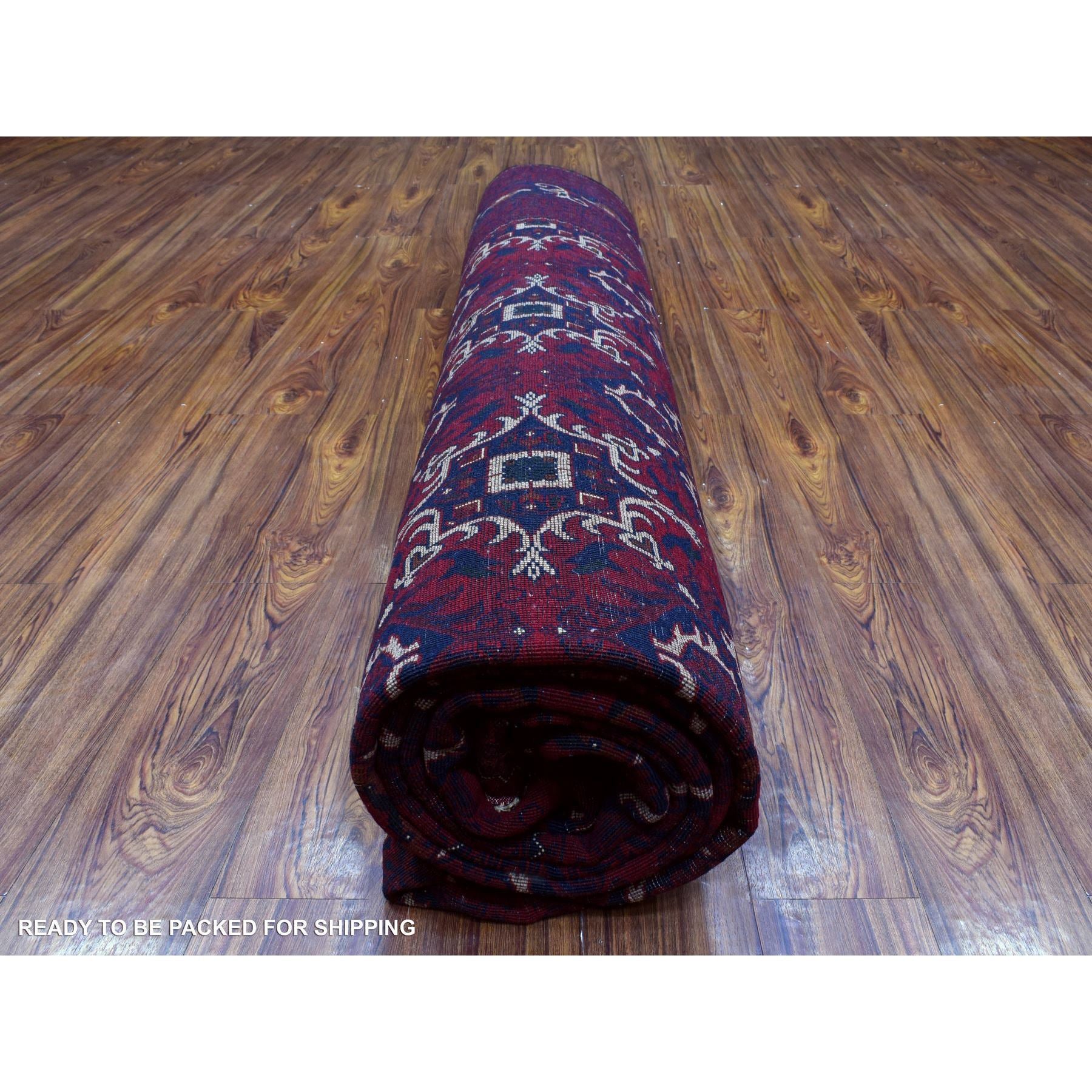 10'x13'8" Deep And Saturated Red, Natural Dyes Afghan Khamyab Velvety Wool, Geometric Design Hand Knotted Oriental Rug FWR435972