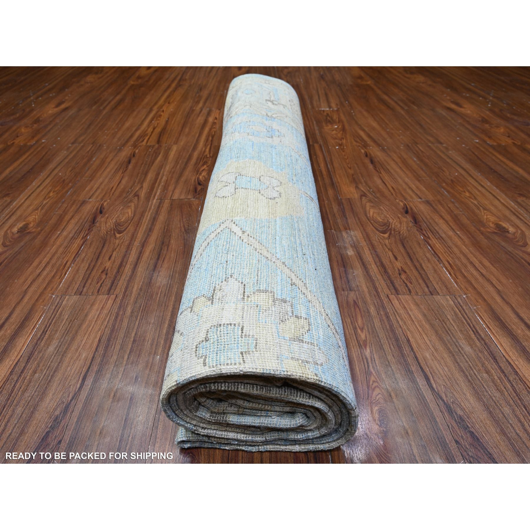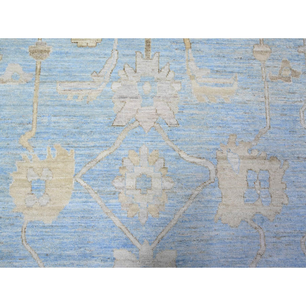 10'x13'8" Maya Blue, Afghan Angora Oushak All Over Floral Design, Hand Knotted 100% Wool Natural Dyes, Oriental Rug FWR529092