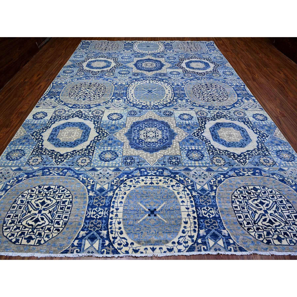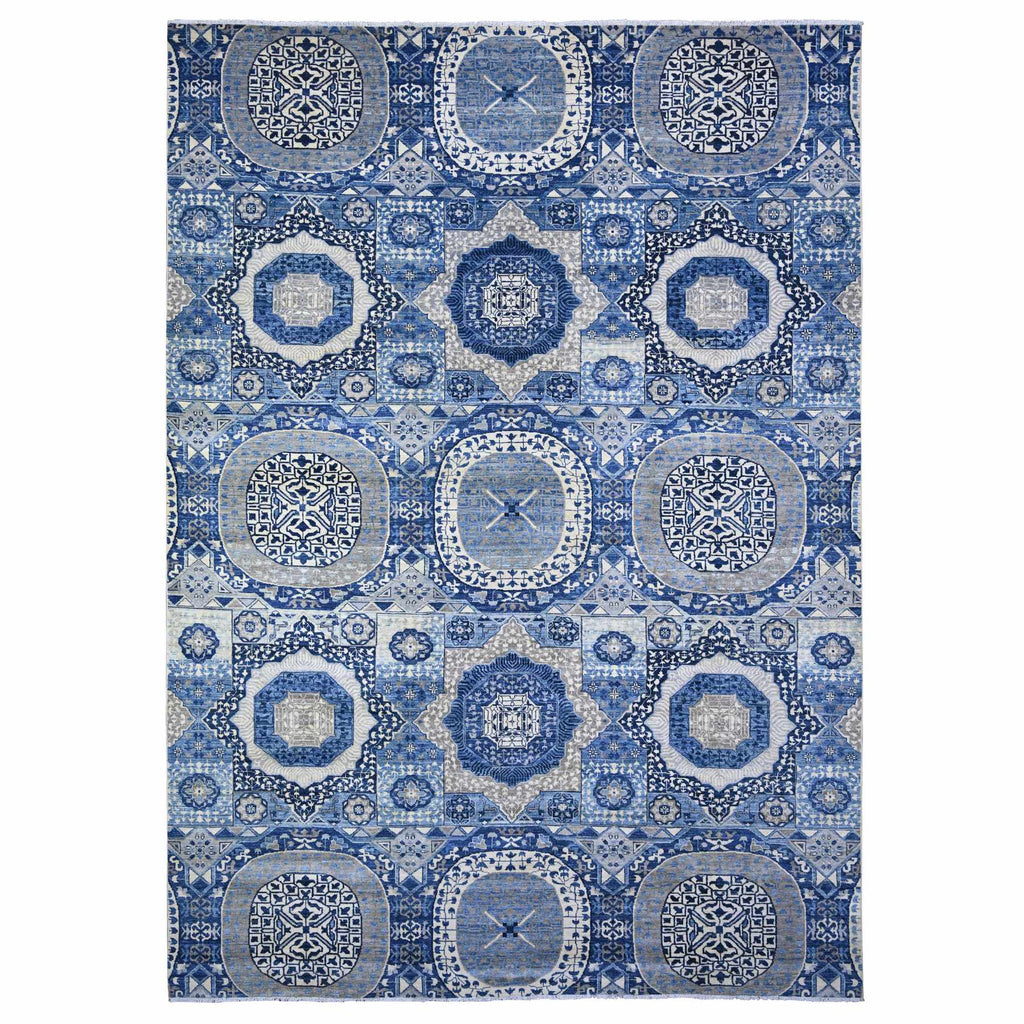 10'x13'8" Sapphire Blue, Dense Weave Vegetable Dyes, Soft Wool Hand Knotted, Fine Aryana With Mamluk Borderless Design, Oriental Rug FWR529254