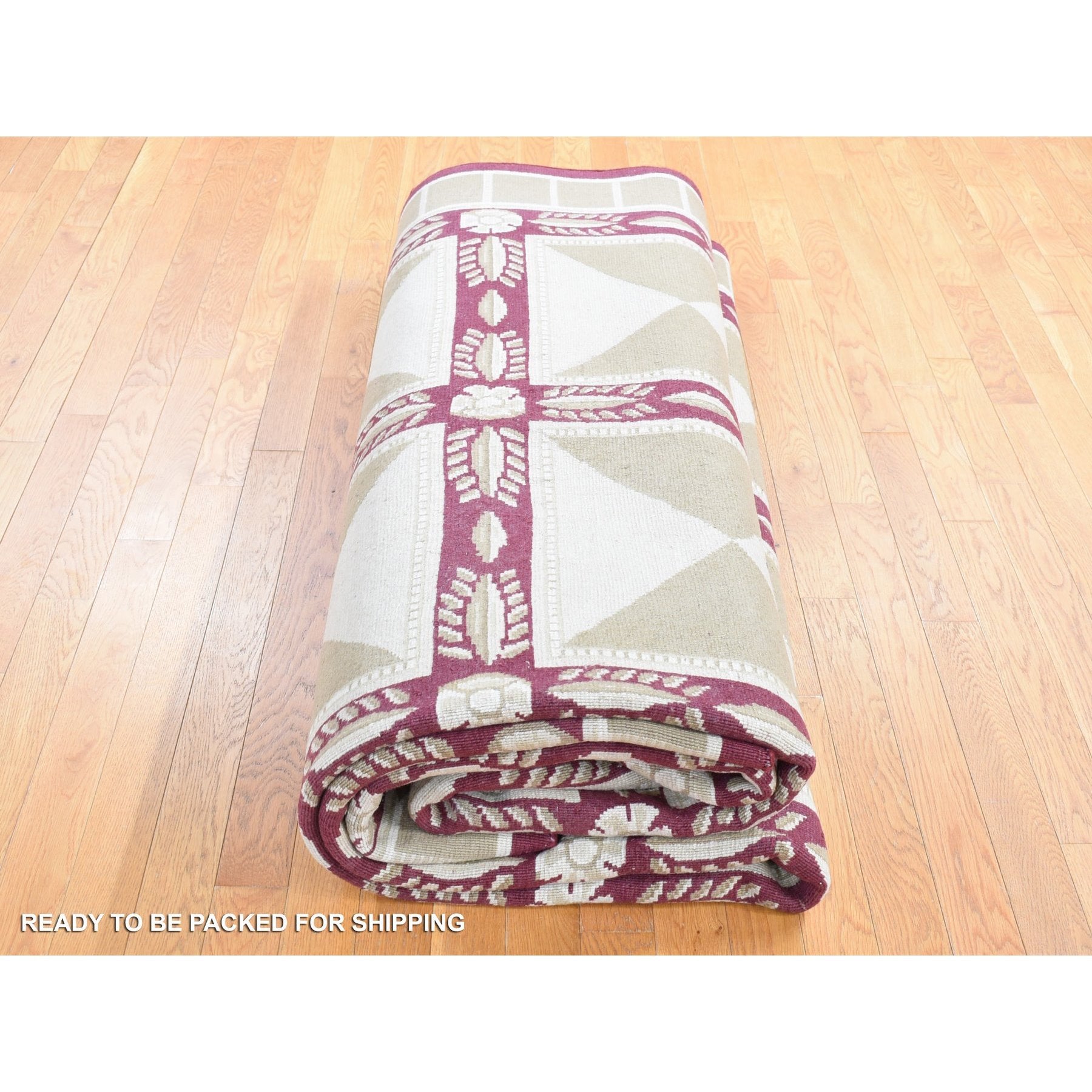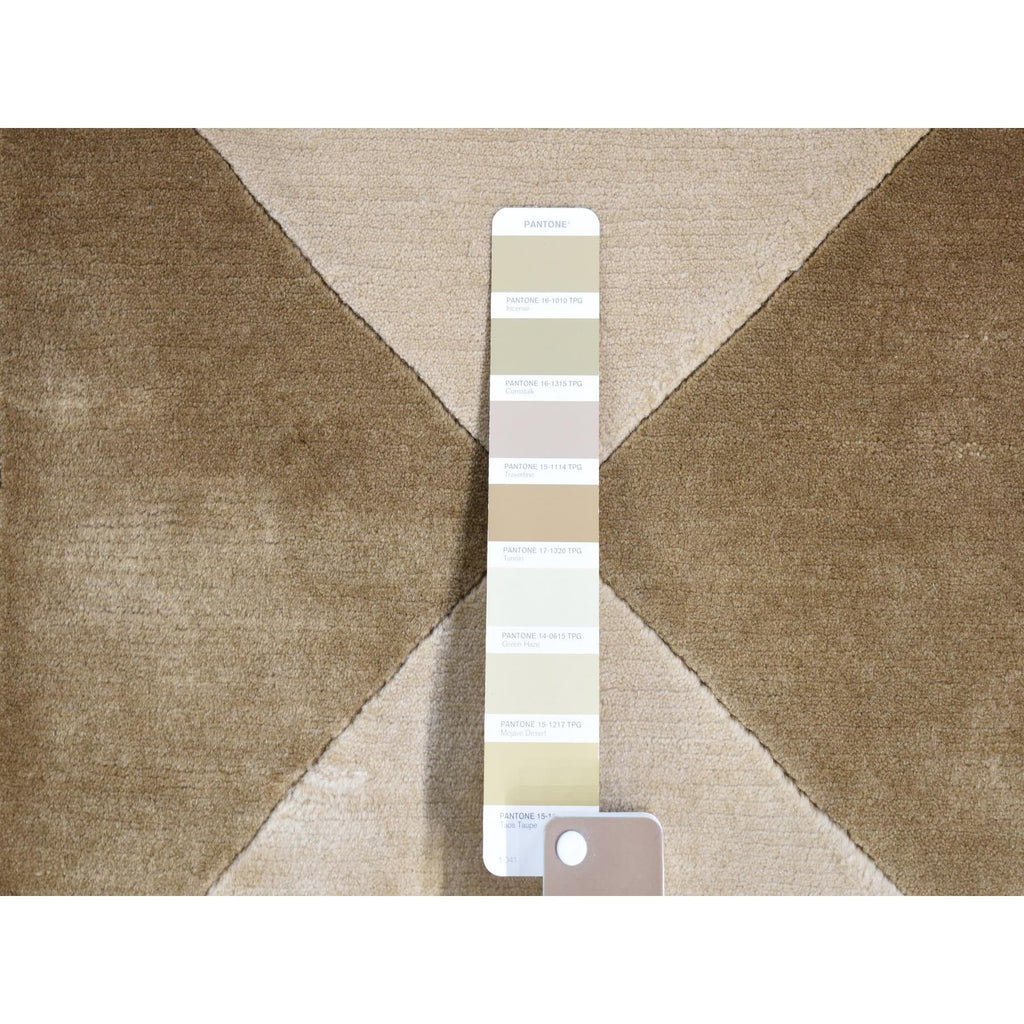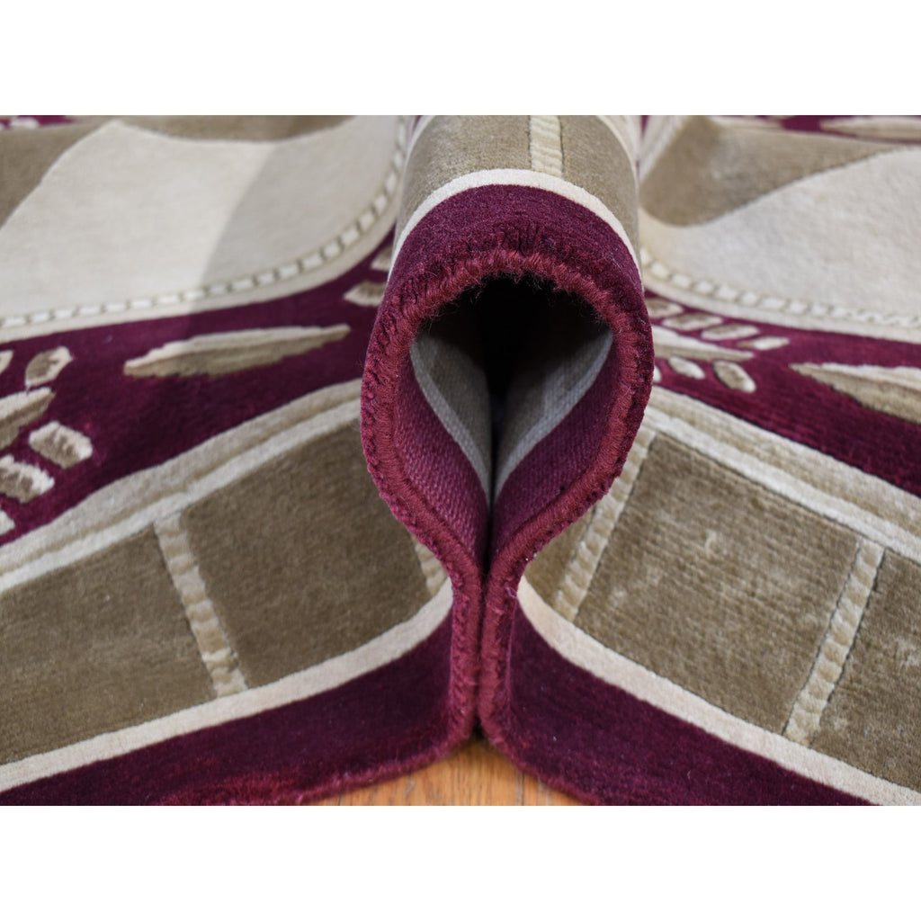 10'x13'9" Ivory, Hand Knotted, Modern Nepali Neo Classic Block Design, Pure Wool, Oriental Rug FWR484032