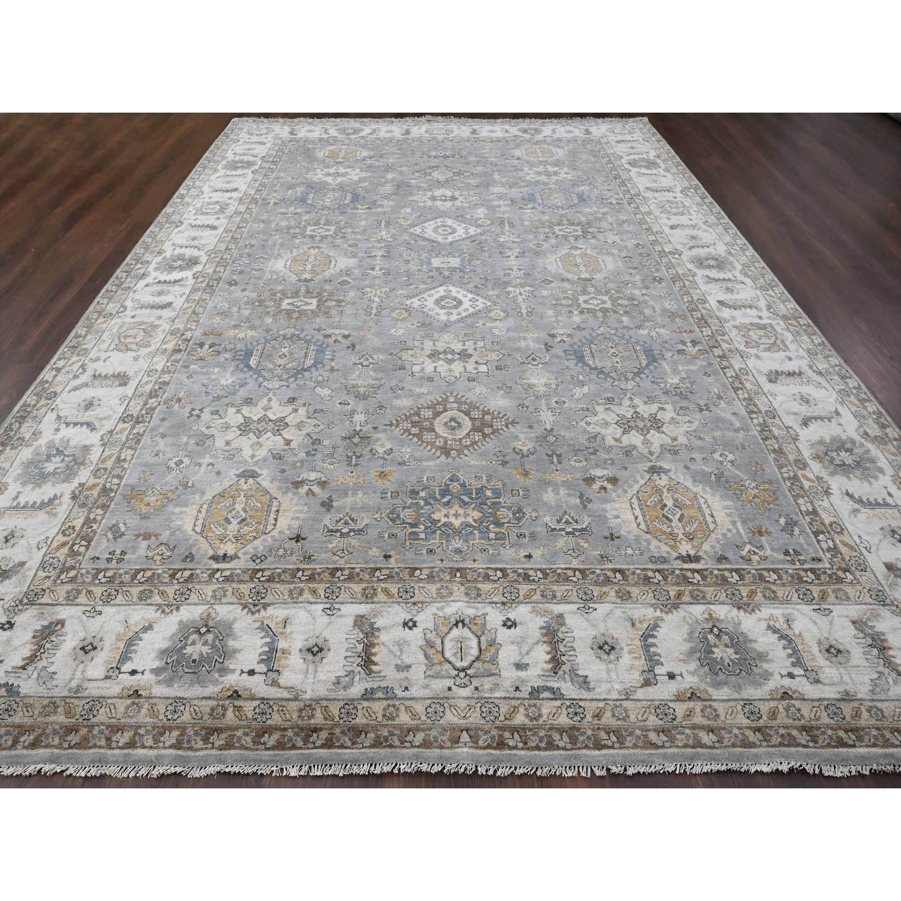 10'x13'9" Rainer Gray And Heron White, Karajeh All Over Geometric Design, Hand Knotted, Natural Dyes, 100% Wool, Oriental Rug FWR509082