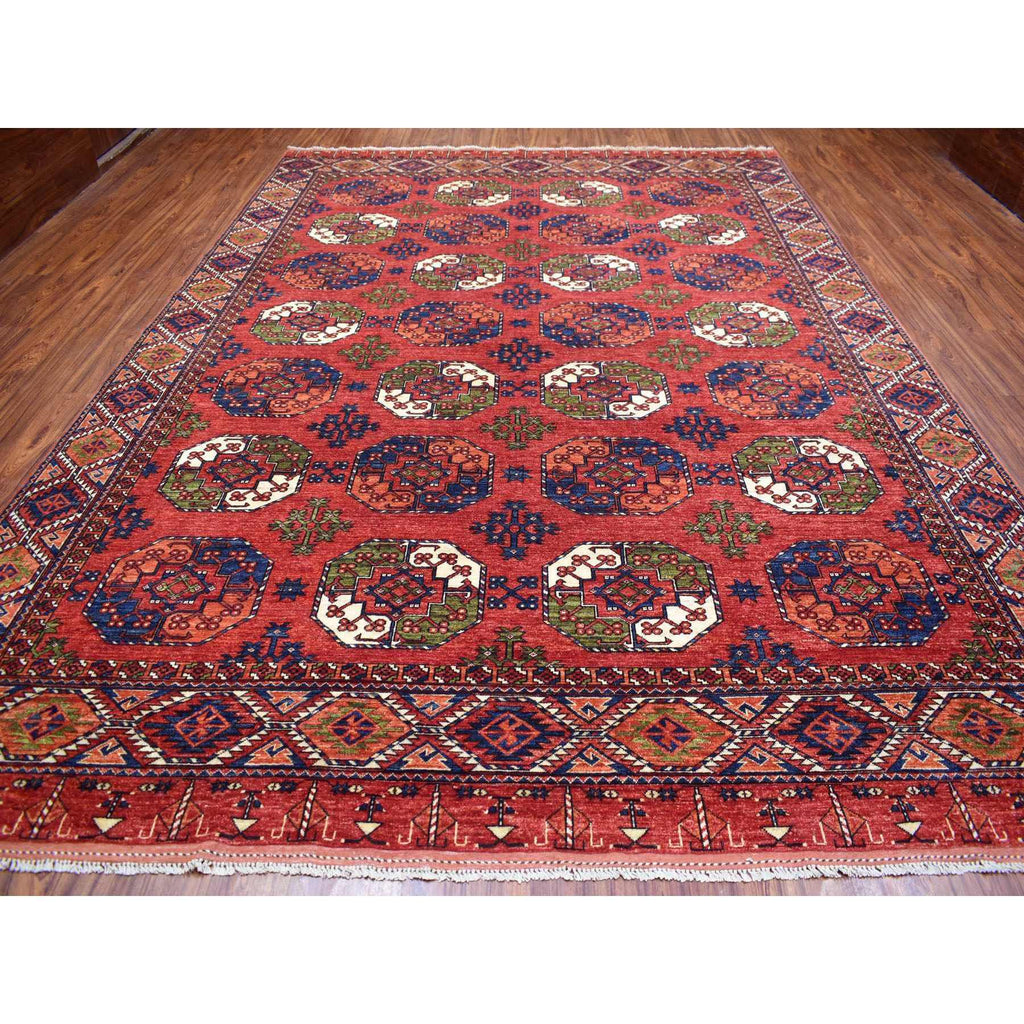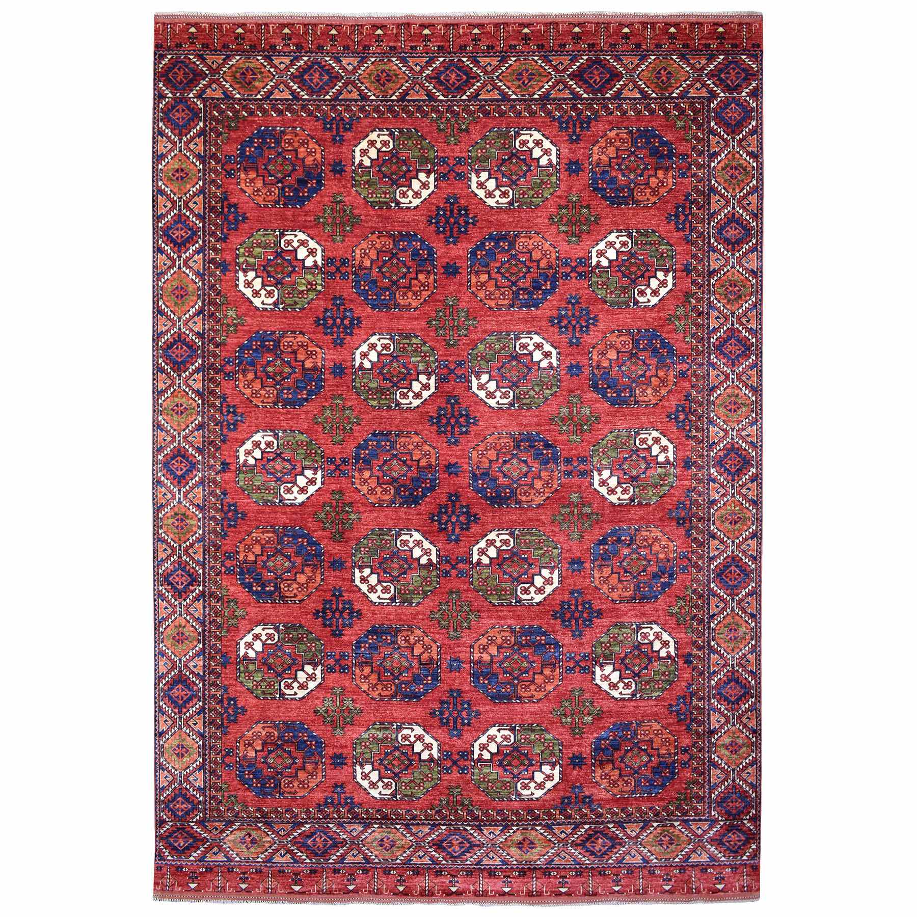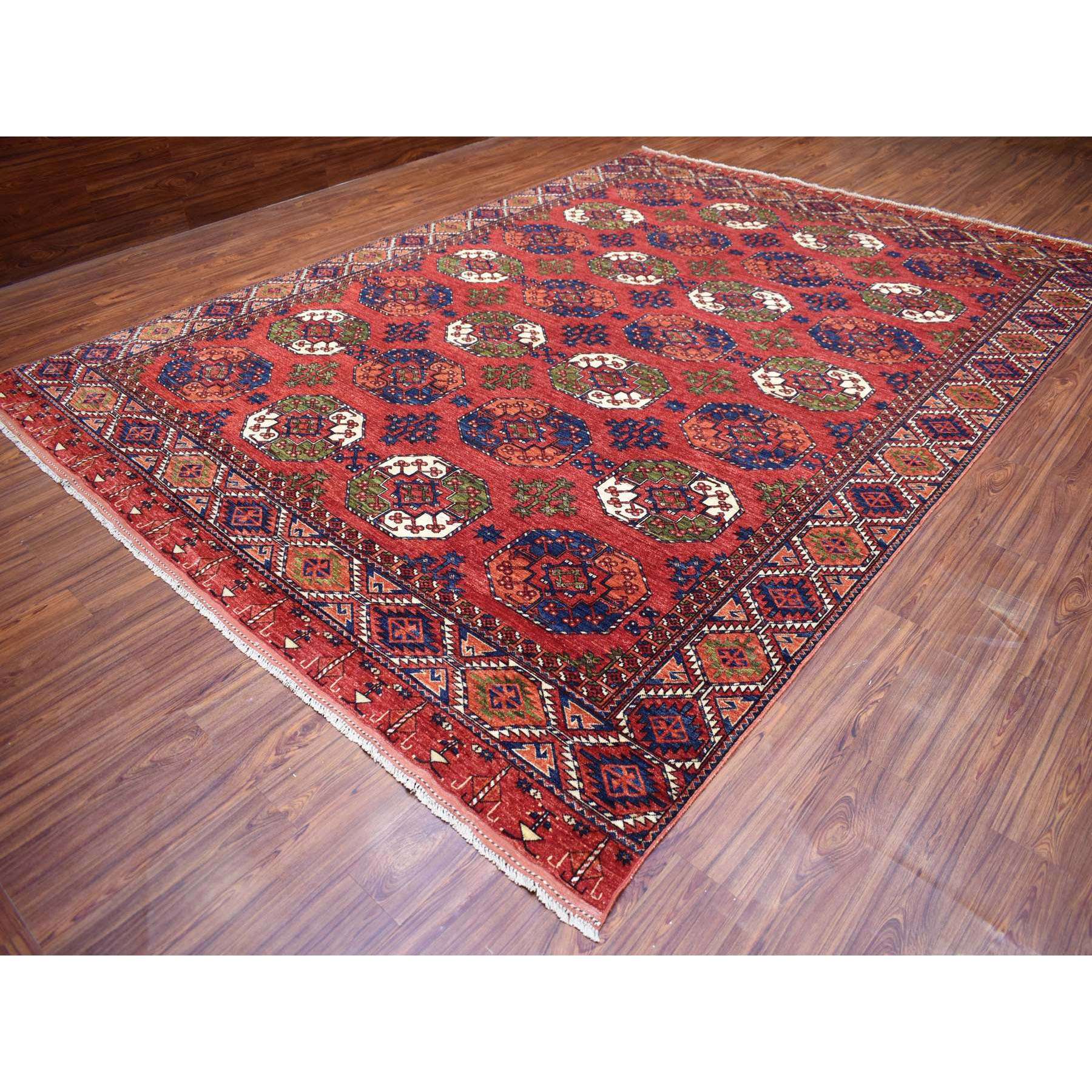 10'x13'9" Soft Wool Hand Knotted Coral Red Afghan Ersari With Geometric Elephant Feet Design Oriental Rug FWR417186