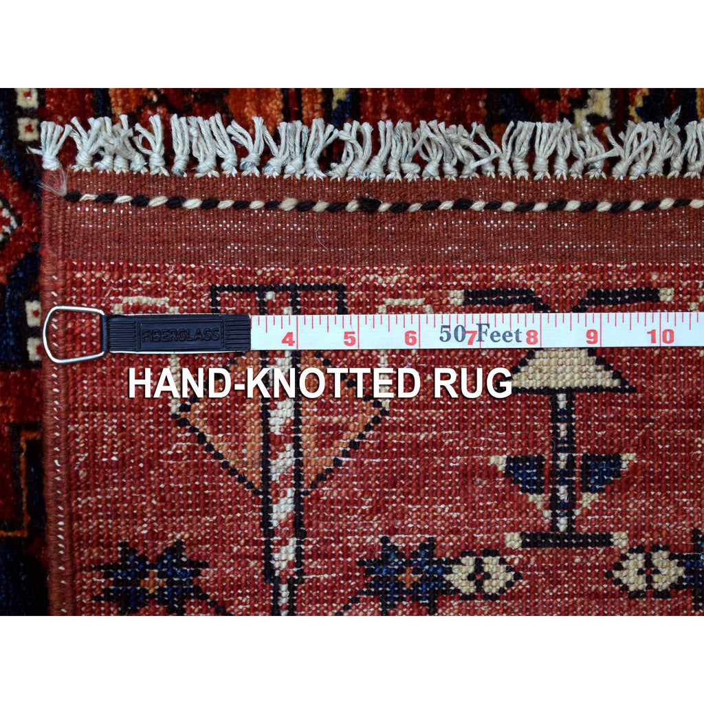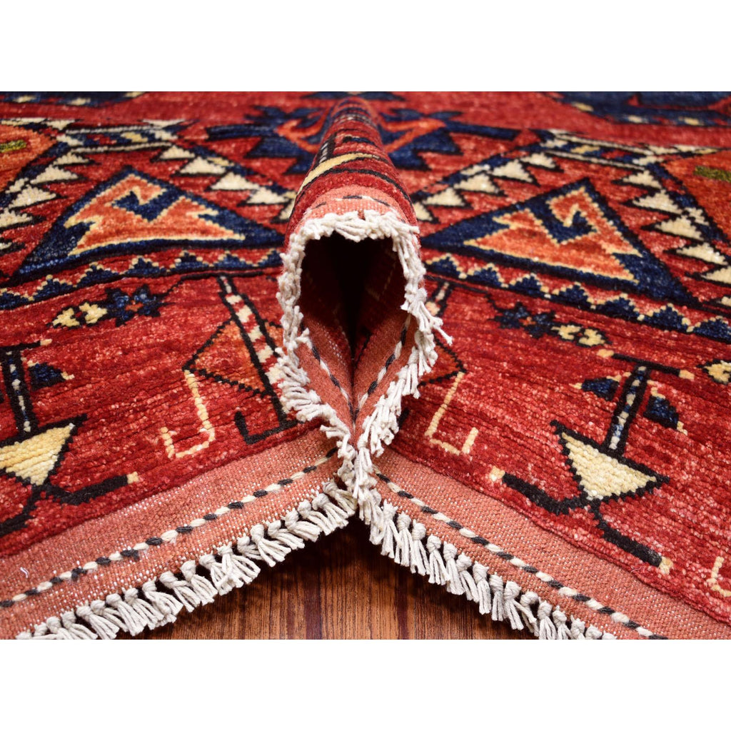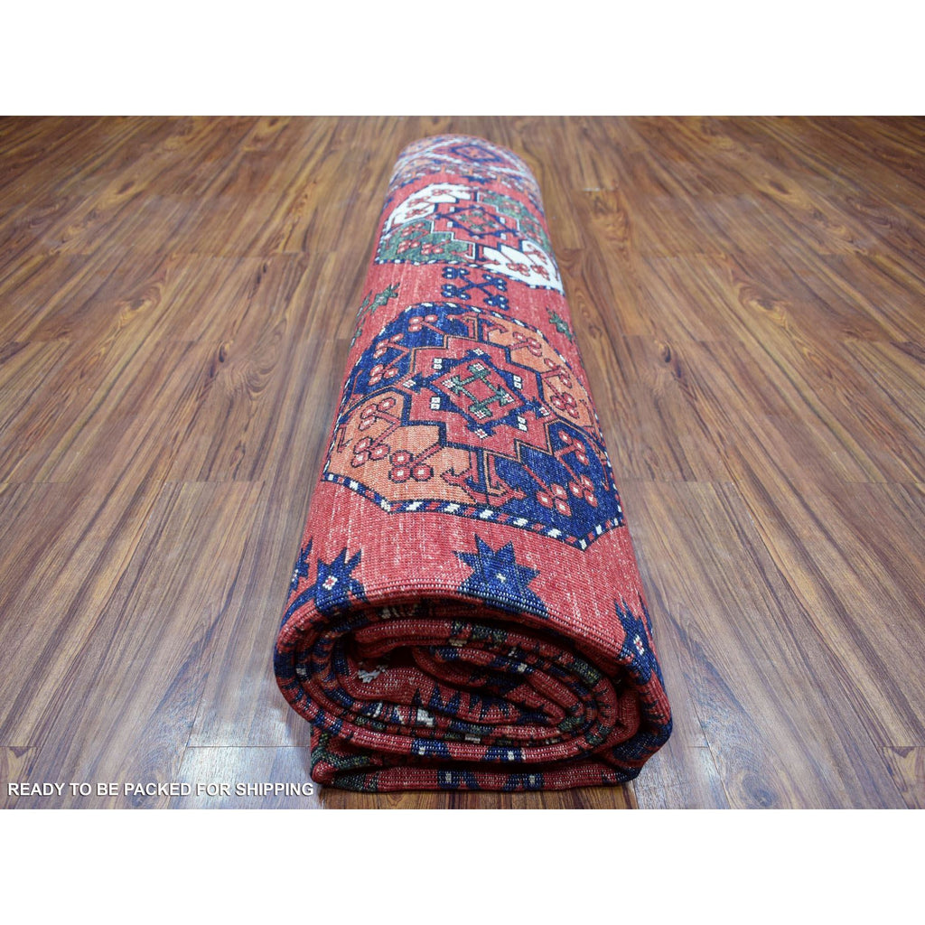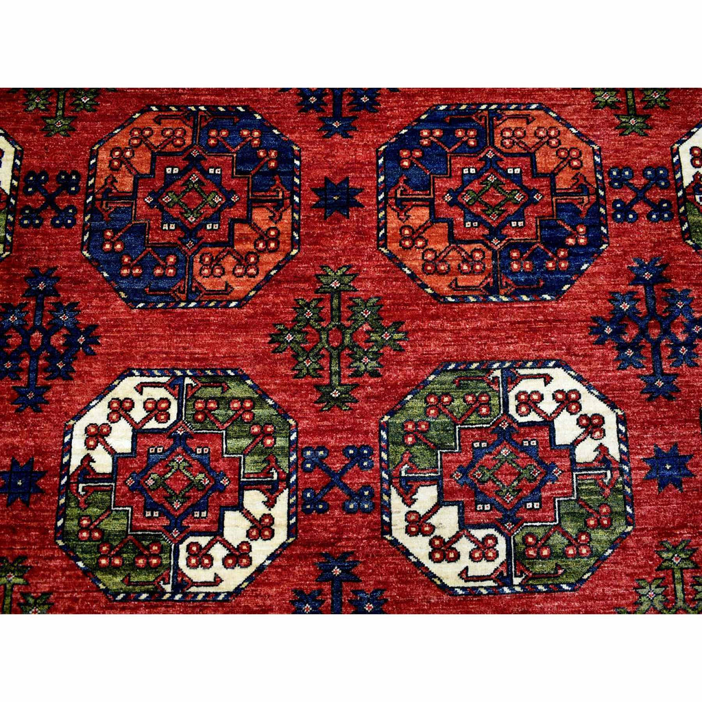 10'x13'9" Soft Wool Hand Knotted Coral Red Afghan Ersari With Geometric Elephant Feet Design Oriental Rug FWR417186