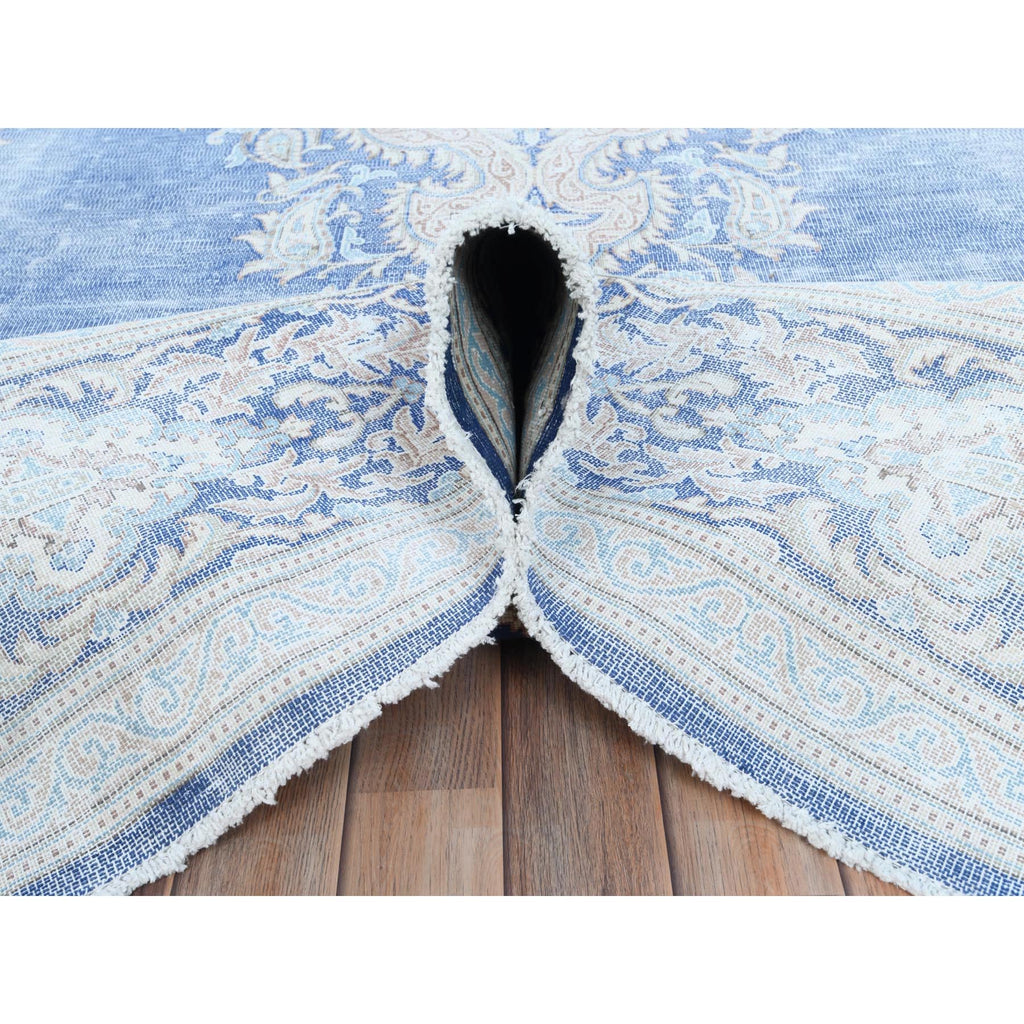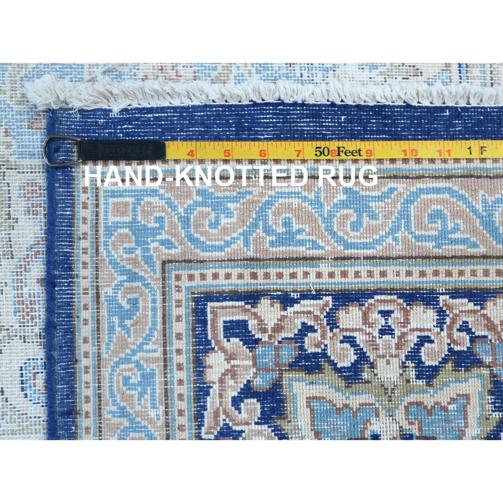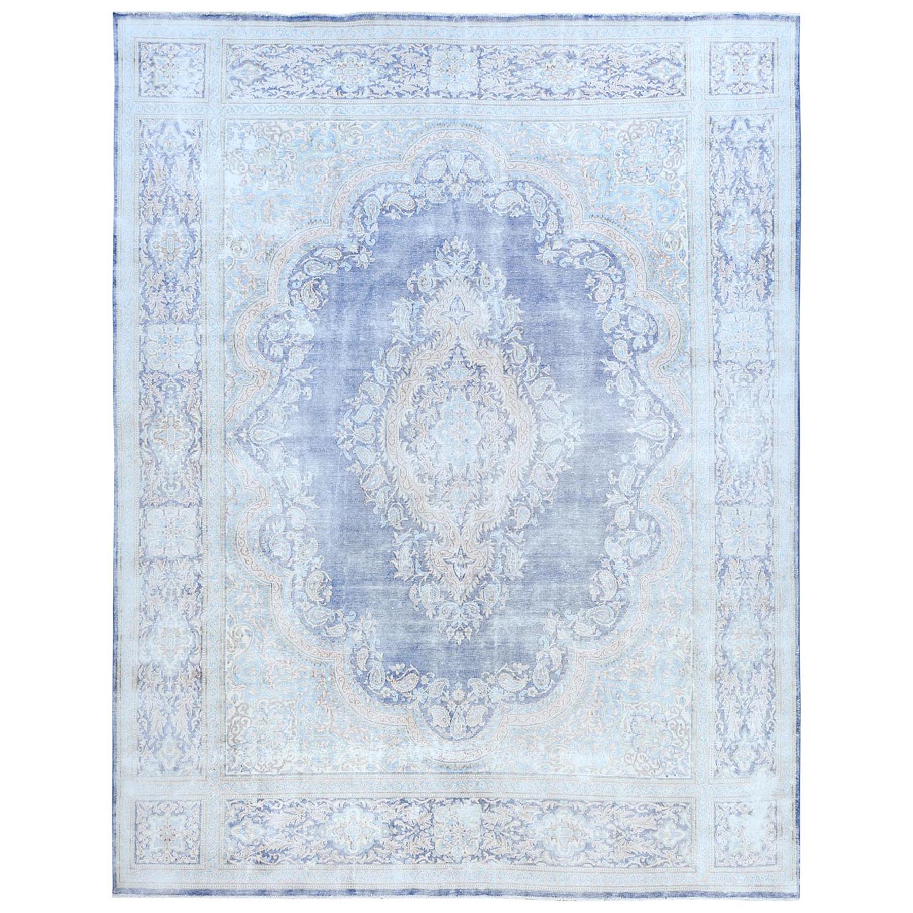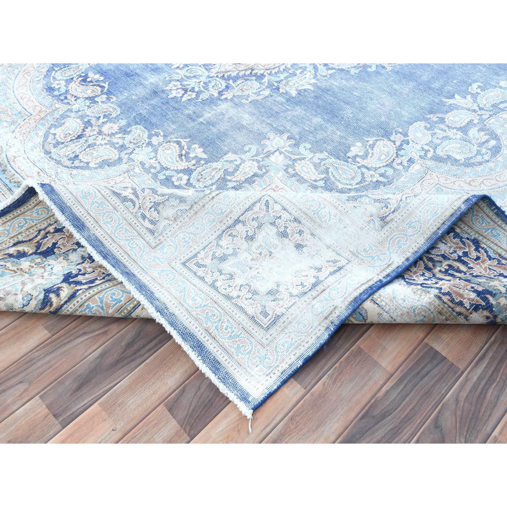 10'x13' Denim Blue Vintage Persian Kerman Hand Knotted Sheared Low Worn Wool Distressed Look Oriental Rug FWR487518