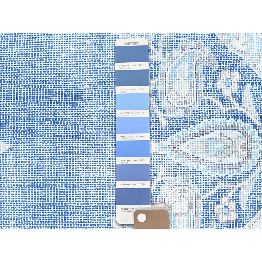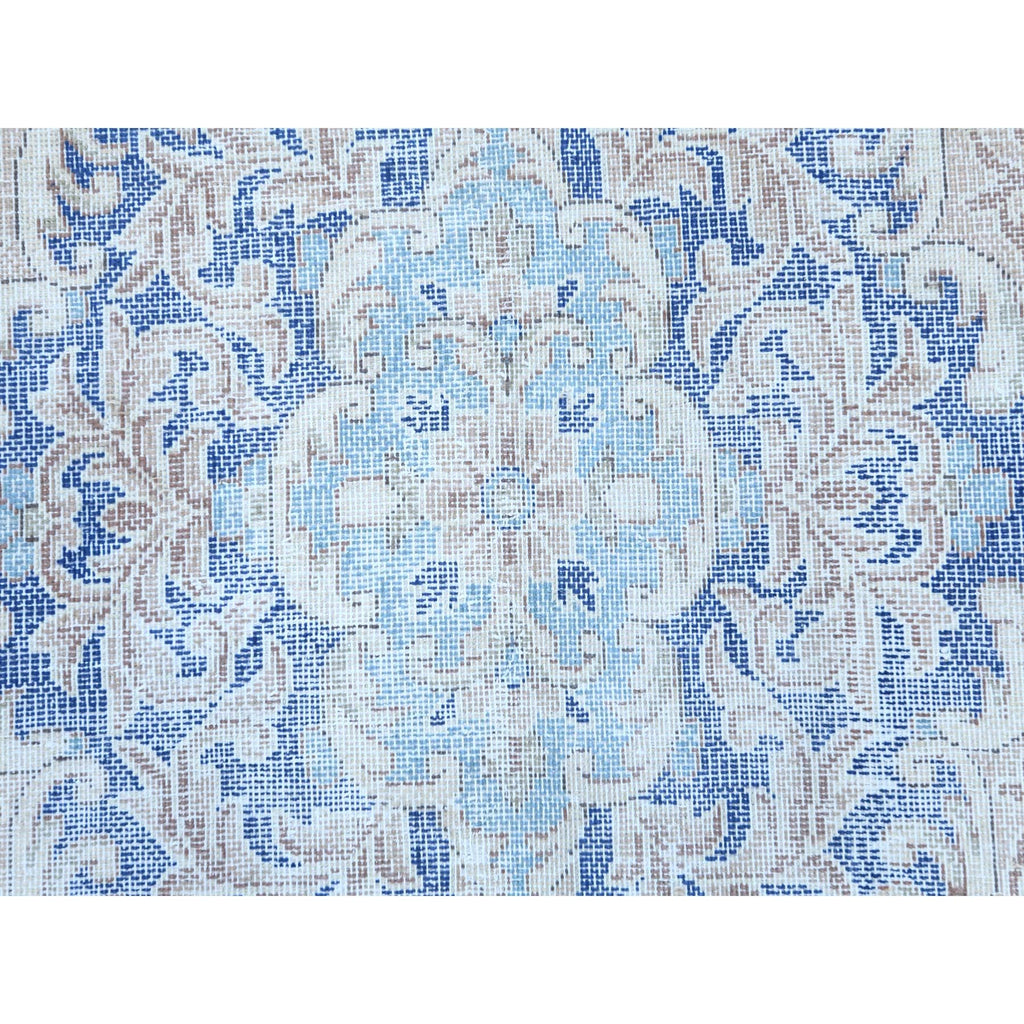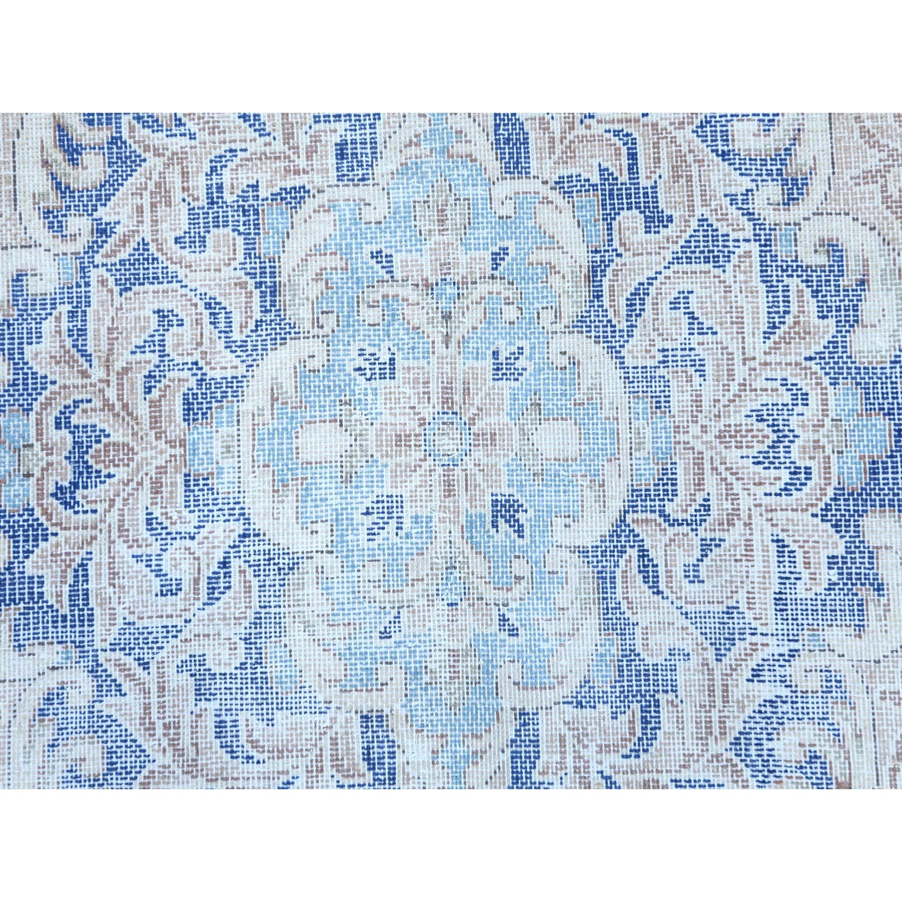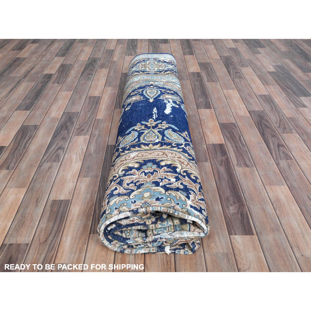 10'x13' Denim Blue Vintage Persian Kerman Hand Knotted Sheared Low Worn Wool Distressed Look Oriental Rug FWR487518