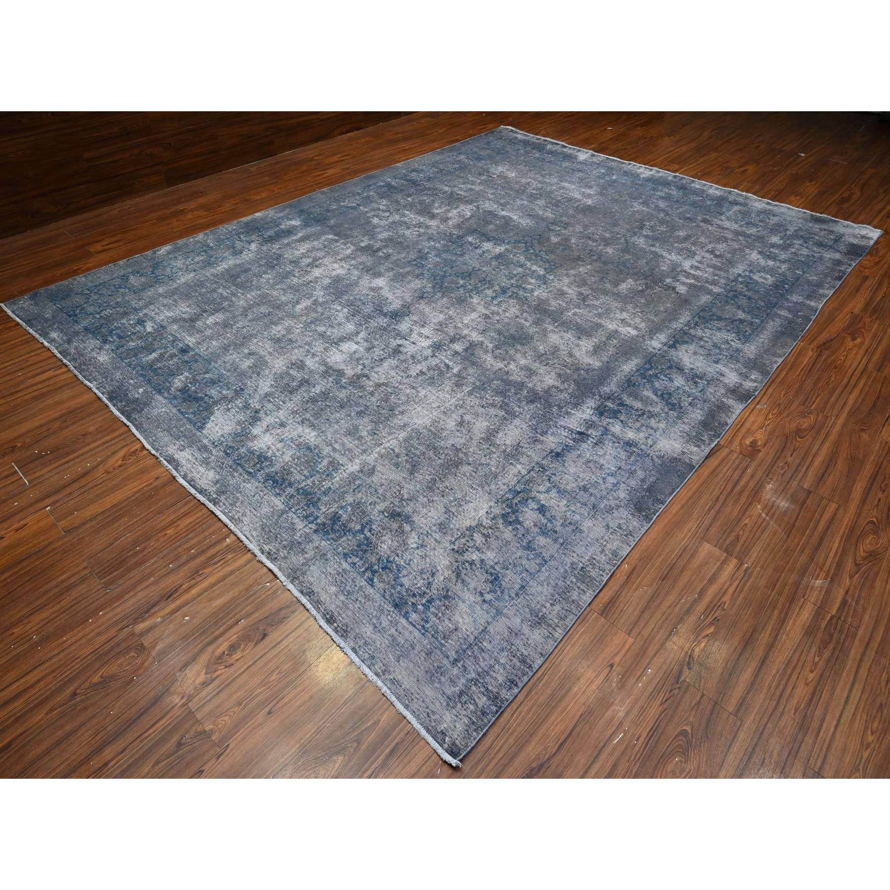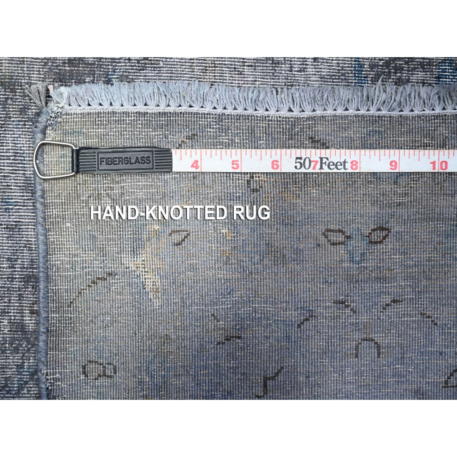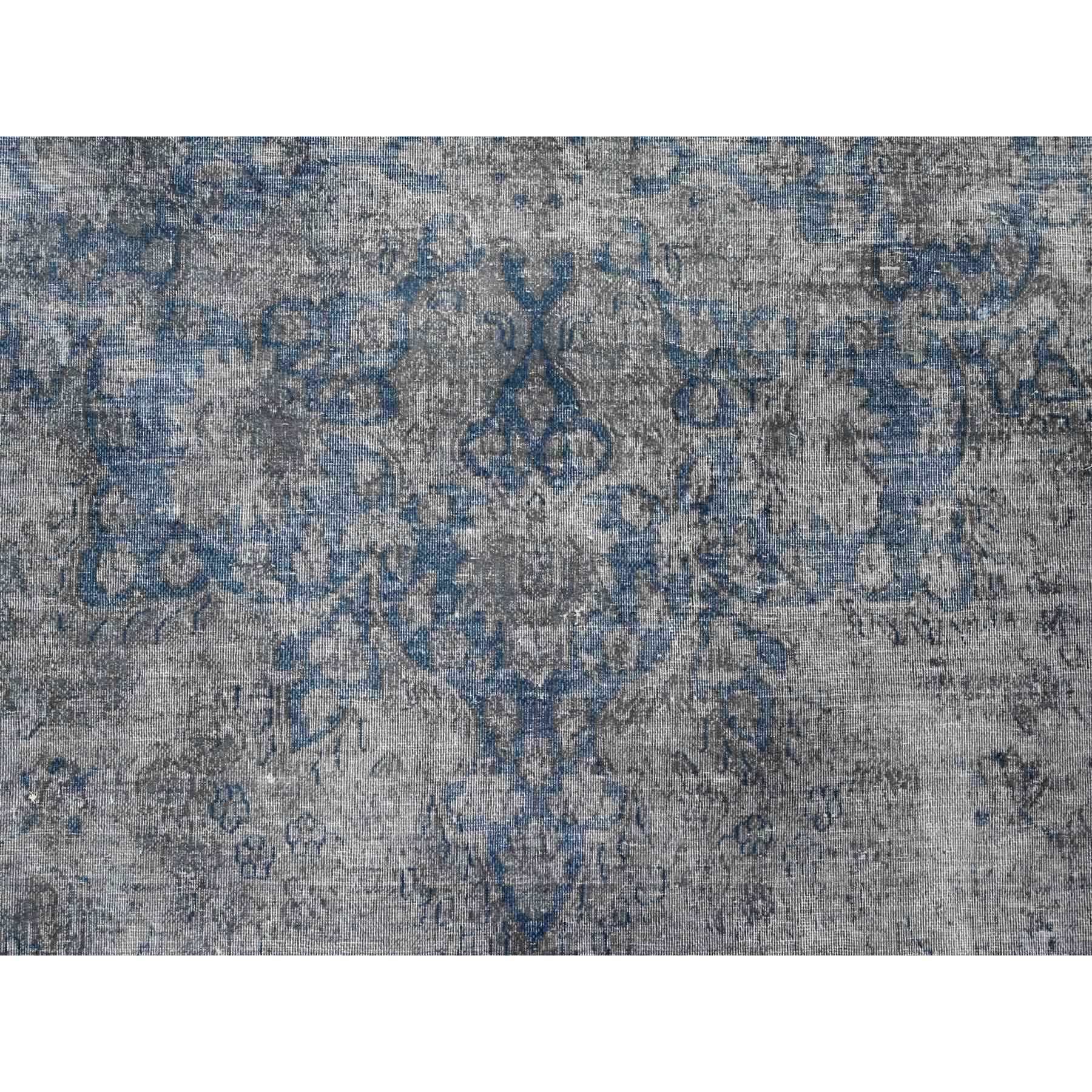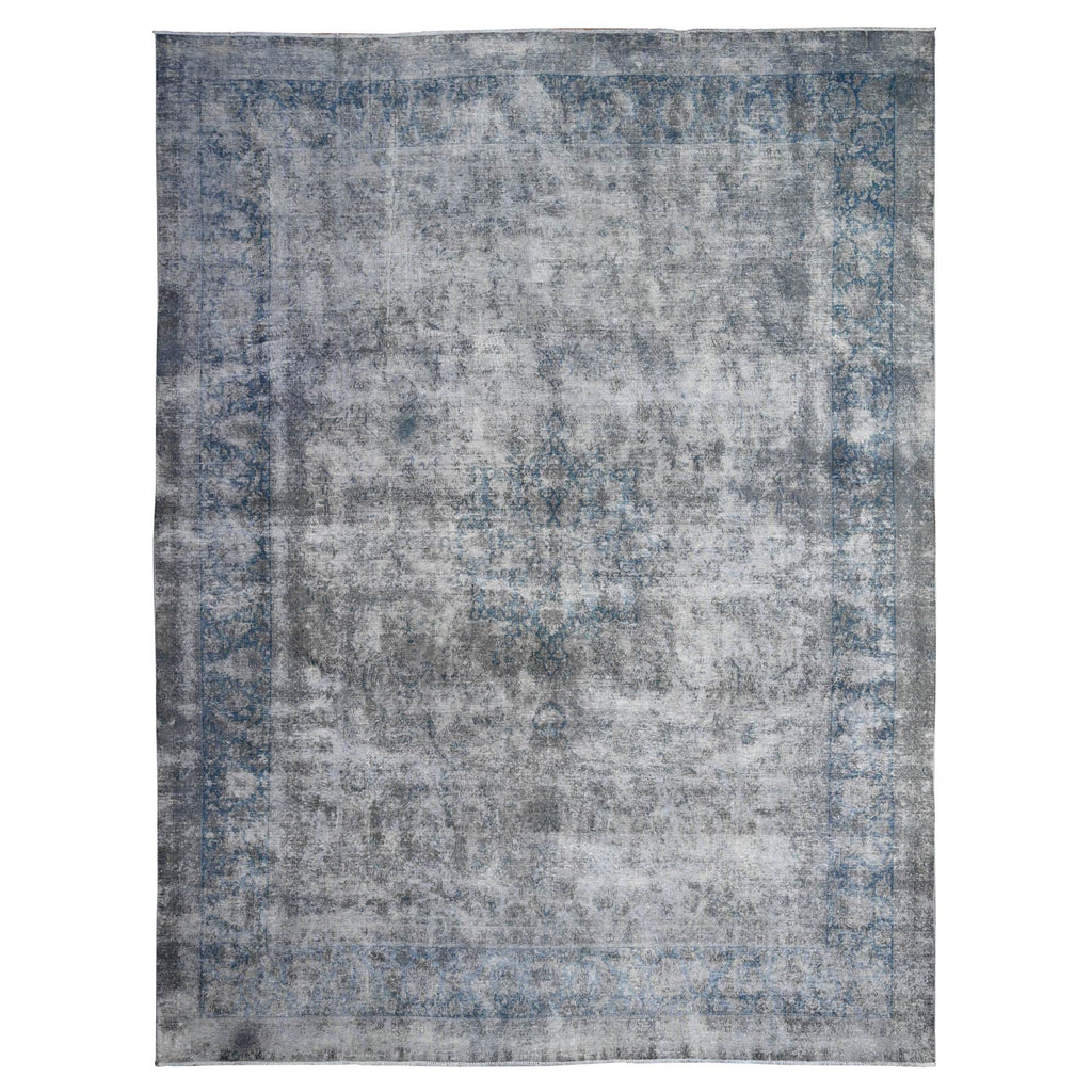 10'x13' Vintage Gray, Cropped Thin, Erased Medallions, Hand Knotted, All Wool Pile, Overdyed, Distressed And Worn Look, Vintage Persian Kerman, Clean And Soft, Oriental Rug FWR536880