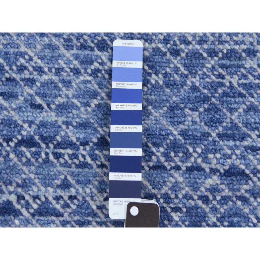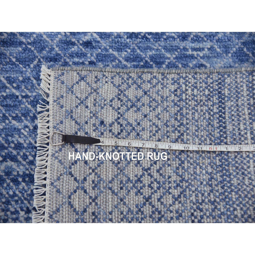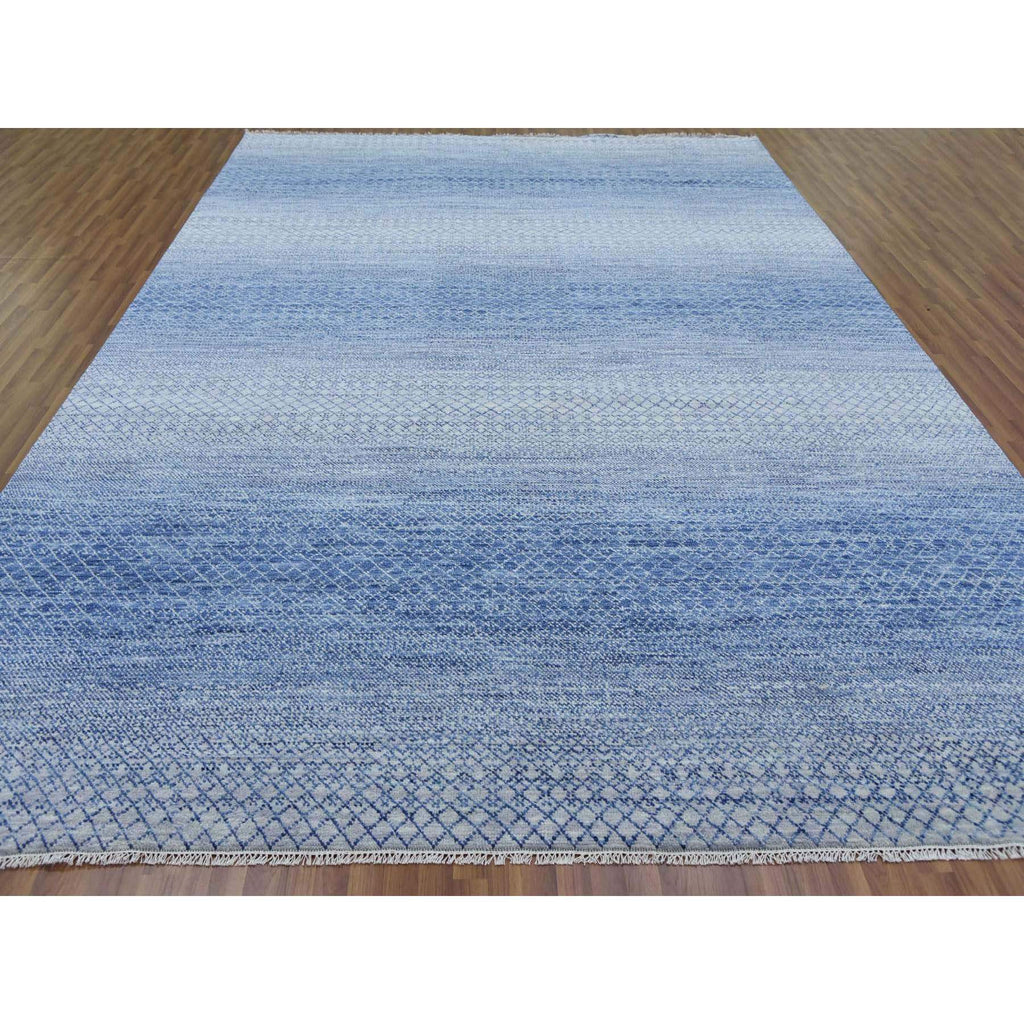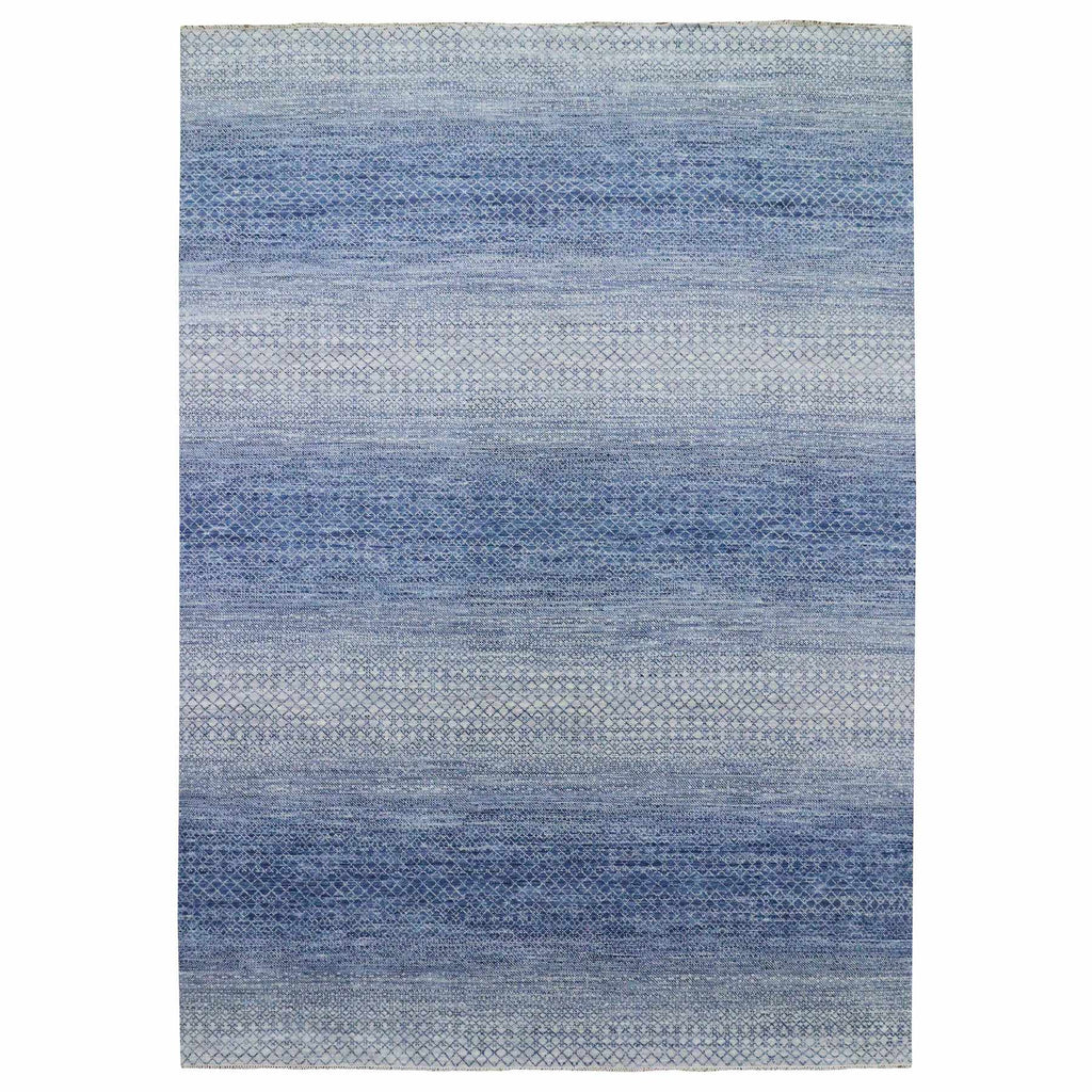 10'x14'1" Blue, Modern Chiaroscuro Collection, Thick And Plush Pure Wool Hand Knotted, Oriental Rug FWR475050