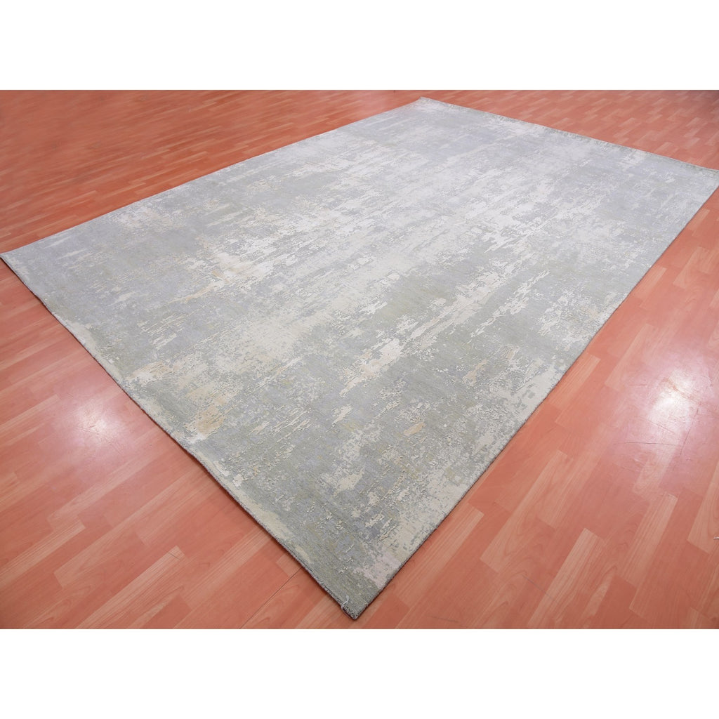 10'x14'1" Jubilee Gray, Modern Abstract Design, Vibrant Colors, Hand Knotted, Soft Pile Wool And Silk Oriental Rug FWR452004