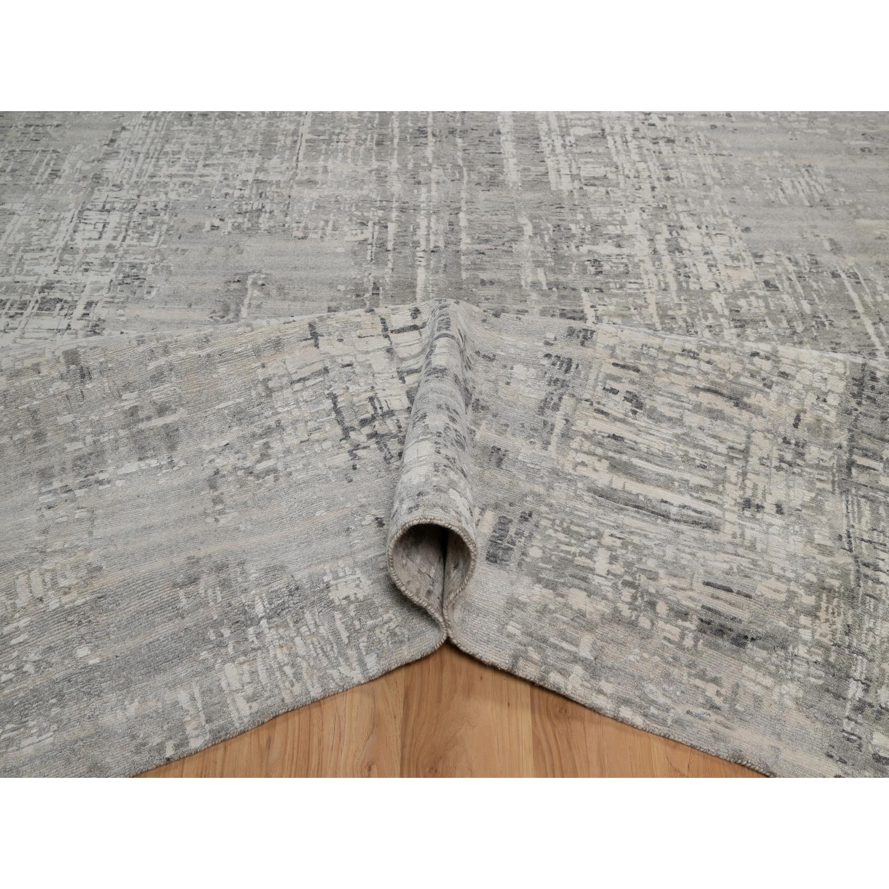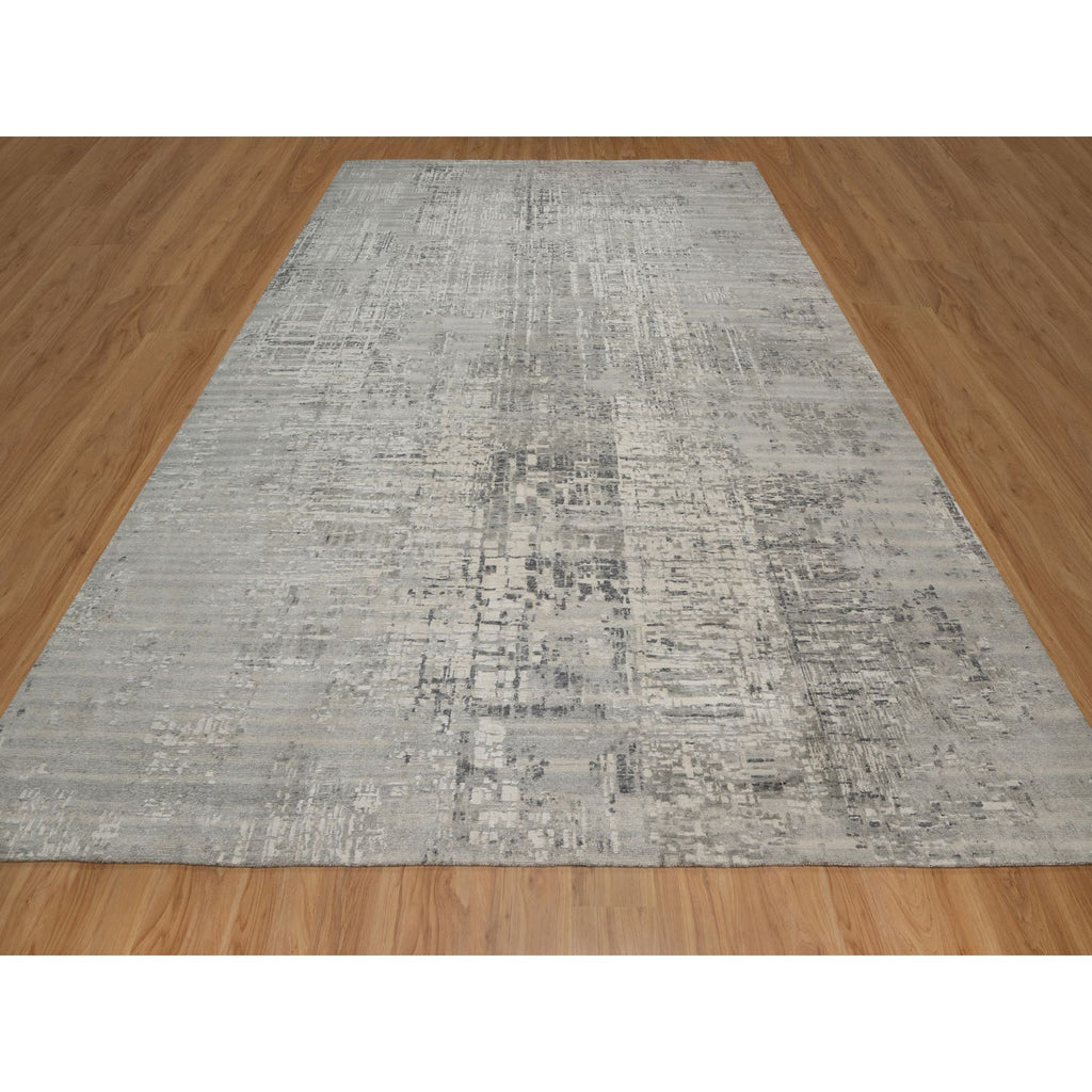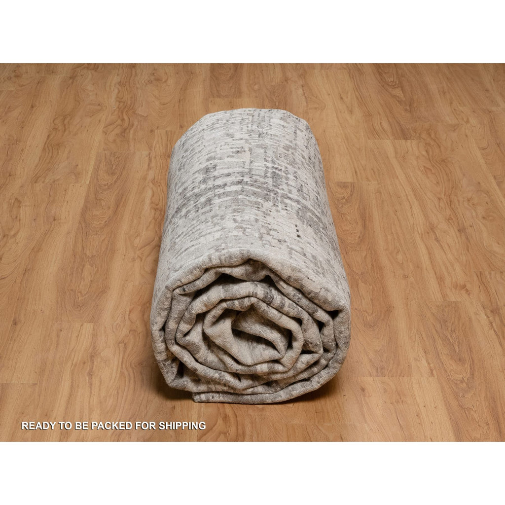 10'x14'1" Light Gray, Hand Knotted, Modern Erased Design, Hand Spun Undyed Natural Wool, Oriental Rug FWR551166