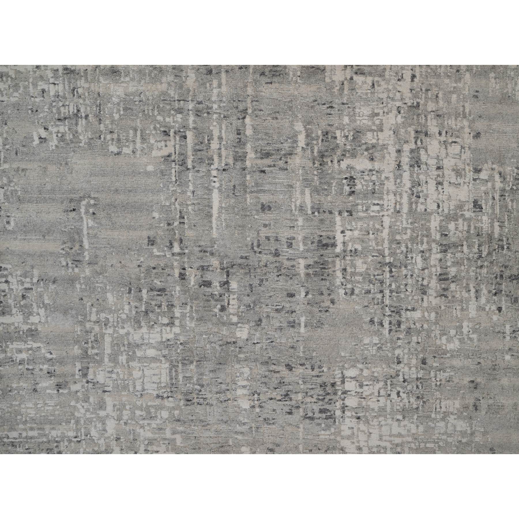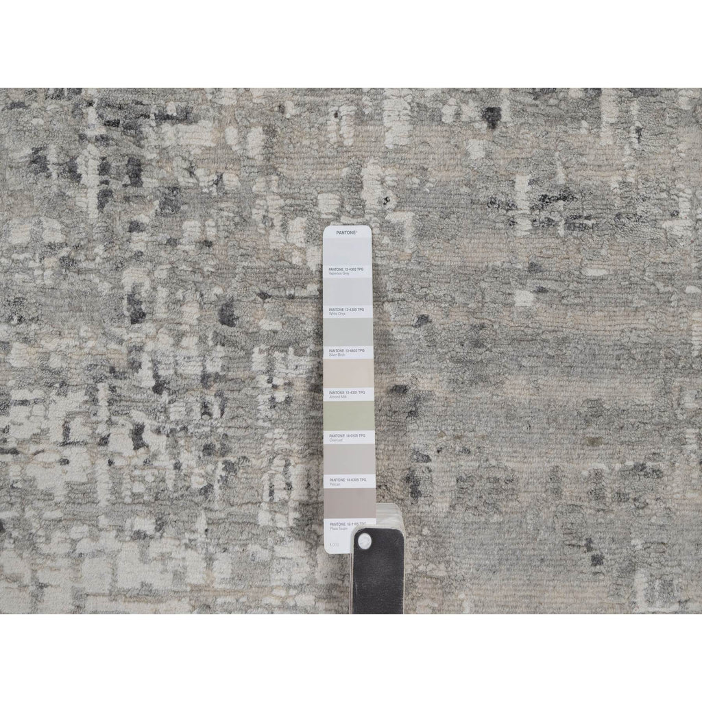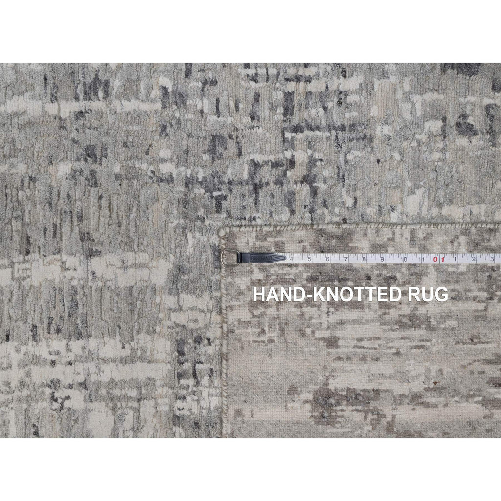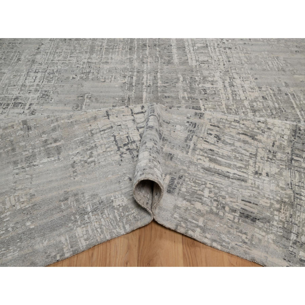 10'x14'1" Light Gray, Hand Knotted, Modern Erased Design, Hand Spun Undyed Natural Wool, Oriental Rug FWR551166