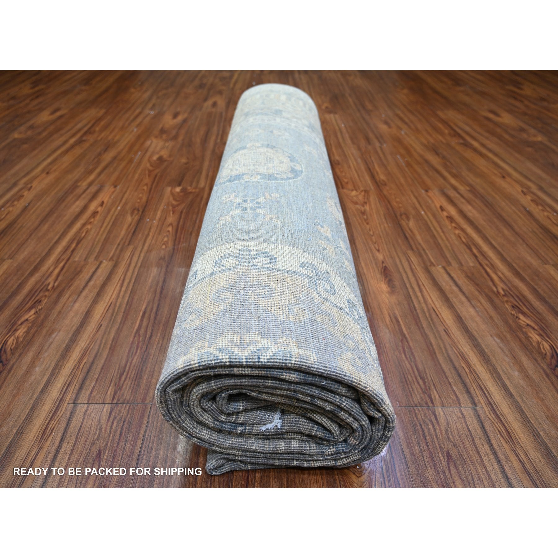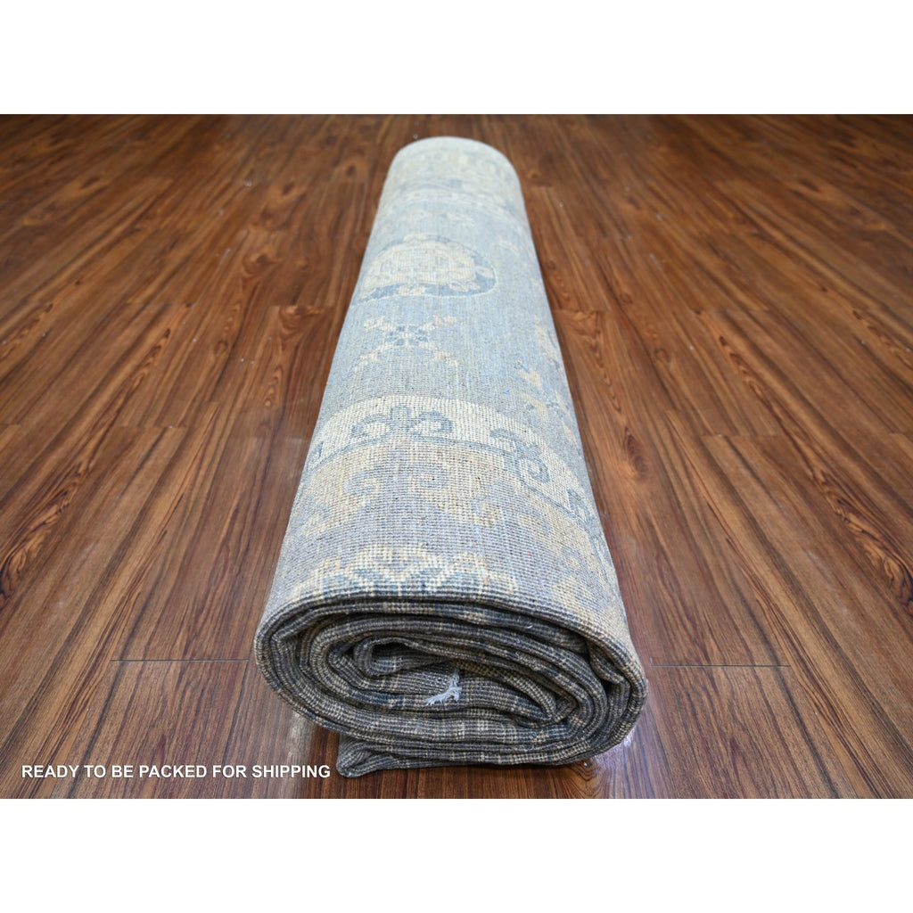10'x14'1" Platinum Gray, Soft Wool Hand Knotted, Stone Washed Peshawar With Khotan Design, Oriental Rug FWR440382