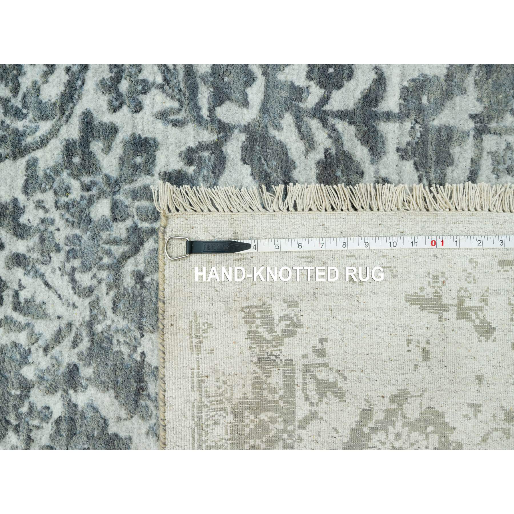 10'x14'1" Stonington Gray, Hand Knotted Persian Broken And Erased Design, Wool And Silk, Tone On Tone Oriental Rug FWR543162