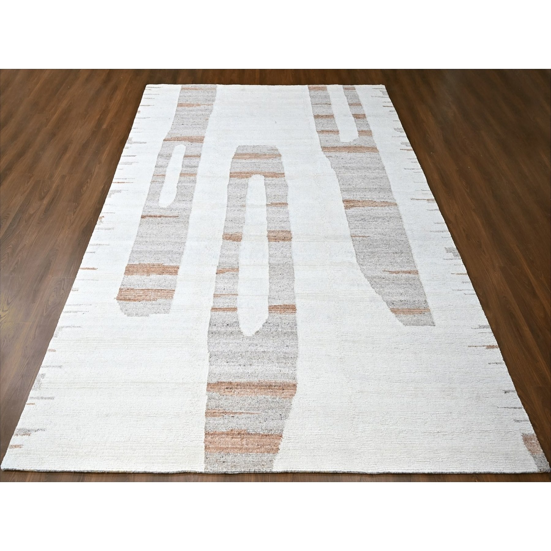10'x14'2" Oyster White, Hand Knotted, Minimalist Swedish Design, Natural Wool, Oriental Rug FWR62034