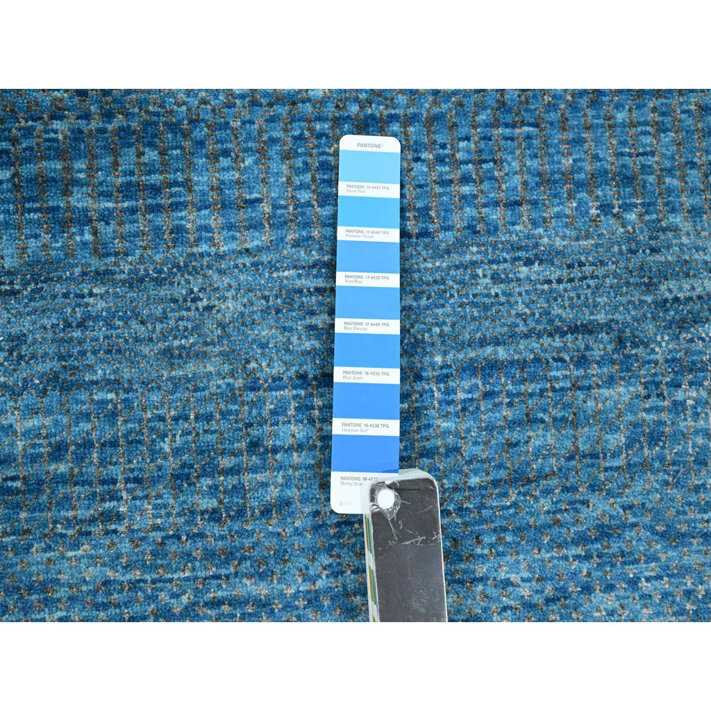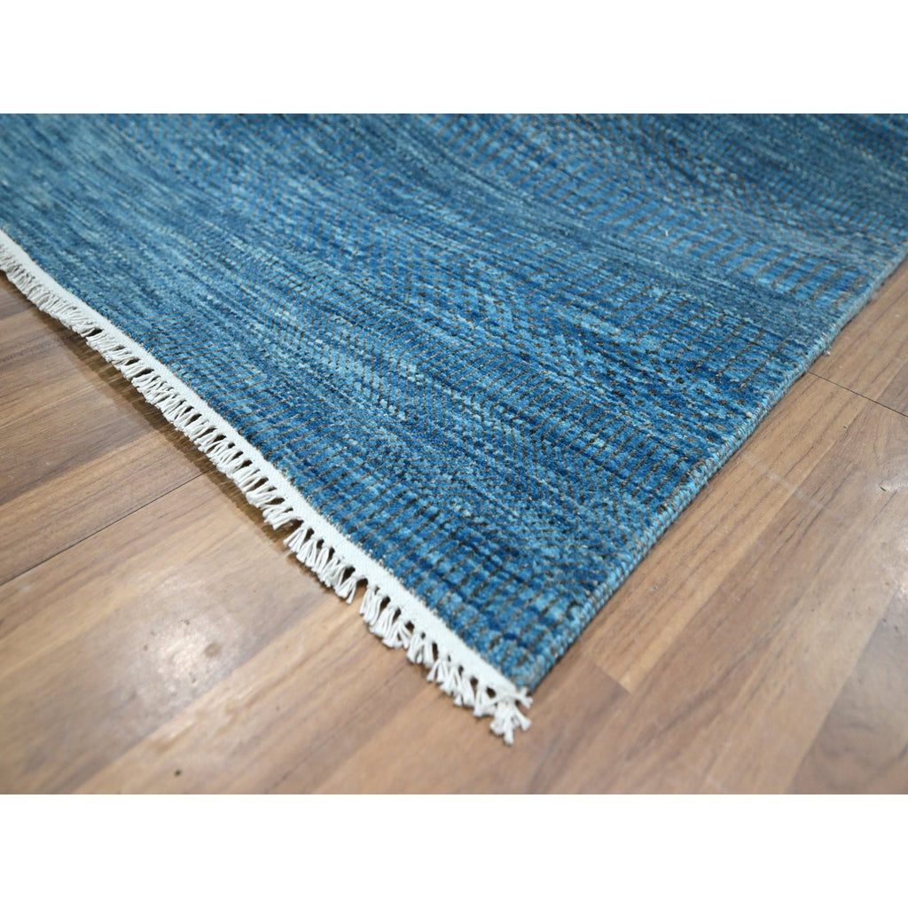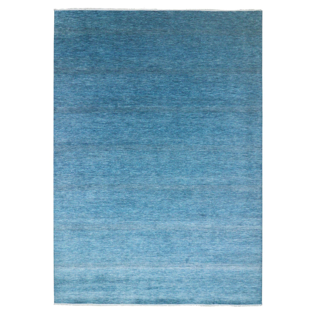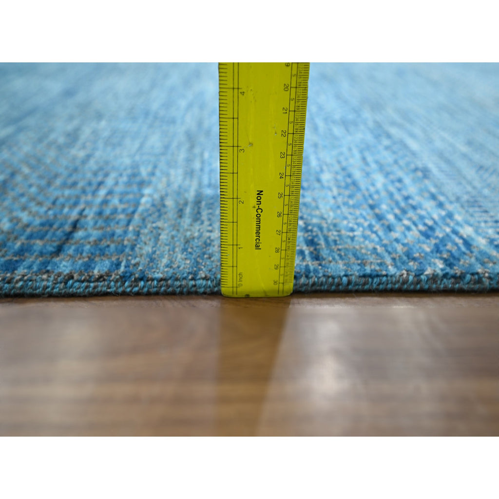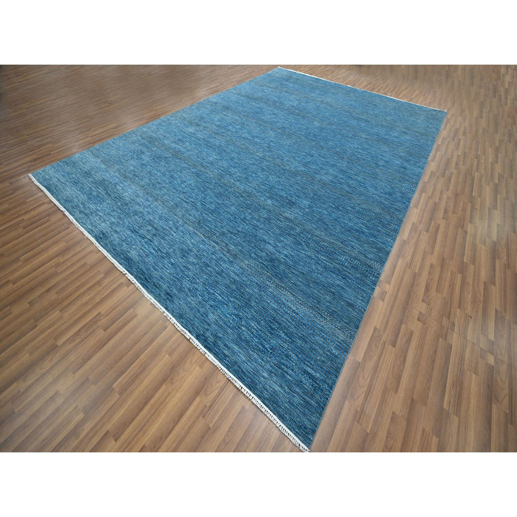 10'x14'2" Vivid Blue, Modern Grass Design, Hand Knotted, Borderless, Denser Weave, Tone On Tone, Wool And Silk, Lush And Plush, Oriental Rug FWR457950