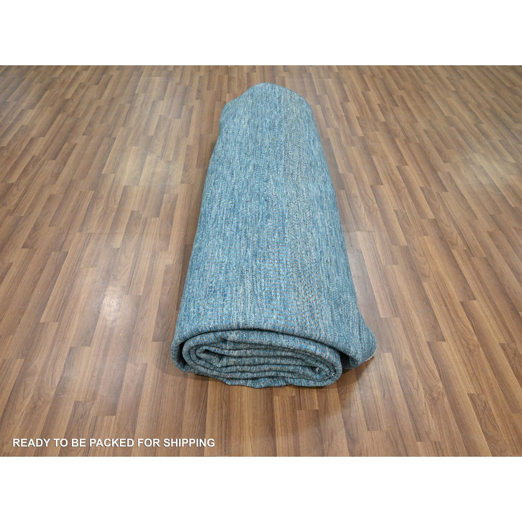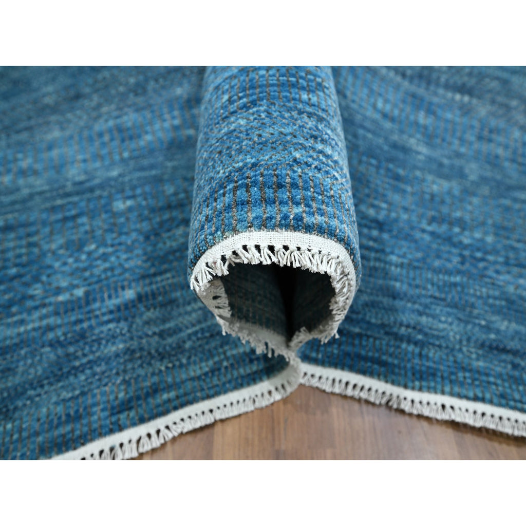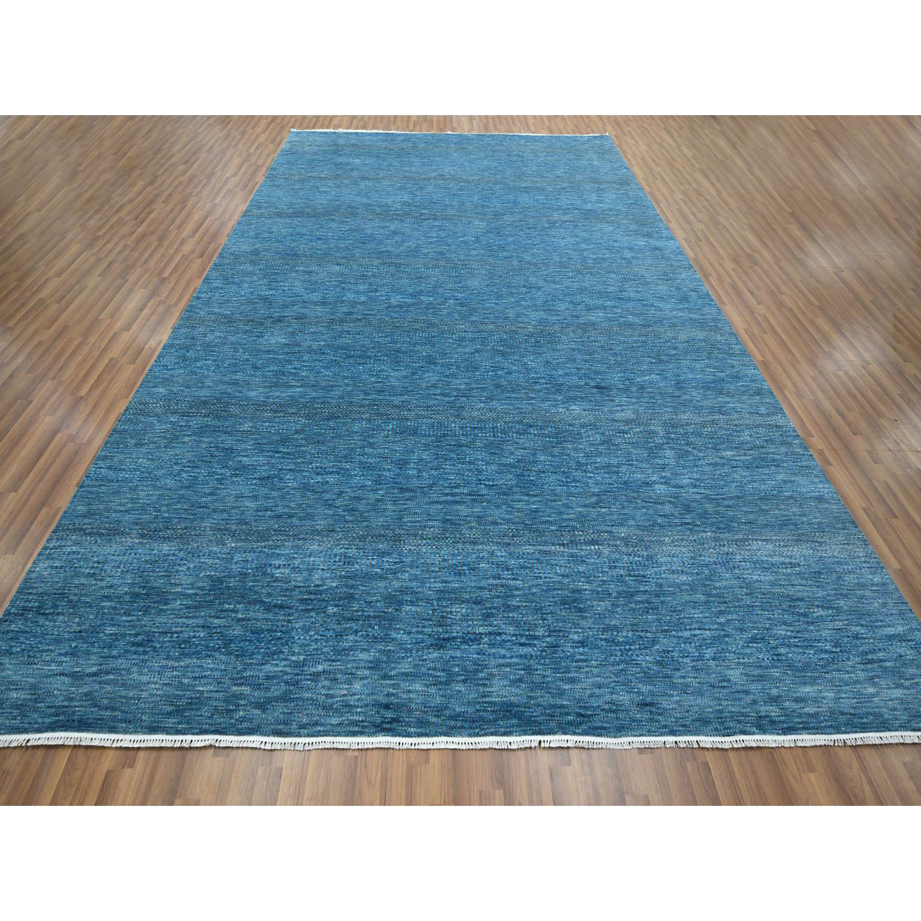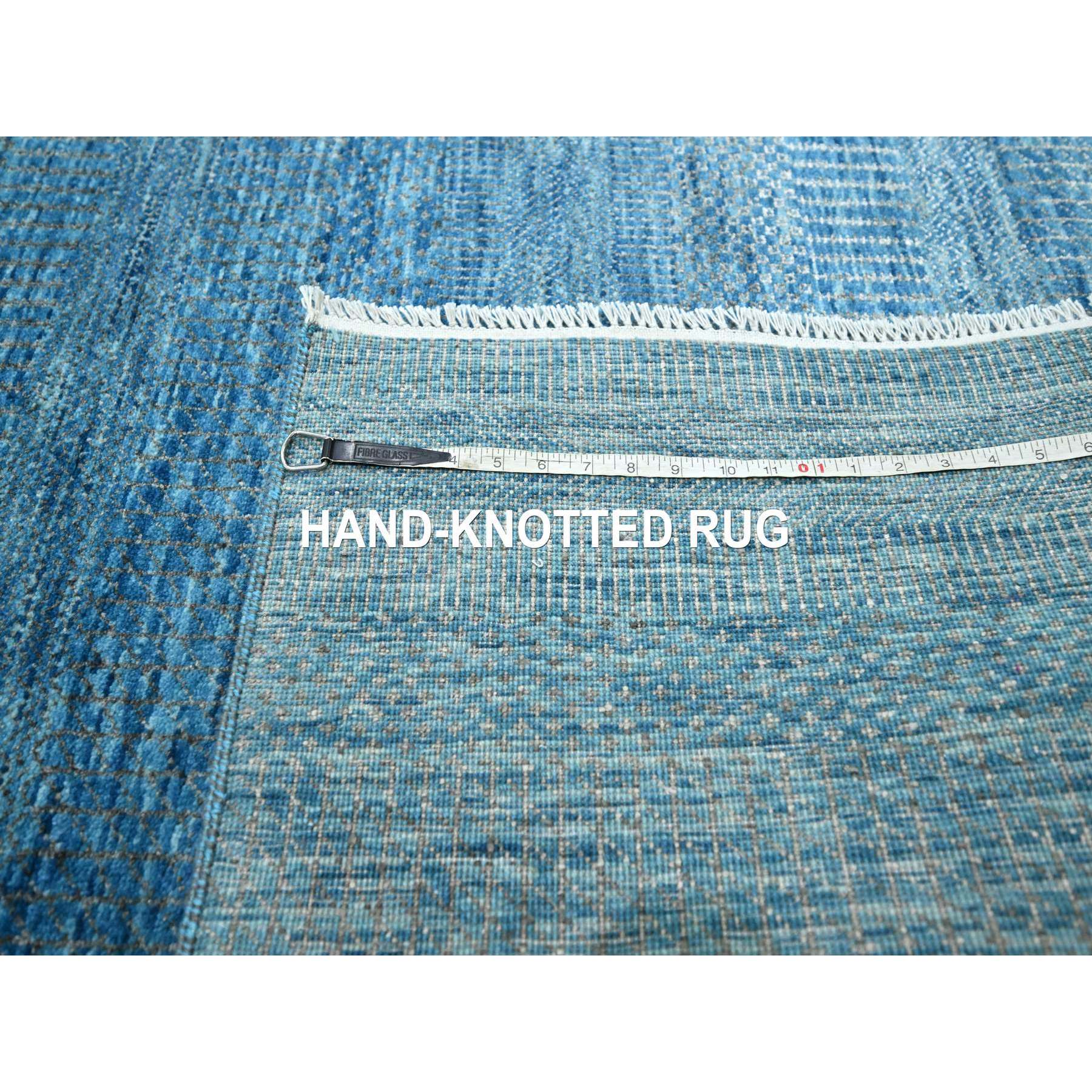 10'x14'2" Vivid Blue, Modern Grass Design, Hand Knotted, Borderless, Denser Weave, Tone On Tone, Wool And Silk, Lush And Plush, Oriental Rug FWR457950