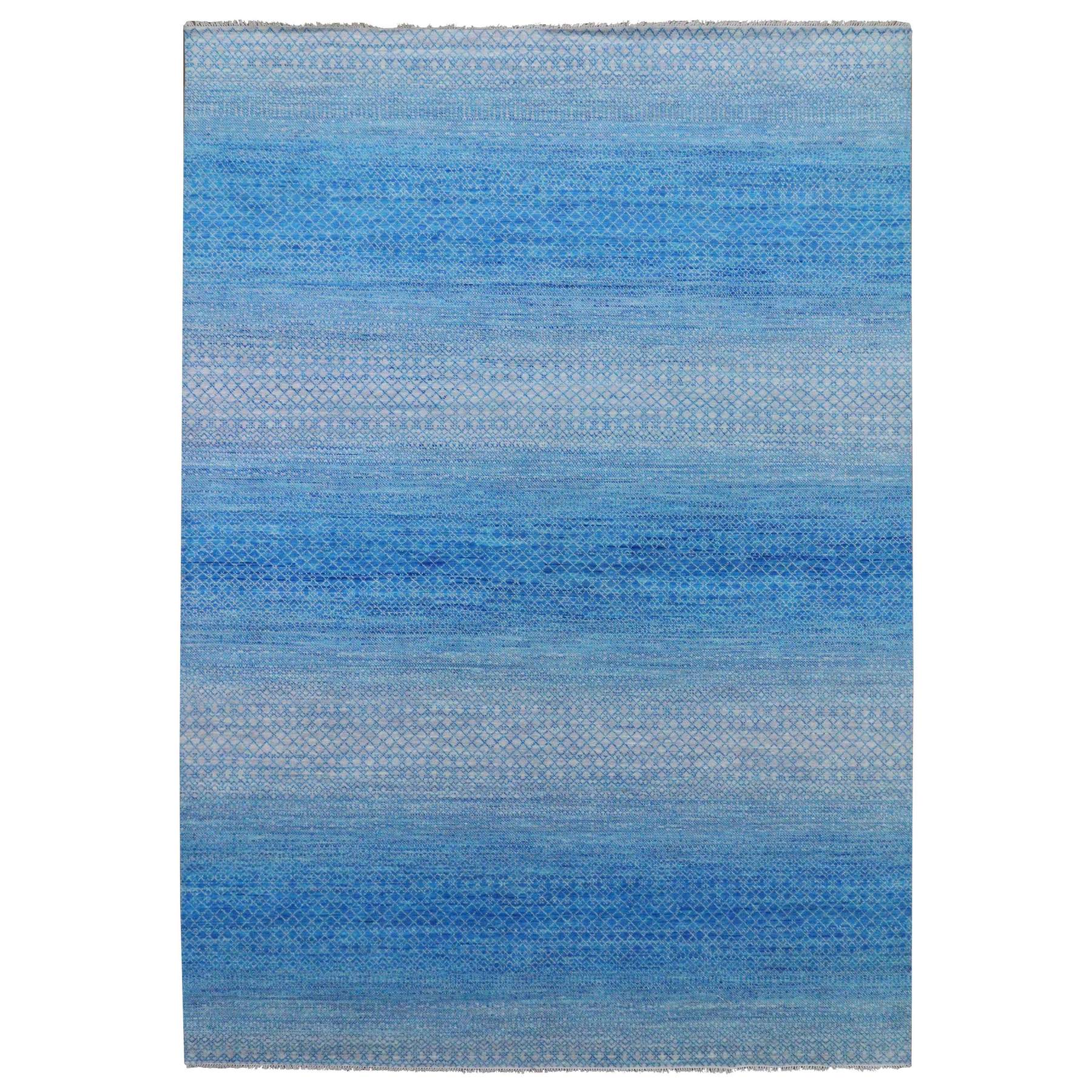 10'x14'3" Light Blue, Pure Wool Hand Knotted, Modern Chiaroscuro Collection Thick And Plush, Oriental Rug FWR475014