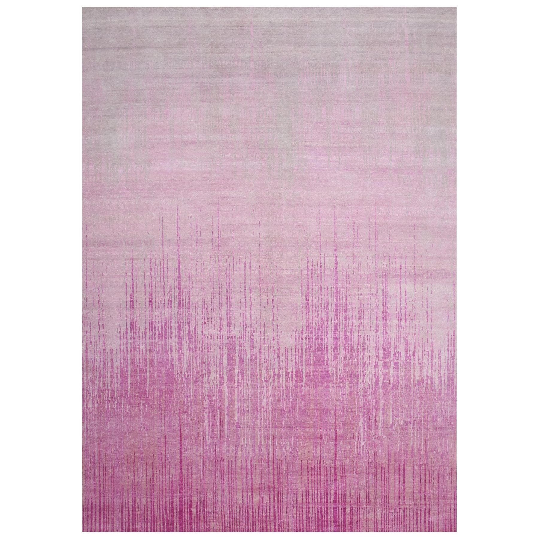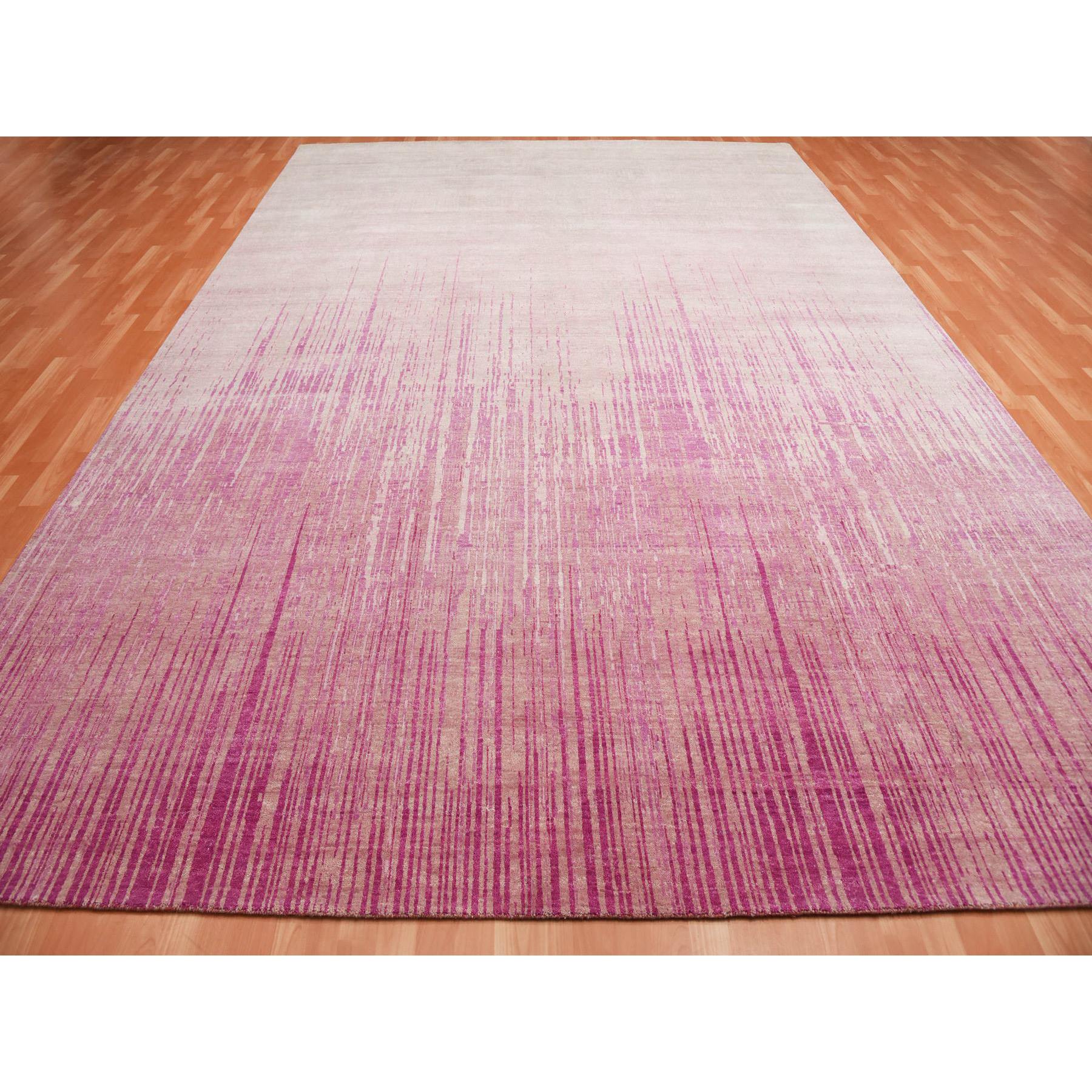 10'x14'3" Pink Natural Wool Hand Knotted Vertical Ombre Design Oriental Rug FWR450636