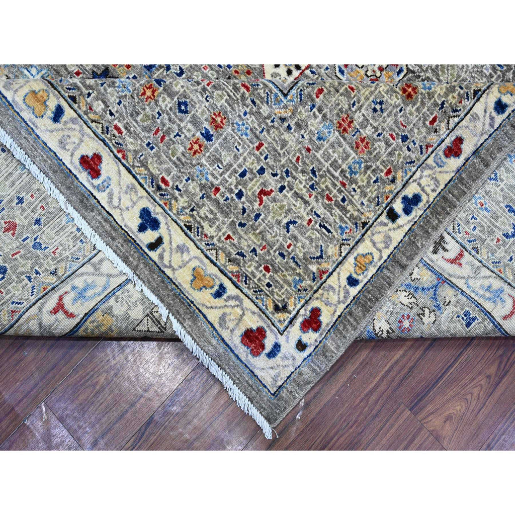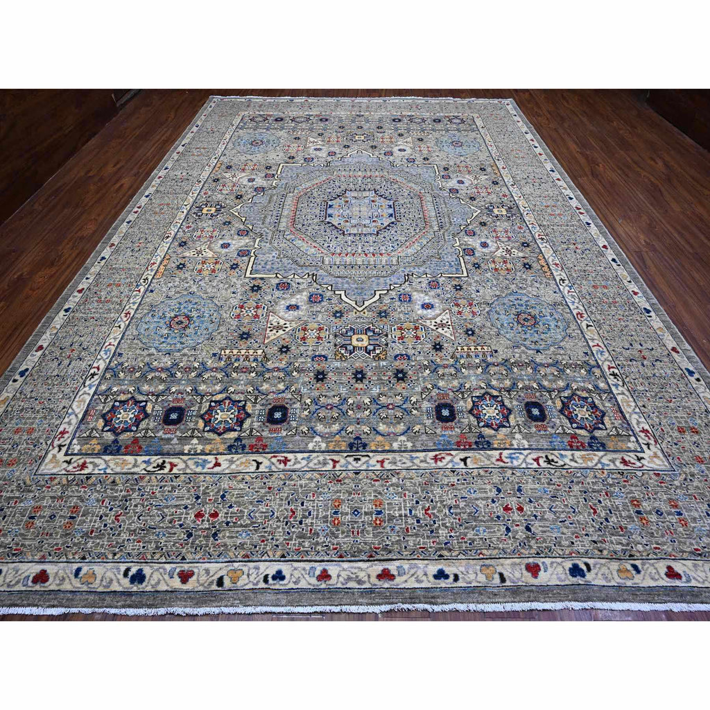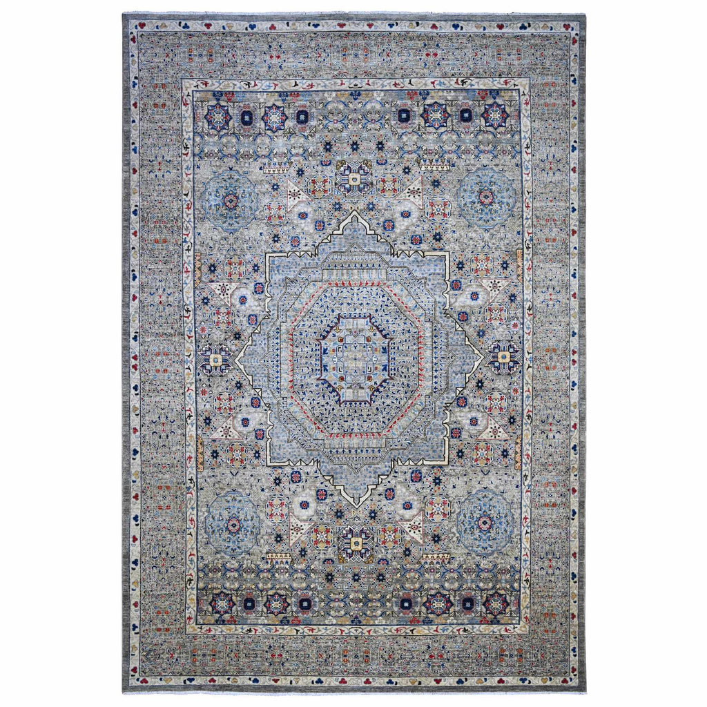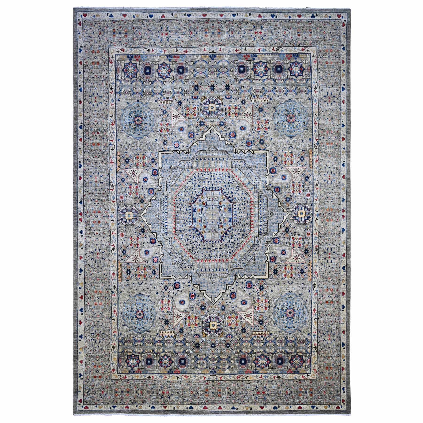 10'x14'3" Tin Foil Gray, Fine Aryana With Natural Dyes, 100% Wool, Hand Knotted, 14th Century Mamluk Dynasty Pattern, Oriental Rug FWR536898