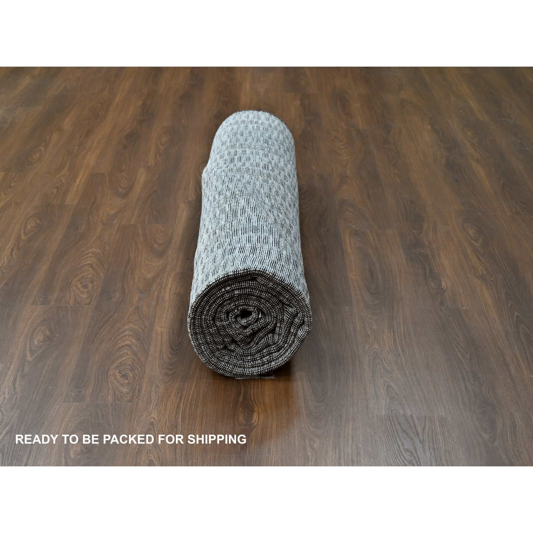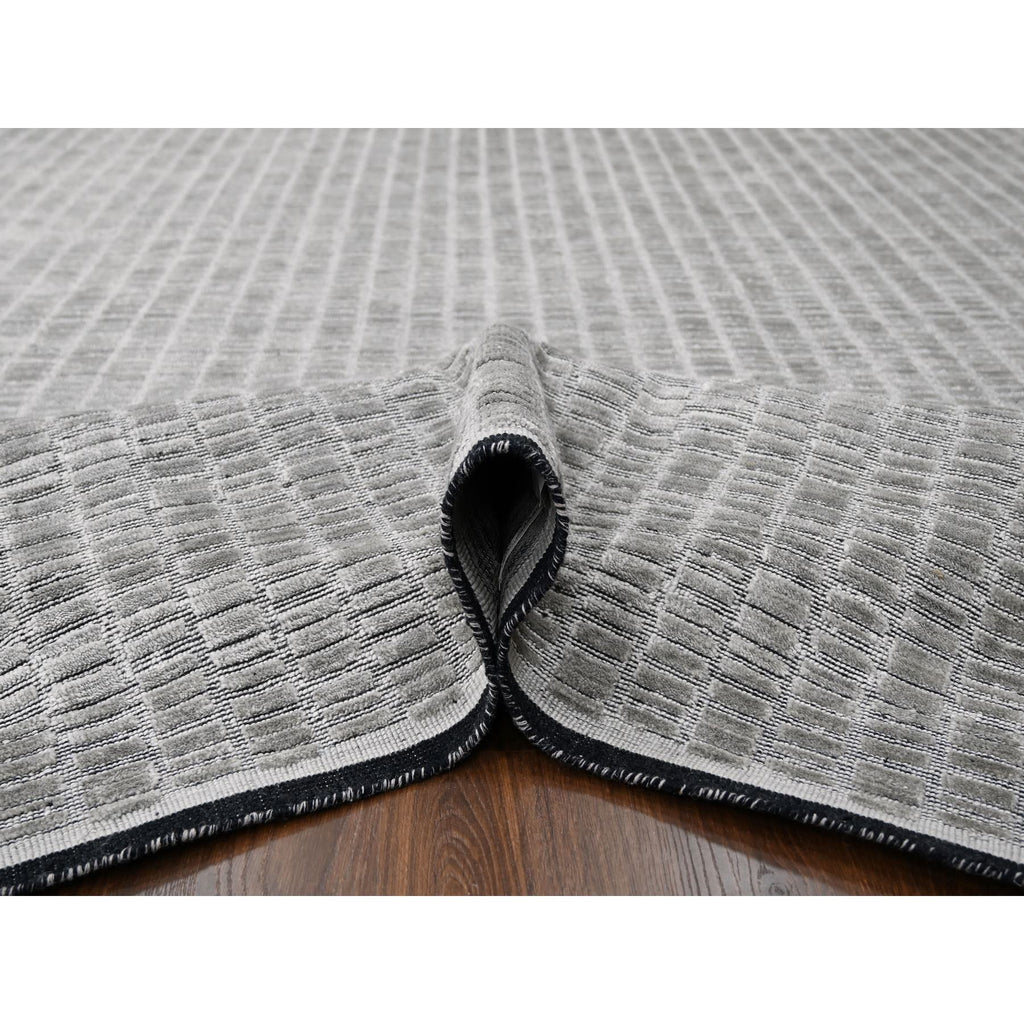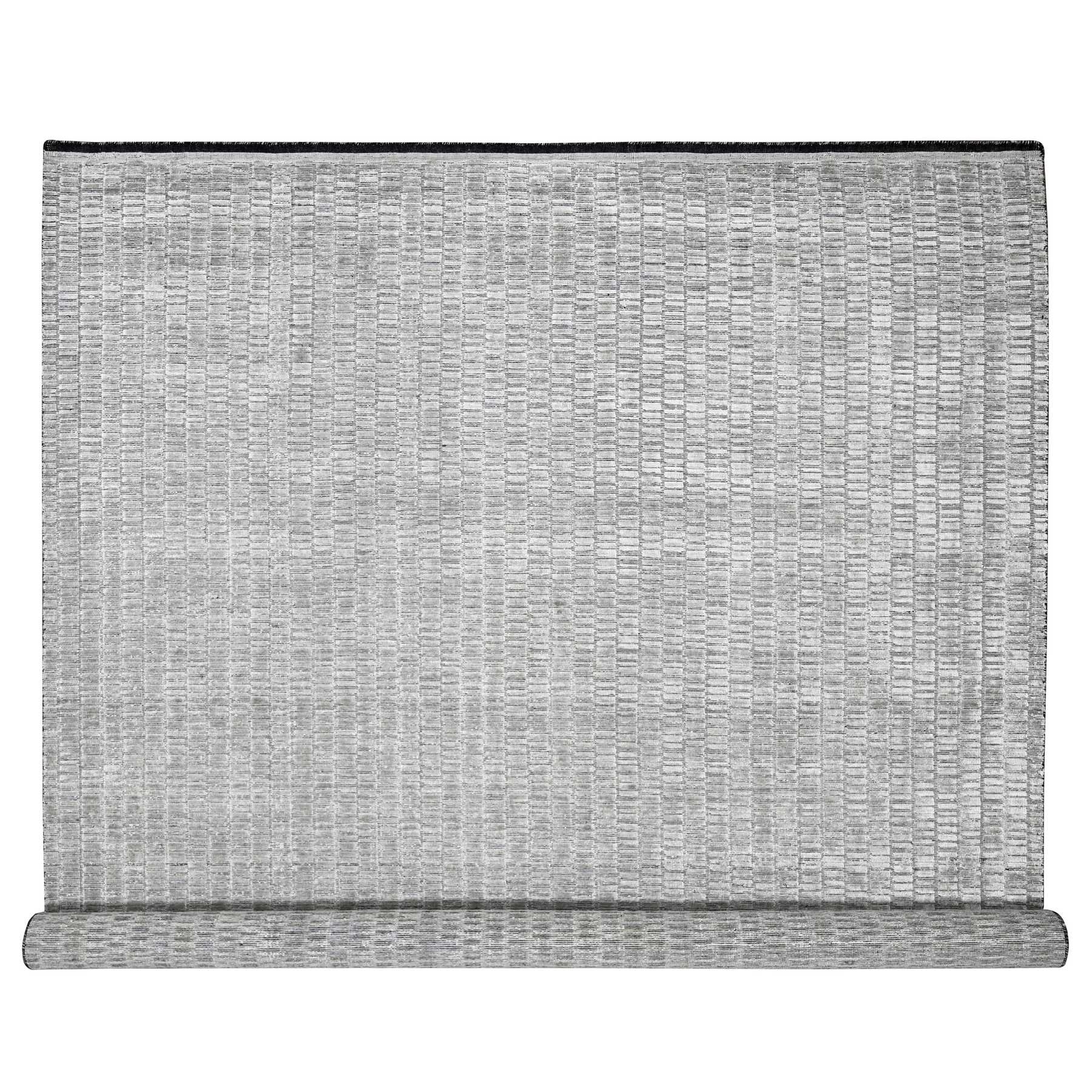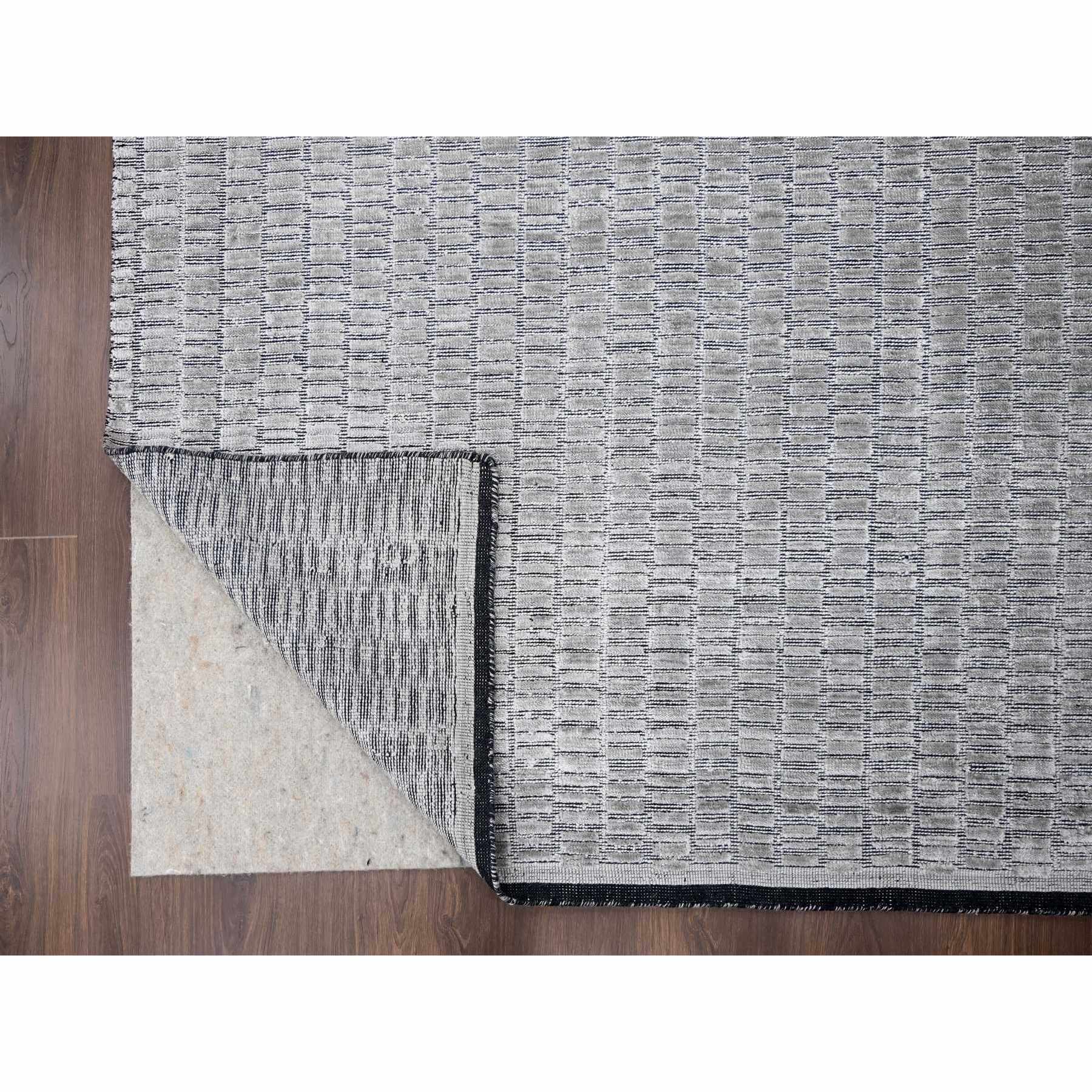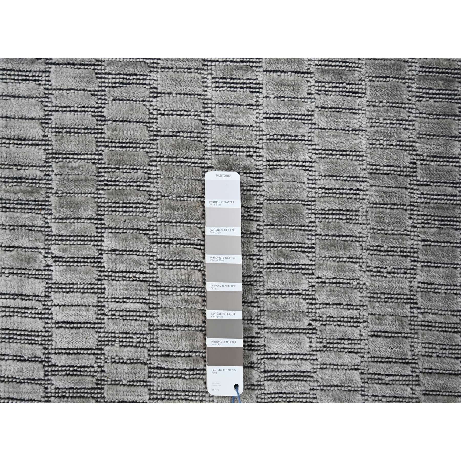 10'x14'4" Gray And Black, Hand Loomed, Modern Textured Roman Floor Design, Wool And Plant Based Silk, Oriental Rug FWR505632